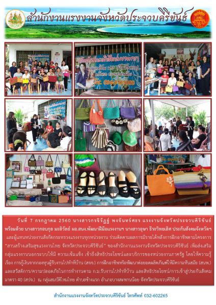 โครงการ “สานสร้างเสริมสุขแรงงานไทย จังหวัดประจวบคีรีขันธ์” ของสำนักงานแรงงานจังหวัดประจวบคีรีขันธ์ ณ กลุ่มสมบัติไหมไทย ตำบลช้างแรก อำเภอบางสะพานน้อย จังหวัดประจวบคีรีขันธ์