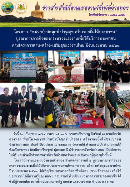 โครงการ “หน่วยบำบัดทุกข์ บำรุงสุข สร้างรอยยิ้มให้ประชาชน”บูรณาการภารกิจของกระทรวงแรงงานเพื่อให้บริการประชาชน ตามโครงการสาน–สร้าง–เสริมสุขแรงงานไทย ปีงบประมาณ 2560