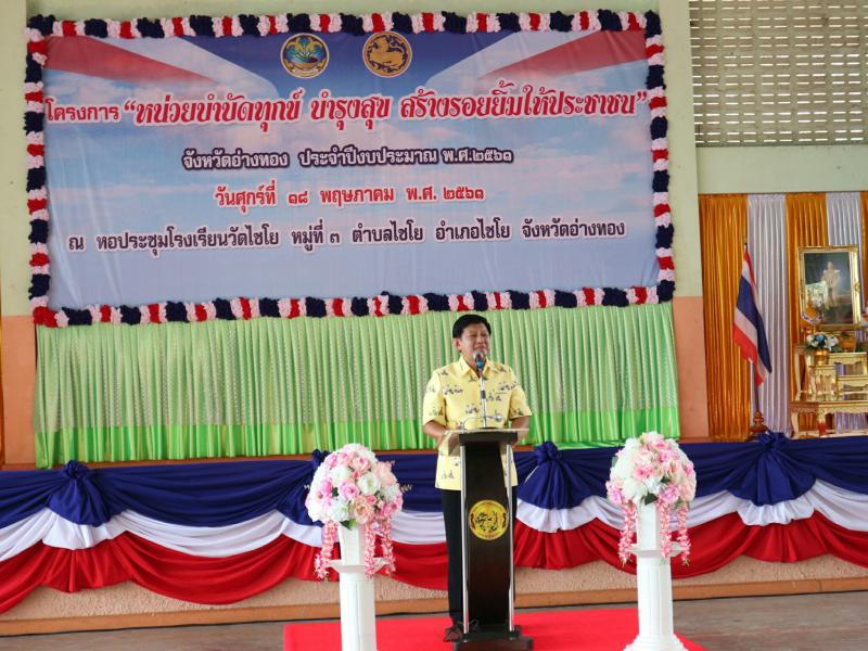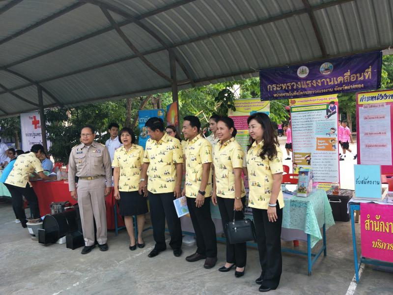 วันนี้ 18 พฤษภาคม 2561 เวลา 09.00 น. นางสาวธีรานาฏ ปิยวินท์ แรงงานจังหวัดอ่างทอง พร้อมด้วยหัวหน้าส่วนราชการจังหวัดอ่างทอง ร่วมโครงการ “หน่วยบำบัดทุกข์ บำรุงสุข สร้างรอยยิ้ม ให้ประชาชน” จังหวัดอ่างทอง ประจำปีงบประมาณ 2561 ณ วัดไชโย ตำบลไชโย อำเภอไชโย จังหวัดอ่างทอง โดยมีนายวีร์รวุทธ์ ปุตระเศรณี ผู้ว่าราชการจังหวัดอ่างทอง เป็นประธานในพิธี ทั้งนี้แรงงานจังหวัดได้ร่วมมอบแว่นตาแก่ผู้สูงอายุในพื้นที่ สำนักงานแรงงานจังหวัดอ่างทอง ได้ร่วมบูรณาการภารกิจของกระทรวงแรงงาน เพื่อให้บริการประชาชน ในโครงการกระทรวงแรงงานเคลื่อนที่ โดยมีการส่งเสริม อาชีพอิสระแก่แรงงานนอกระบบจังหวัดอ่างทอง ประจำปีงบประมาณ 256๑ ซึ่งได้เชิญวิทยากร มาสาธิตอาชีพอิสระการทำขนมกล้วย ขนมฟักทอง เพื่อให้ประชาชนได้รับทักษะความรู้ สามารถนำไปเป็นแนวทางในการประกอบอาชีพได้ ซึ่งมีผู้เข้าร่วมโครงการทั้งหน่วยงานภาครัฐเอกชน และประชาชน จำนวน 200 คน