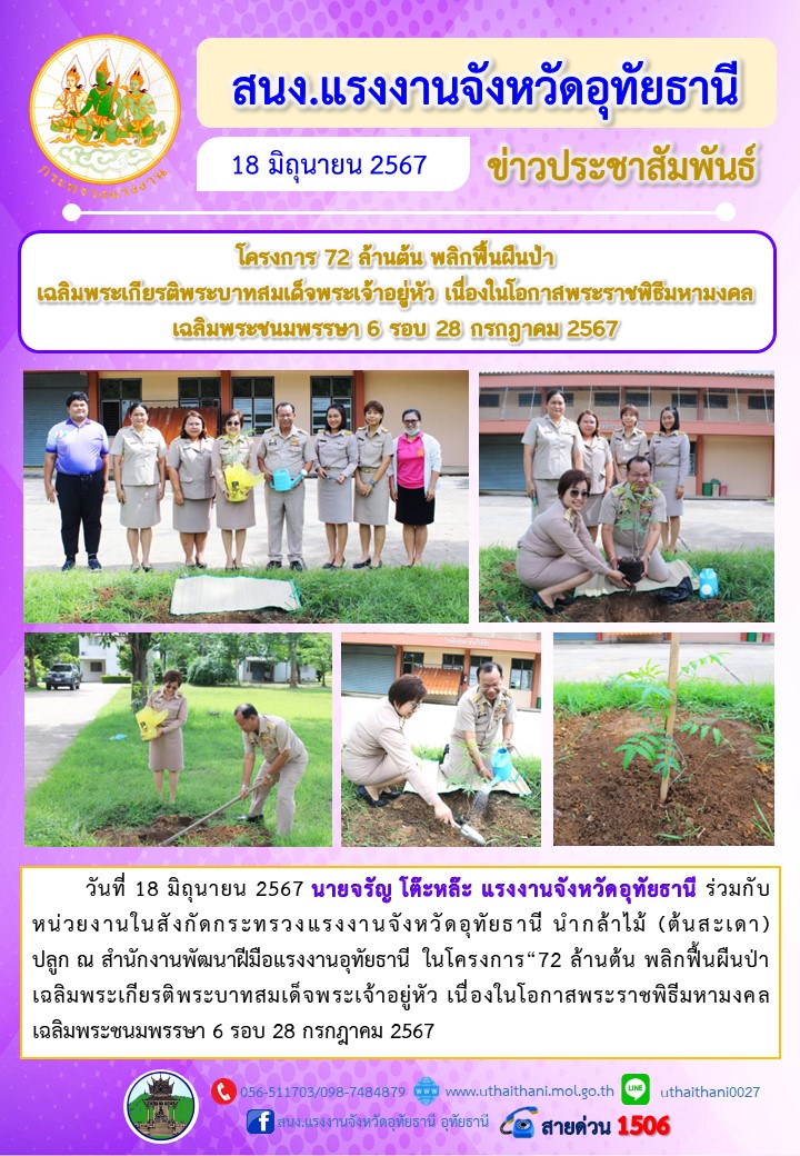 สรจ.อุทัยธานี โครงการ 72 ล้านต้น พลิกฟื้นผืนป่า เฉลิมพระเกียรติพระบาทสมเด็จพระเจ้าอยู่หัว เนื่องในโอกาสพระราชพิธีมหามงคล เฉลิมพระชนมพรรษา 6 รอบ 28 กรกฎาคม 2567