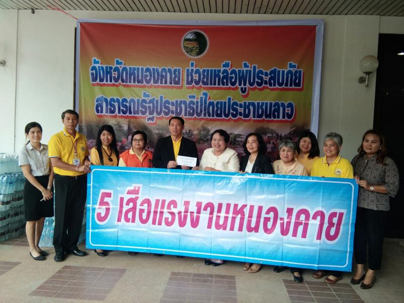 วันที่ 31 กรกฎาคม 2561 เวลา 11.00 น. นายจิรศักดิ์ ศรีคชา รองว่าราชการจังหวัดหนองคาย เป็นผู้แทนรับมอบเงินบริจาค จำนวน 6,500 บาท จาก 5 เสือแรงงานจังหวัดหนองคาย นำโดย นางวรรณกานต์ ขาวลาภ แรงงานจังหวัดหนองคาย นางสาวรังสิมา ปรีชาชาติ ประกันสังคมจังหวัดหนองคาย นางสาวประภัสสร ประจันตะเสน ผอ. สำนักงานพัฒนาฝีมือแรงงานหนองคาย ผู้แทนจัดหางานจังหวัดหนองคาย และผู้แทนสวัสดิการและคุ้มครองแรงงานจังหวัดหนองคาย เพื่อรวบรวมและนำไปช่วยเหลือผู้ประสบภัยจากเหตุการณ์เขื่อนเซเปียน-เซน้ำน้อยแตก ในเมืองสะหนามไซ แขวงอัตตะปือ สาธารณรัฐประชาธิปไตยประชาชนลาว