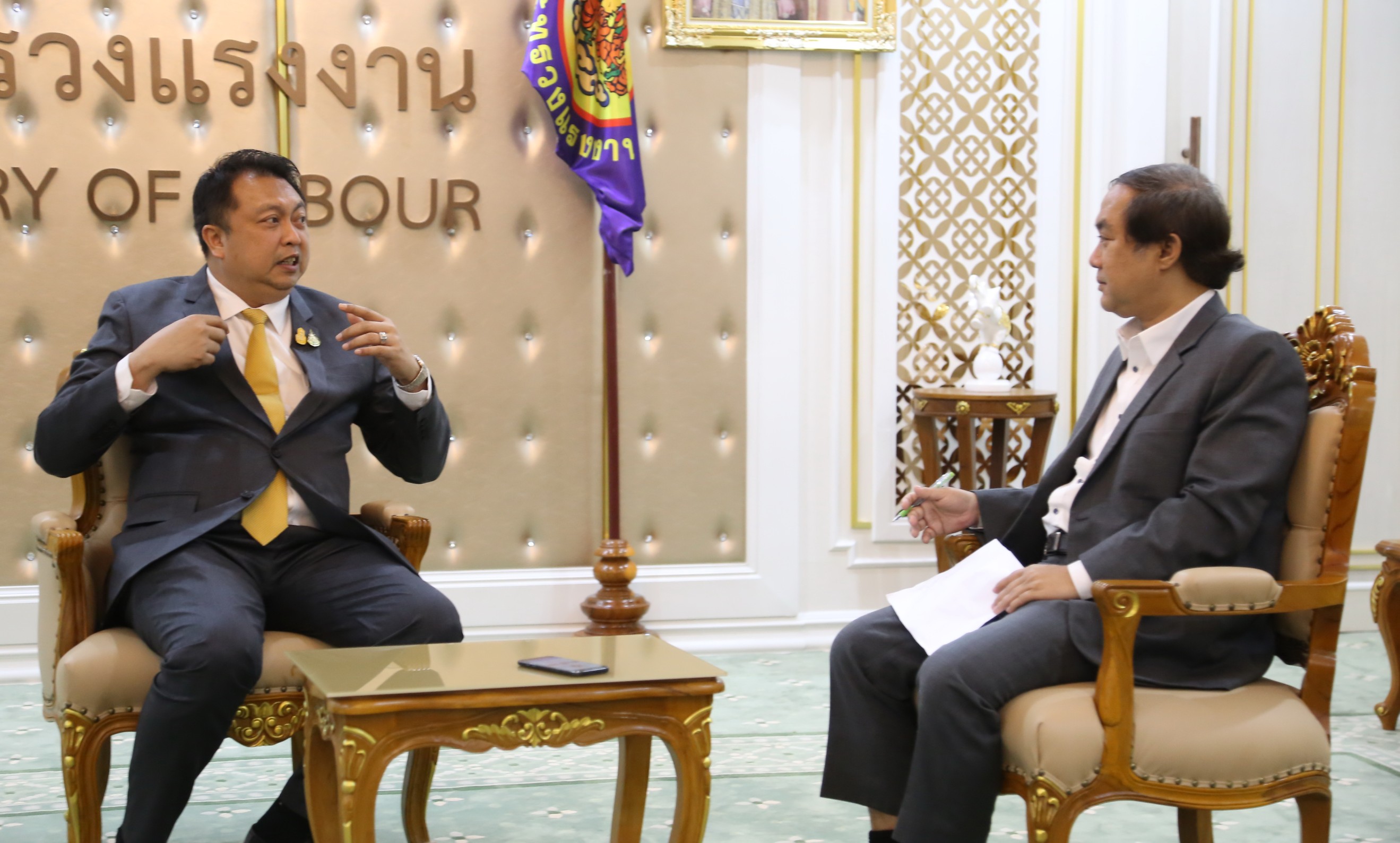 วันที่ 2 ตุลาคม 2563 เวลา 15.30 น. นายสุชาติ ชมกลิ่น รัฐมนตรีว่าการกระทรวงแรงงาน ให้สัมภาษณ์ผู้สื่อข่าวหนังสือพิมพ์แนวหน้าเกี่ยวกับการจัดงาน JOB EXPO THAILAND 2020 ณ ห้องจัตุมงคล ชั้น 6 กระทรวงแรงงาน
