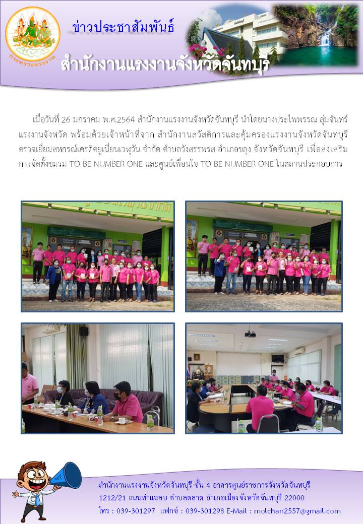สำนักงานแรงงานจังหวัดจันทบุรี นำโดยนางประไพพรรณ ลุ่มจันทร์ แรงงานจังหวัด พร้อมด้วยเจ้าหน้าที่จาก สำนักงานสวัสดิการและคุ้มครองแรงงานจังหวัดจันทบุรี ตรวจเยี่ยมสหกรณ์เครดิตยูเนี่ยนเวฬุวัน จำกัด