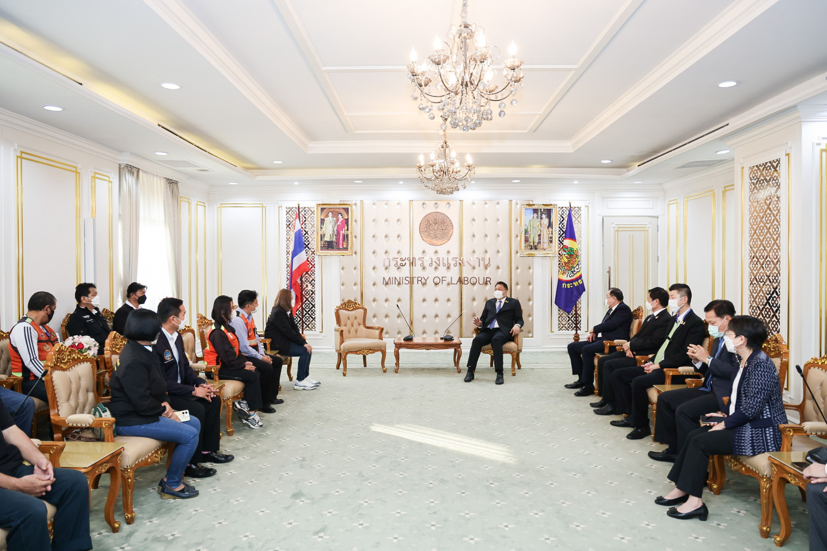 วันที่ 18 มกราคม 2566 เวลา 16.00 น. นายสุชาติ ชมกลิ่น รัฐมนตรีว่าการกระทรวงแรงงานให้การต้อนรับ คุณญาดา พรเพชรรัมภา นายกชมรมหาบเร่แผงลอยกรุงเทพมหานคร พร้อมด้วยคณะ ชมรมหาบเร่แผงลอยกรุงเทพมหานคร สมาคมแท็กซี่ยานยนต์ไฟฟ้า และสมาคมผู้ขับขี่รถจักรยานยนต์ไฟฟ้า EV รับจ้างสาธารณะ เข้าพบรัฐมนตรีว่าการกระทรวงแรงงาน เพื่อขอบคุณรัฐบาลและกระทรวงแรงงานที่ให้การช่วยเหลือเยียวยาแรงงานนอกระบบจากผลกระทบโควิด-19 ที่ผ่านมา อาทิ ช่วยผลักดัน พ.ร.บ.คุ้มครองแรงงานนอกระบบการสมัครมาตรา 40 รวมทั้งการแบ่งปันถุงยังชีพ ข้าวกล่องในช่วงโควิด เพื่อบรรเทาความเดือดร้อนและแบ่งเบาภาระค่าครองชีพ จนสามารถก้าวข้ามวิกฤตนั้นมาได้ โดยมี ผู้บริหารระดับสูงกระทรวงแรงงานเข้าร่วมด้วย ณ ห้องจัตุมงคล ชั้น 6 อาคารกระทรวงแรงงาน