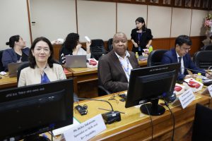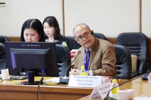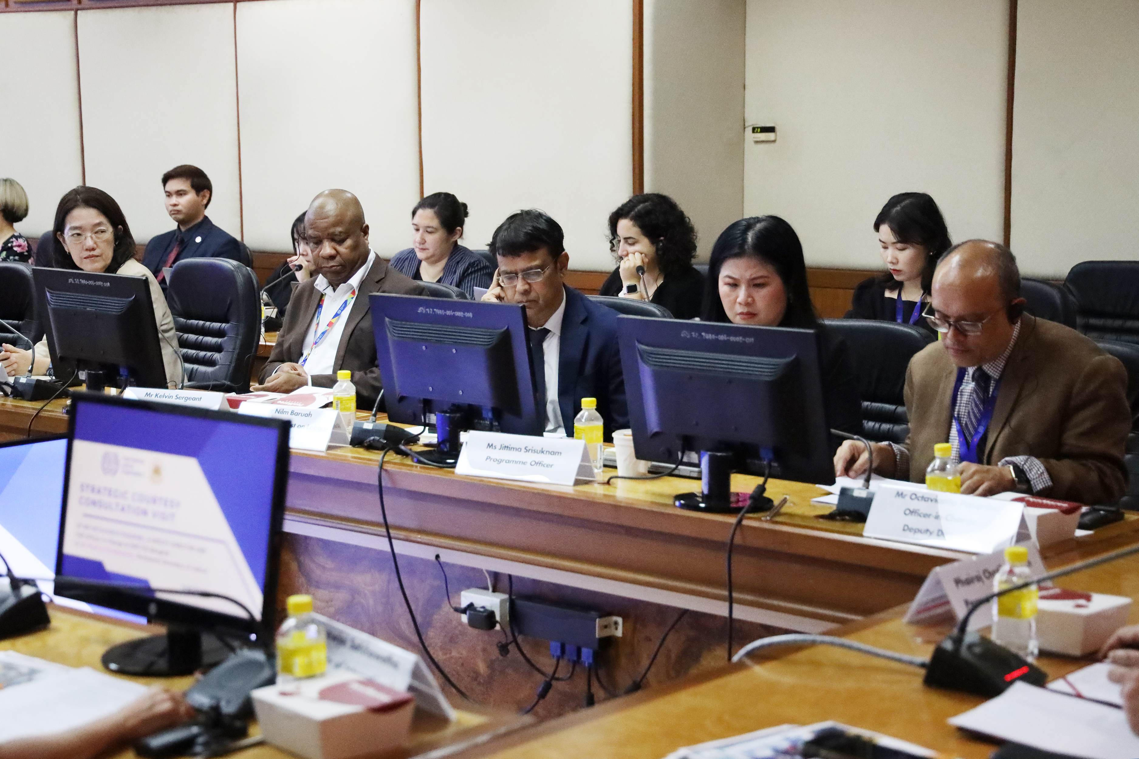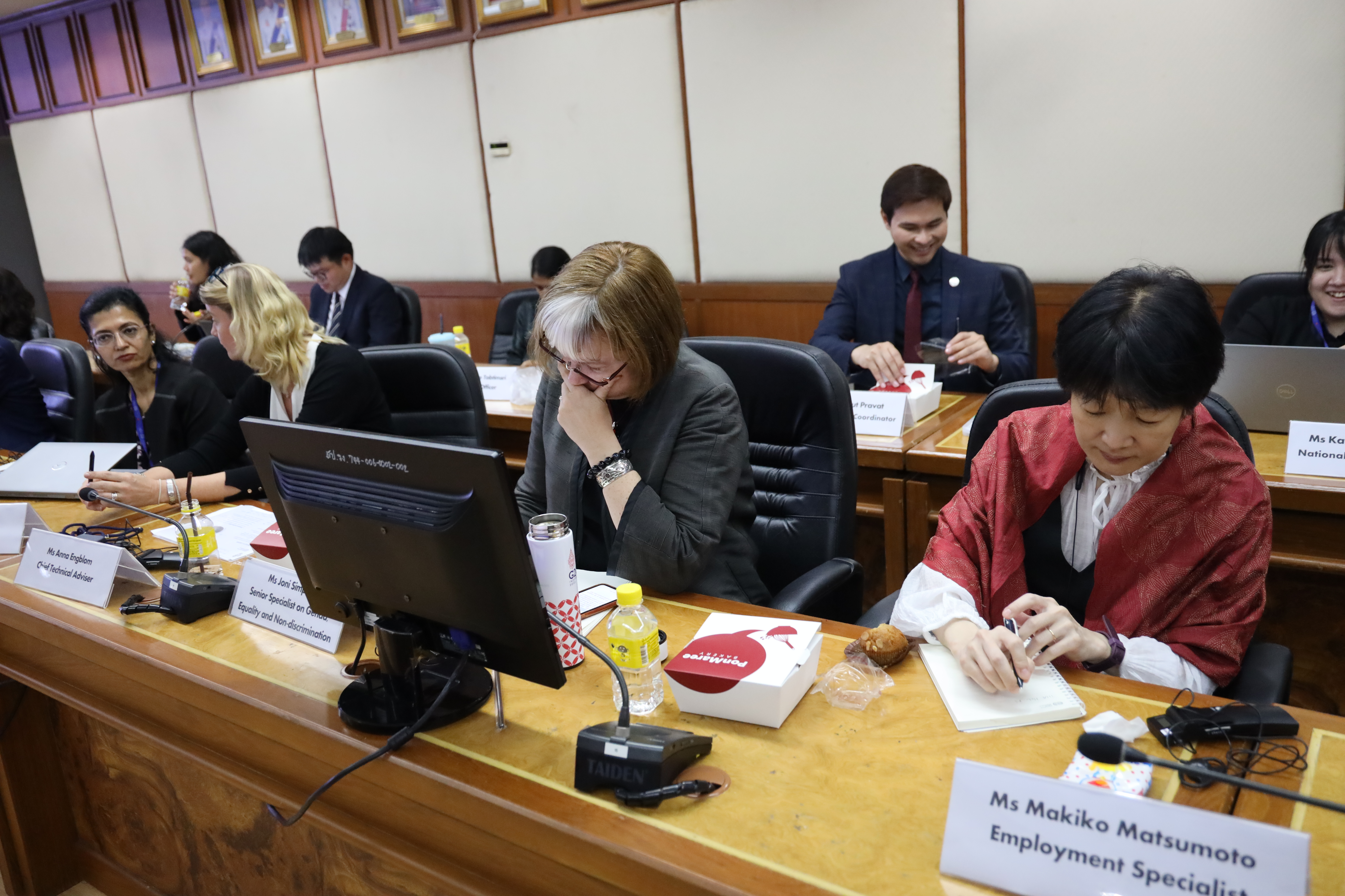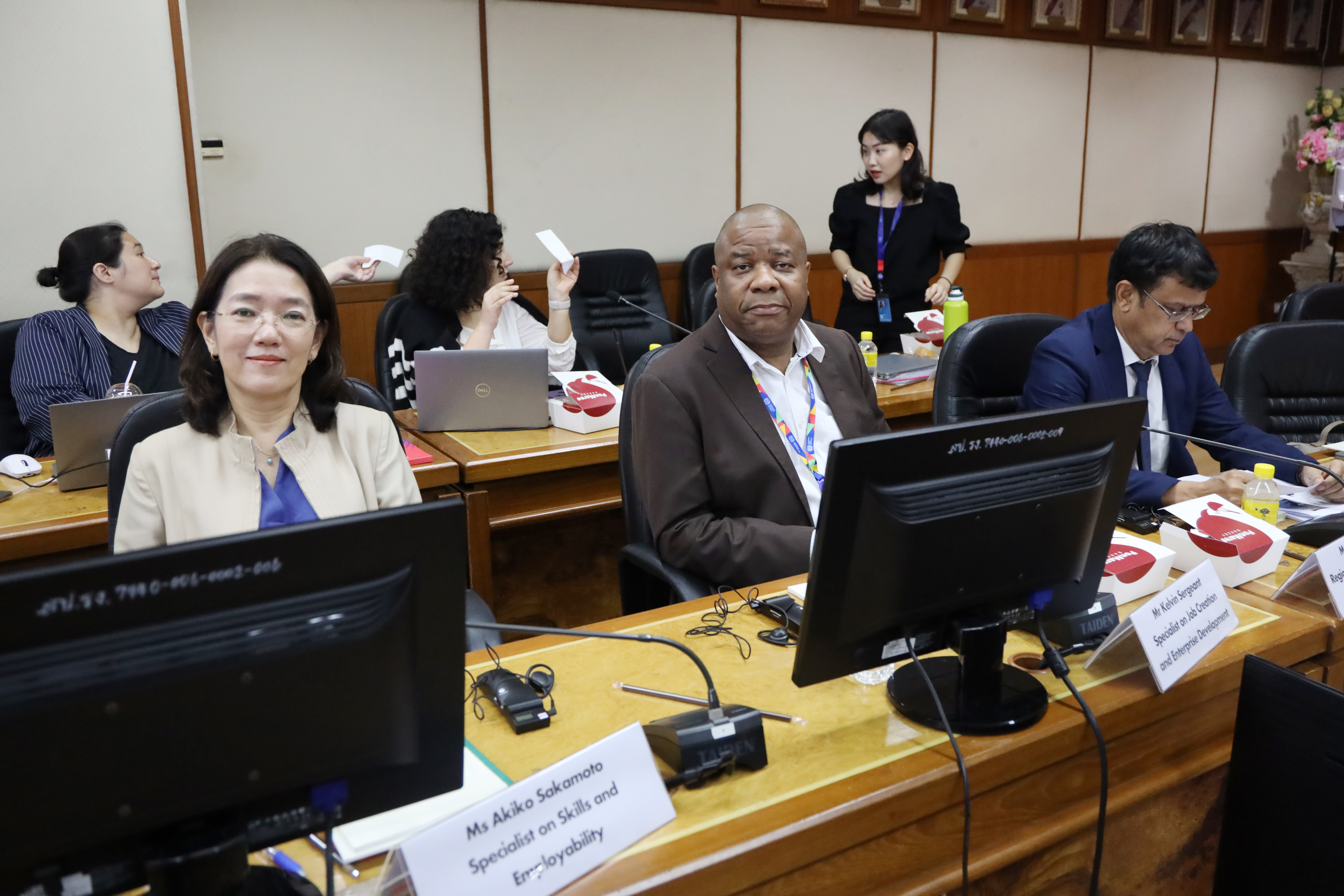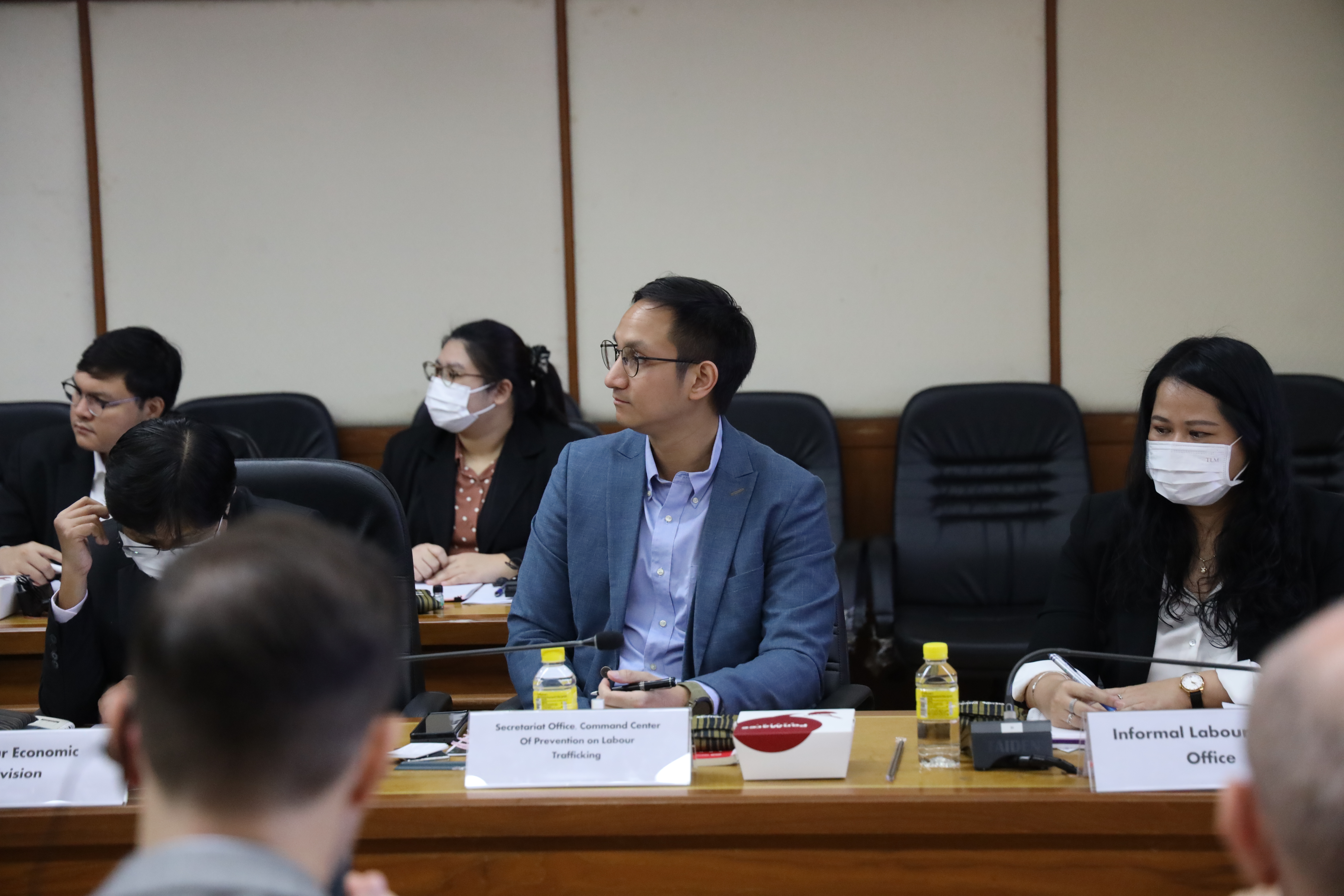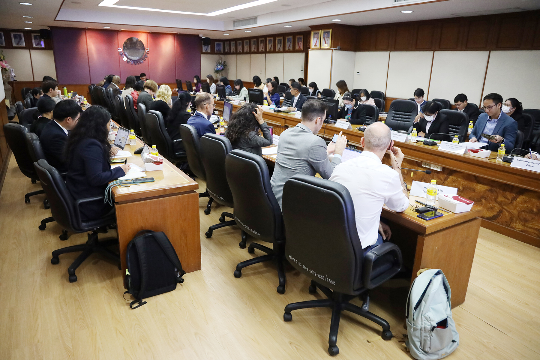 โดยได้รับการสนับสนุนผู้เชี่ยวชาญจากองค์การแรงงานระหว่างประเทศ มาให้ความรู้ รายละเอียดในโครงการความร่วมมือทางวิชาการที่ดำเนินการอยู่ในประเทศไทยขณะนี้ ซึ่งมีจำนวน 13 โครงการ ได้แก่ 1) การเสริมสร้างศักยภาพสำนักงานประกันสังคมด้านคณิตศาสตร์ประกันภัยและการวิจัย(SSO Actuarial) 2) โครงการส่งเสริมและคุ้มครองสิทธิแรงงานข้ามชาติ (TRIANGLE IN ASEAN) 3) โครงการสิทธิจากเรือสู่ฝั่งภูมิภาคเอเชียตะวันออกเฉียงใต้ (Ship to Shore Rights South East Asia) 4) โครงการความปลอดภัยและยุติธรรม: สิทธิและโอกาสของแรงงานต่างด้าวสตรีในภูมิภาคอาเซียน (SAFE and FAIR) 5) โครงการส่งเสริมการรับรู้สิทธิของแรงงานข้ามชาติ (Migrant Advocacy for Rights) 6) โครงการพัฒนากลไกการรับรองทักษะและการยกระดับการฝึกอบรมด้านเทคนิคและการอาชีวศึกษาสู่ดิจิทัลในอาเซียน (Improved mechanisms for skills recognition and TVET digitisation in ASEAN) 7) โครงการเยาวชนคนสร้างอนาคต – ระยะที่ 2 (Young Futuremakers Thailand – Phase II) 8) โครงการห่วงโซ่อุปทานที่ยืดหยุ่น ครอบคลุม และยั่งยืน (Resilient, Inclusive and Sustainable Supply Chain Asia (RISSC) in Thailand) โดยคุณ David Williams 9) โครงการพัฒนาฝีมือแรงงานและการดำเนินธุรกิจอย่างมีความรับผิดชอบเพื่อการเปลี่ยนผ่าน (Skills Development and Responsible Business Conduct for Transition) 10) โครงการเสริมสร้างความเข้มแข็งเศรษฐกิจสังคมสมานฉันท์ในภูมิภาคเอเชีย (Strengthening the SSE in Asia – Phase II) โดยคุณ Heejin Ahn 11) โครงการส่งเสริมศักยภาพของเยาวชนและเครือข่ายในเอเชียแปซิฟิก (Building Youth Capacity and Network in Asia-Pacific) 12) โครงการส่งเสริมสภาพแวดล้อมในการทำงานที่ปลอดภัยและมีสุขอนามัย ตามหลักการและ สิทธิขั้นพื้นฐานในการทำงาน ในกัมพูชาและประเทศไทย (SSN/OSH) และ 13) การส่งเสริมการพัฒนาระดับโลก โดยให้ความสำคัญกับความร่วมมือใต้ – ใต้ ด้านการจ้างงานในอาเซียน (ProSSCE-ASEAN)