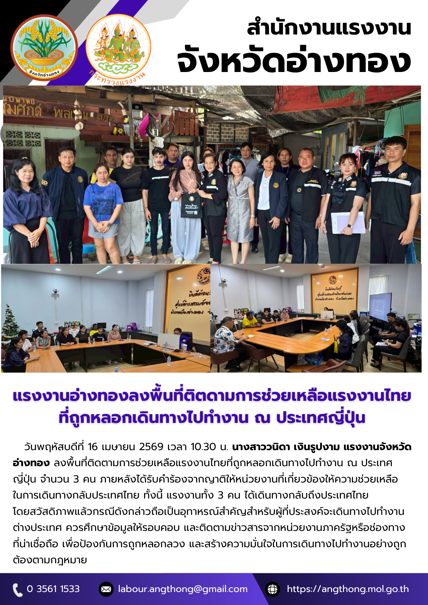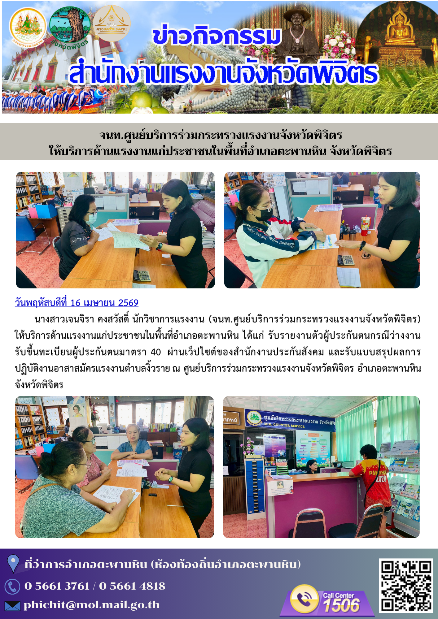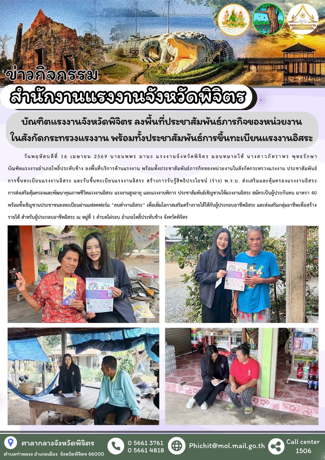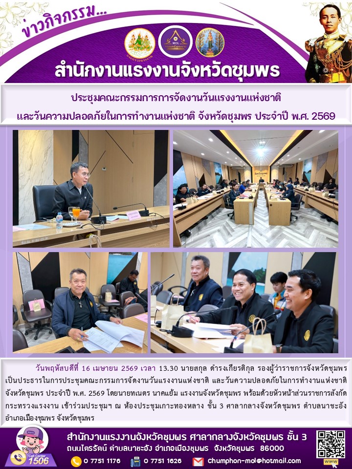 วันเสาร์ที่ 10 มกราคม 2569 เวลา 07.30 น. นางภัทราภรณ์ เจริญรักษ์ แรงงานจังหวัดเพชรบุรี พร้อมด้วยหัวหน้าส่วนราชการสังกัดกระทรวงแรงงานจังหวัดเพชรบุรี และข้าราชการ/เจ้าหน้าที่ ร่วมออกบูธจัดกิจกรรมงาน “วันเด็กแห่งชาติ ประจำปี 2569” ซึ่งกระทรวงแรงงานได้นำกิจกรรมส่งมอบความสุขและรอยยิ้มให้กับเด็กที่มาในงานได้ร่วมเล่นเกม รับของขวัญของรางวัลมากมายที่บูธหน่วยงานในสังกัดกระทรวงแรงงาน และที่ได้รับการสนับสนุนจากหน่วยงานภาคเอกชนหลายแห่งในจังหวัดเพชรบุรี ได้จัดเตรียมไว้ อาทิ จักรยาน, ตุ๊กตา, อุปกรณ์การเรียน, อุปกรณ์กีฬา, ขนม และของเล่น เป็นต้น นอกจากนี้ ยังได้แจกขนมโตเกียวอีก 1 คันรถ ซึ่งบรรยากาศเป็นไปอย่างสนุกสนาน คึกคัก สร้างความสุขและรอยยิ้มแก่ผู้มาร่วมงาน โดยมี ร้อยตำรวจโท ภพชนก ชลานุเคราะห์ ผู้ว่าราชการจังหวัดเพชรบุรี เป็นประธาน ณ ลานรัฐพิธี หน้าศาลากลางจังหวัดเพชรบุรี