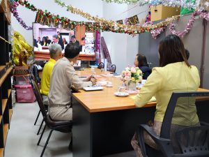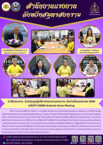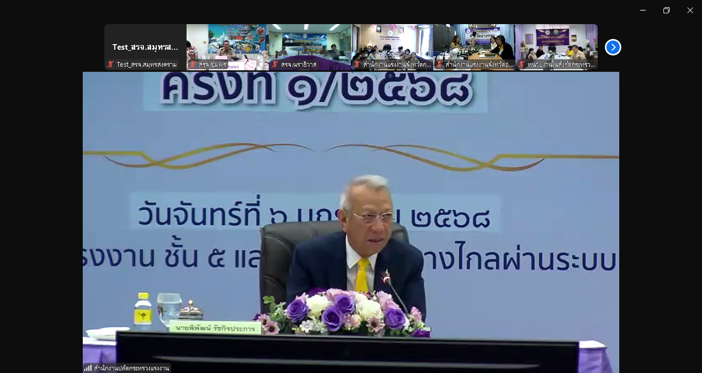 วันที่ 6 มกราคม 2568 เวลา 09.30 น. นางรภัสสา พานิกุล แรงงานจังหวัดสมุทรสงคราม พร้อมด้วย นายไพรัช พรมจีน สวัสดิการและคุ้มครองแรงงานจังหวัดสมุทรสงคราม นางอรุณ ธาราวุฒิ ประกันสังคมจังหวัดสมุทรสงคราม นางสาวสุนารี คงสถิตย์ จัดหางานจังหวัดสมุทรสงคราม และนายประดิษฐ์ ราชเดิม ผู้อำนวยการสำนักงานพัฒนาฝีมือแรงงานสมุทรสงคราม ร่วมประชุมผู้บริหารกระทรวงแรงงาน ประจำเดือนมกราคม 2568 (ครั้งที่ 1/2568) ผ่านระบบประชุมทางไกล (Video Conference) Zoom Meeting จากห้องประชุมกระทรวงแรงงาน ชั้น 5 อาคารกระทรวงแรงงาน โดยมี นายพิพัฒน์ รัชกิจประการ รัฐมนตรีว่าการกระทรวงแรงงาน เป็นประธานในการประชุม เพื่อให้ผู้บริหารทั้งในส่วนกลางและส่วนภูมิภาคมีส่วนร่วมแลกเปลี่ยนความคิดเห็นและเกิดความเข้าใจในนโยบายและข้อสั่งการของรัฐมนตรีว่าการกระทรวงแรงงานอย่างถูกต้องและเป็นเอกภาพ ณ ห้องประชุมสำนักงานแรงงานจังหวัดสมุทรสงคราม ชั้น 5 ศาลากลางจังหวัดสมุทรสงคราม