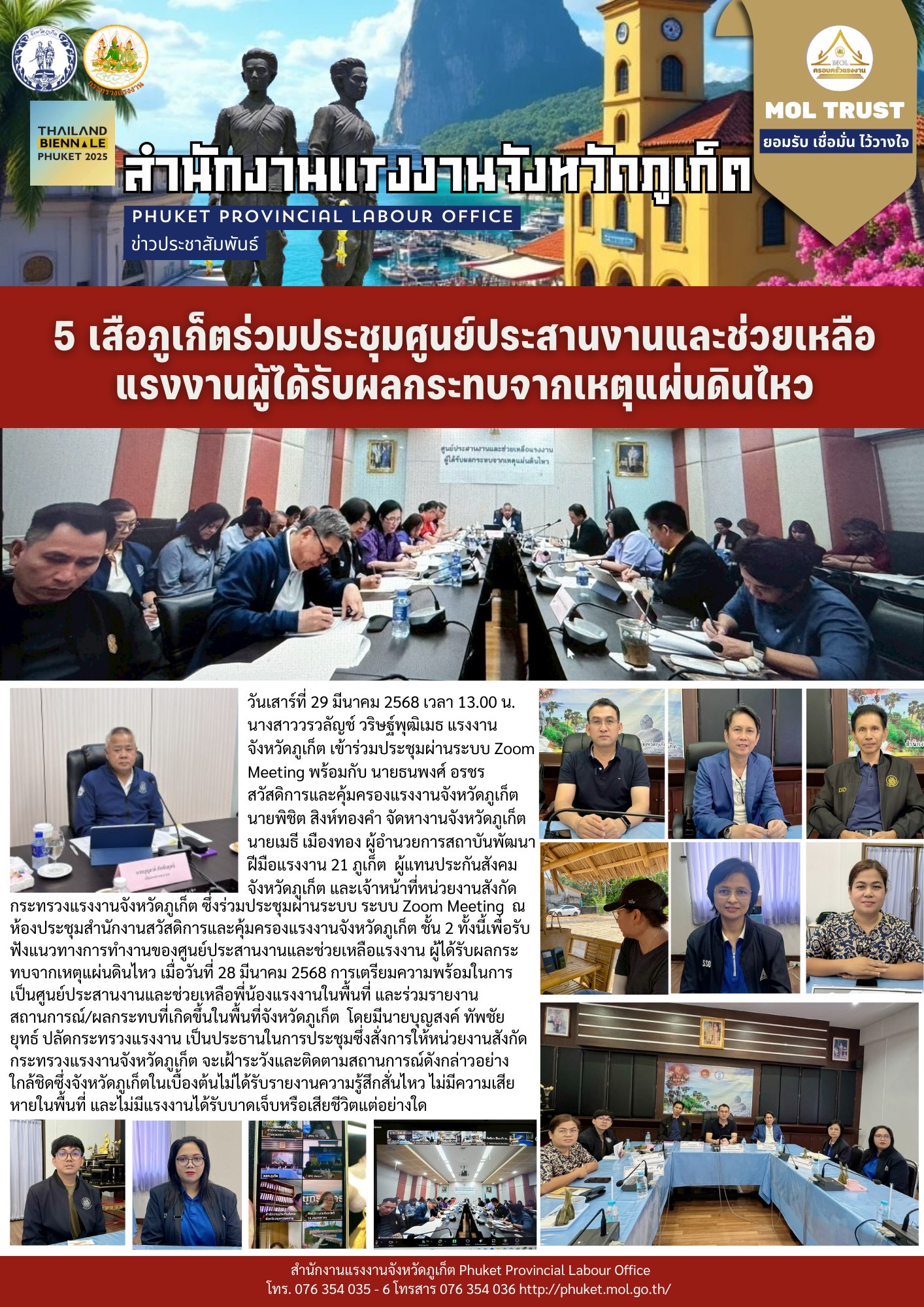 5 เสือภูเก็ตร่วมประชุมศูนย์ประสานงานและช่วยเหลือแรงงานผู้ได้รับผลกระทบจากเหตุแผ่นดินไหว