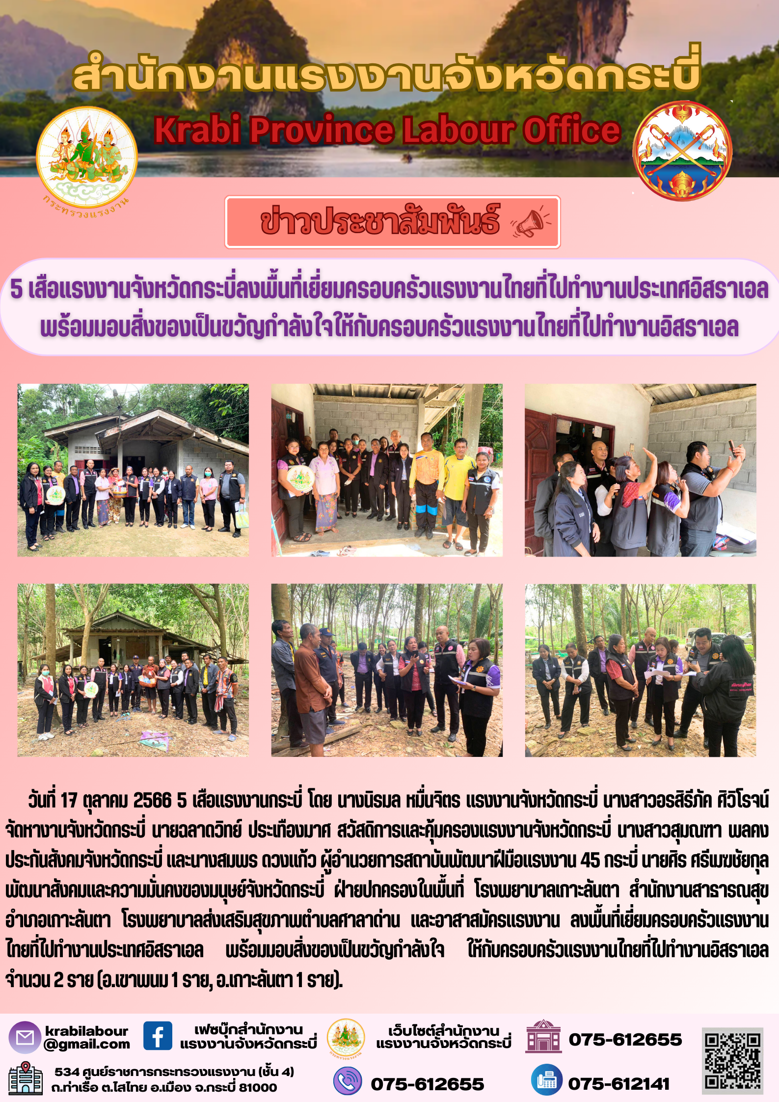 สรจ.กระบี่ ลงพื้นที่เยี่ยมครอบครัวแรงงานไทยที่ไปทำงานประเทศอิสราเอลพร้อมมอบสิ่งของเป็นขวัญกำลังใจให้กับครอบครัวแรงงานไทยที่ไปทำงานอิสราเอล
