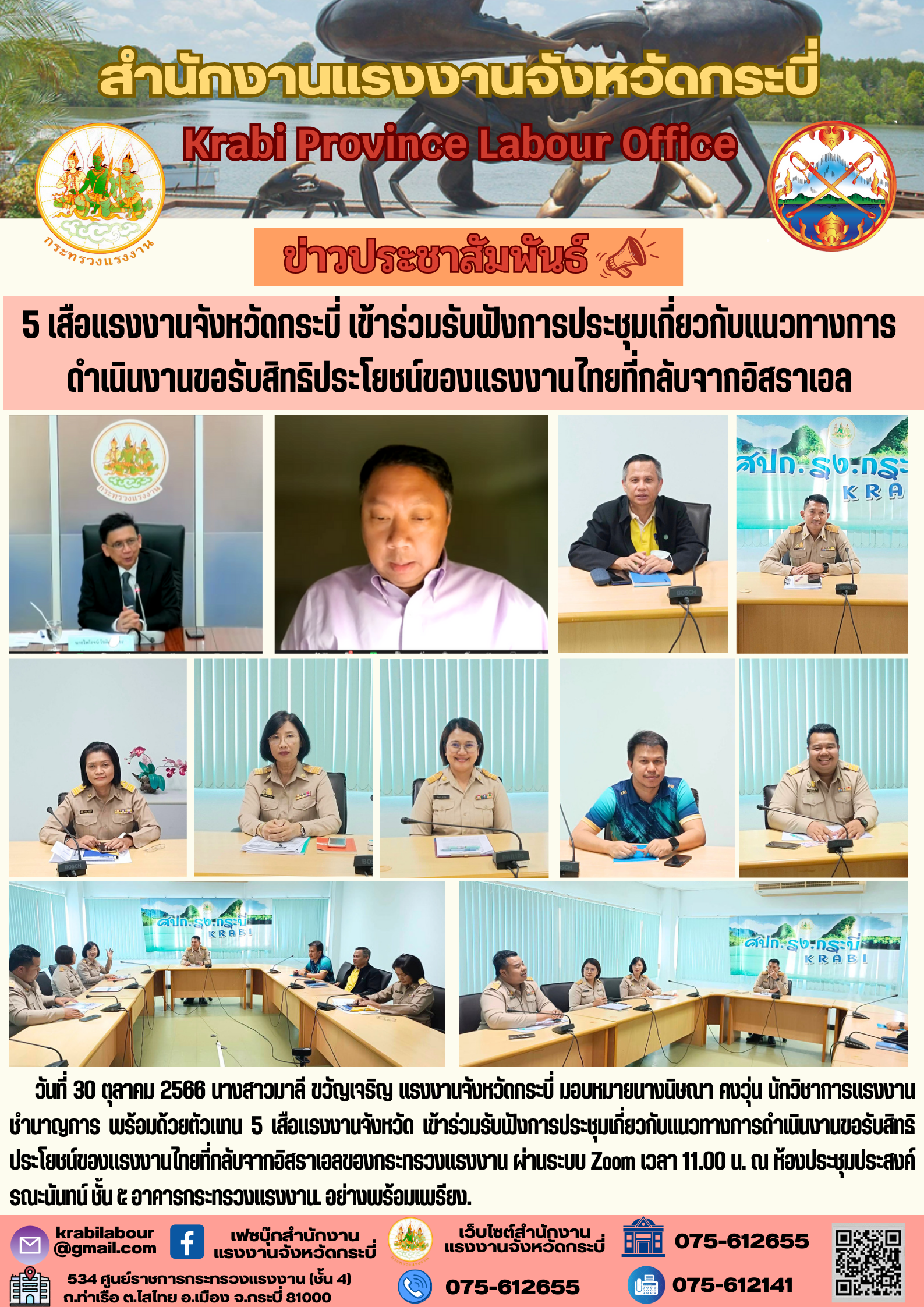 สรจ.กระบี่ เข้าร่วมรับฟังการประชุมเกี่ยวกับแนวทางการดำเนินงานขอรับสิทธิประโยชน์ของแรงงานไทยที่กลับจากอิสราเอล
