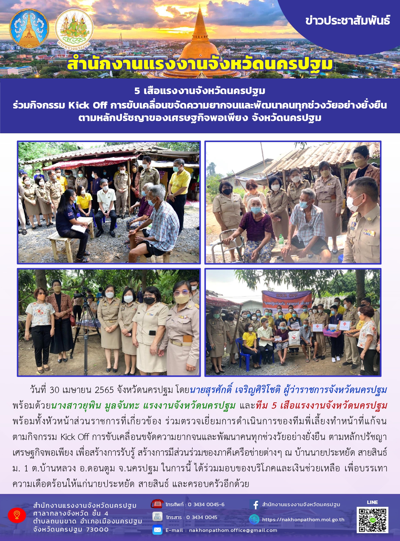 5 เสือแรงงานจังหวัดนครปฐม ร่วมกิจกรรม Kick Off การขับเคลื่อนขจัดความยากจนและพัฒนาคนทุกช่วงวัยอย่างยั่งยืน ตามหลักปรัชญาของเศรษฐกิจพอเพียง จังหวัดนครปฐม