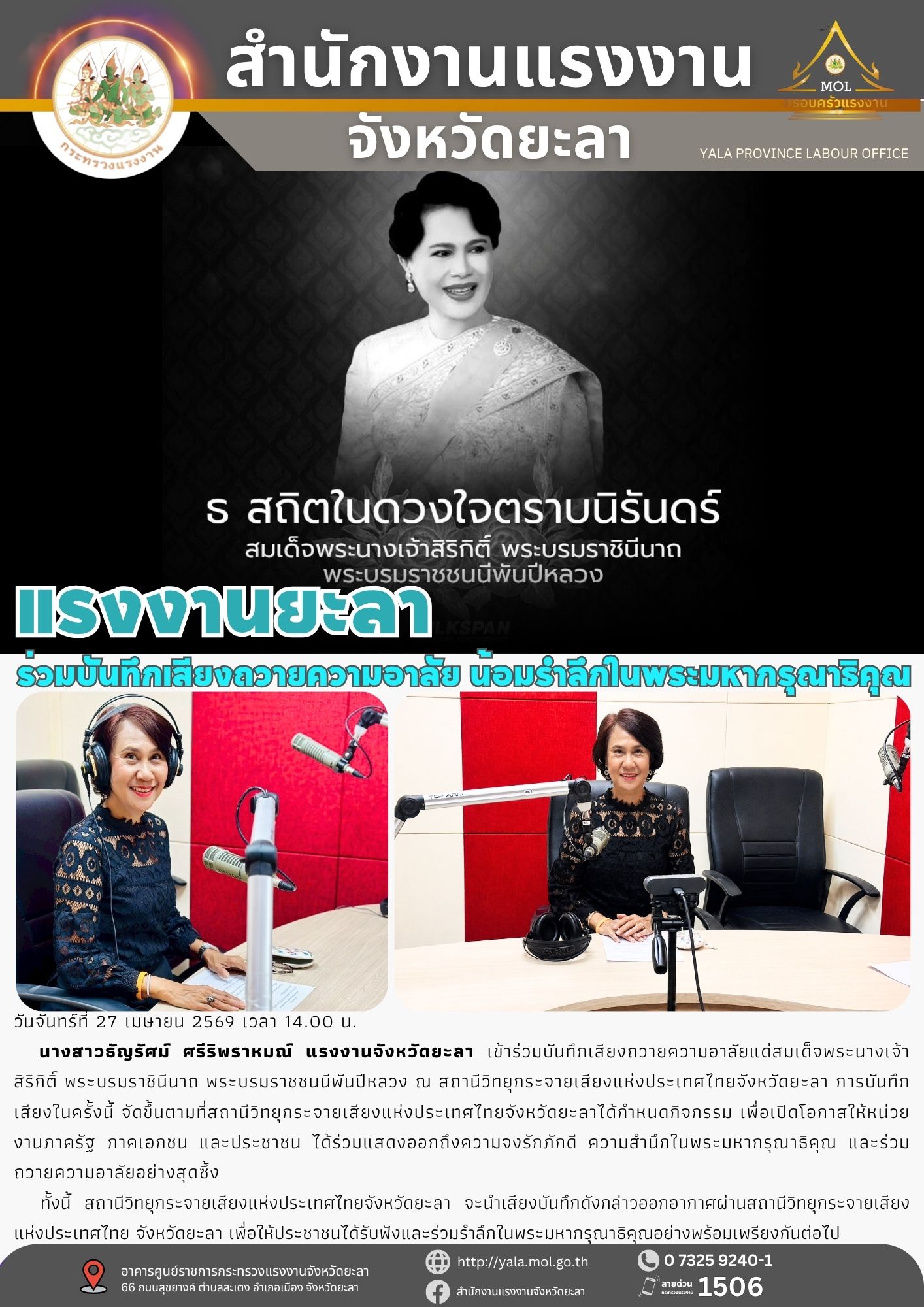 แรงงานยะลา ร่วมบันทึกเสียงถวายความอาลัย น้อมรำลึกในพระมหากรุณาธิคุณ