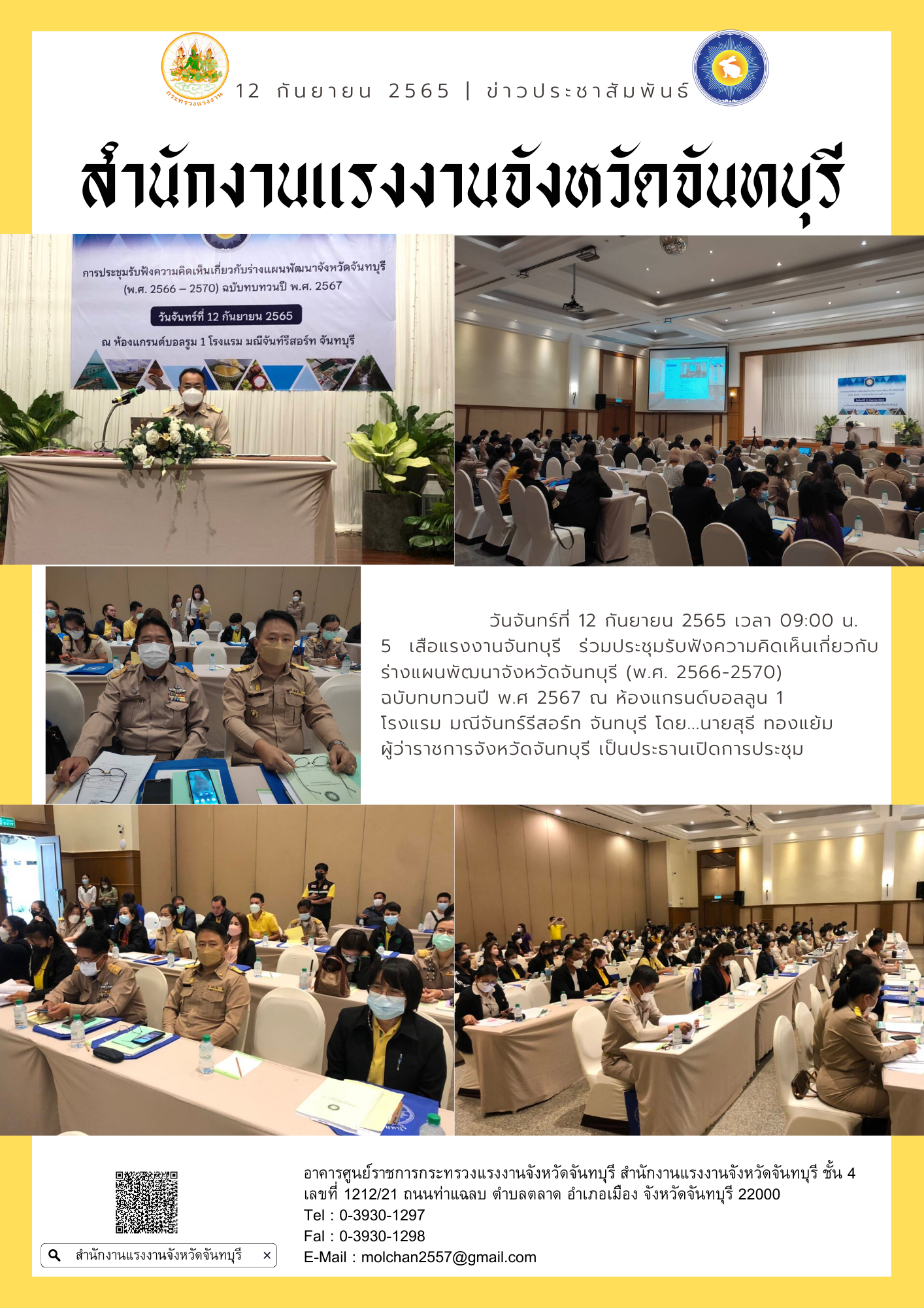 5 เสือแรงงานจันทบุรี ร่วมประชุมรับฟังความคิดเห็นเกี่ยวกับร่างแผนพัฒนาจังหวัดจันทบุรี (พ.ศ. 2566-2570) ฉบับทบทวนปี พ.ศ 2567