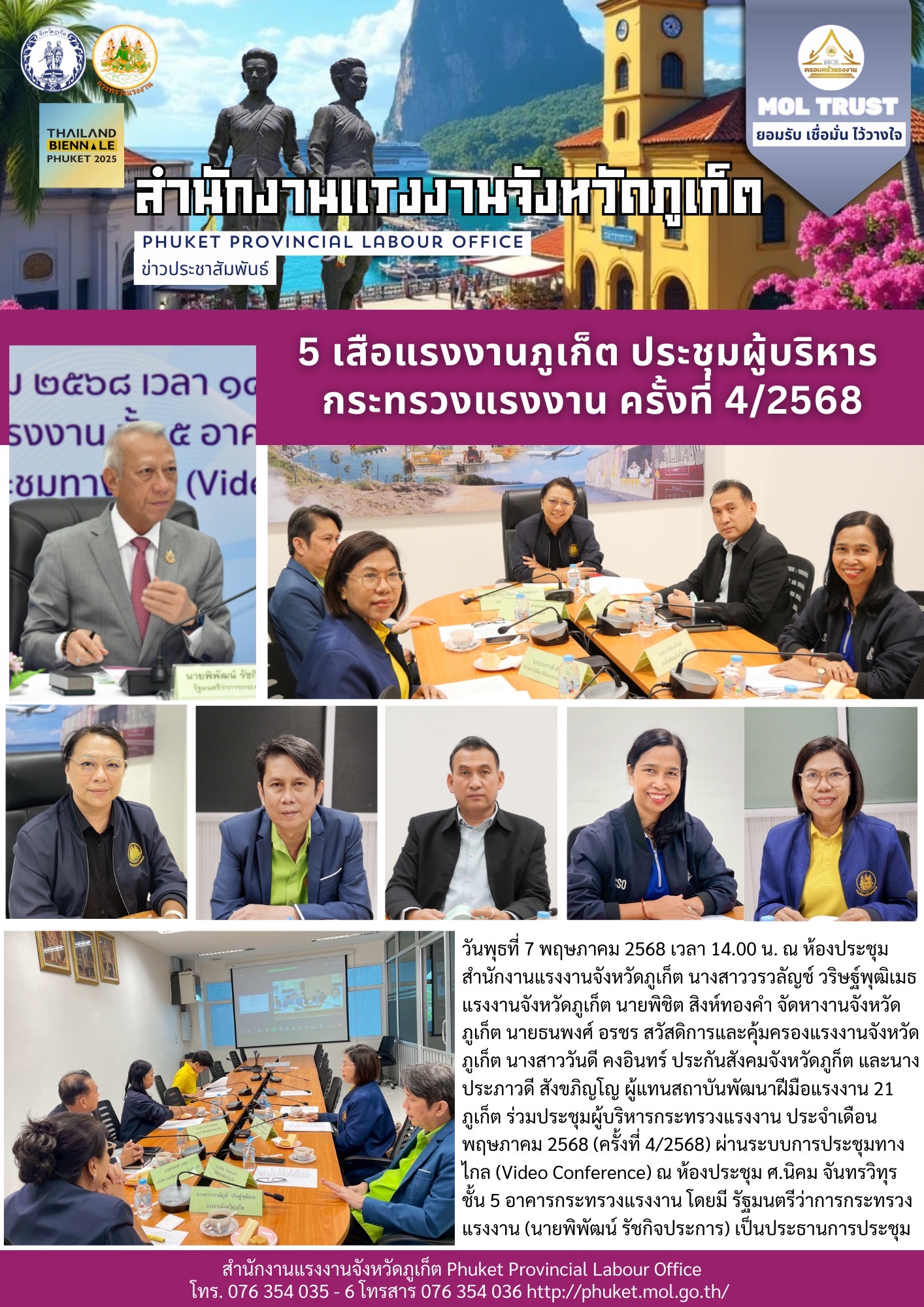 5 เสือแรงงานภูเก็ต ประชุมผู้บริหารกระทรวงแรงงาน ครั้งที่ 4/2568