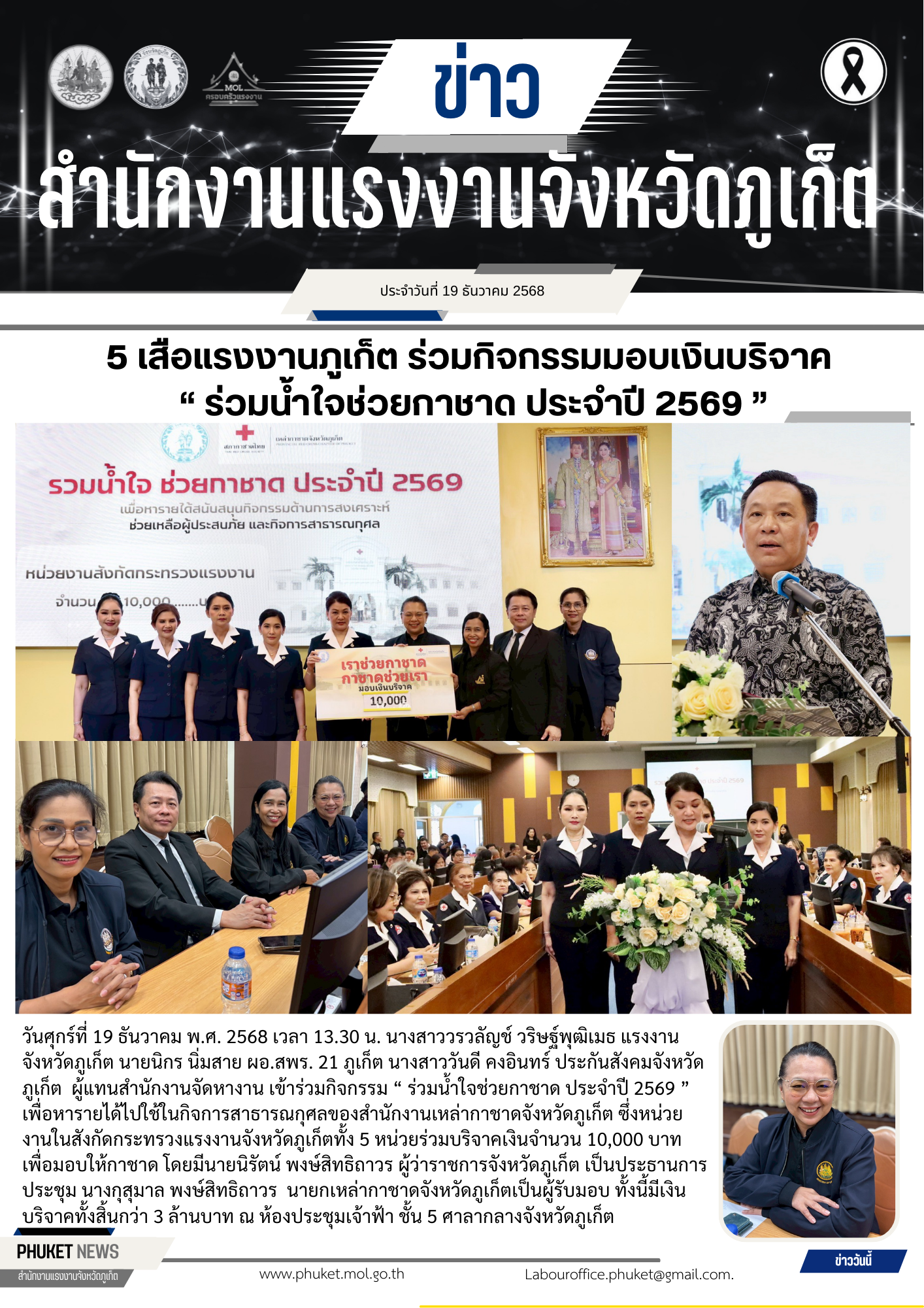 5 เสือแรงงานภูเก็ต ร่วมกิจกรรมมอบเงินบริจาค “ ร่วมน้ำใจช่วยกาชาด ประจำปี 2569 ”