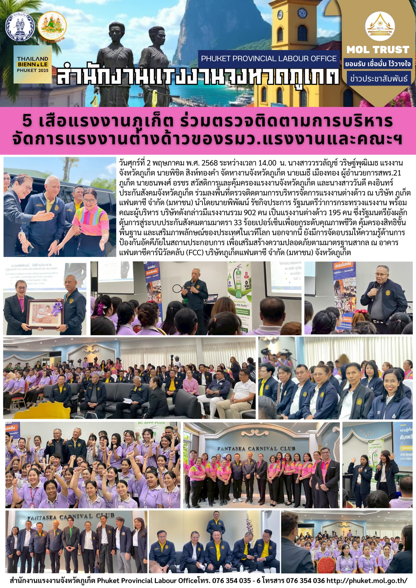 5 เสือแรงงานภูเก็ต ร่วมตรวจติดตามการบริหารจัดการแรงงานต่างด้าวของรมว.แรงงานและคณะฯ