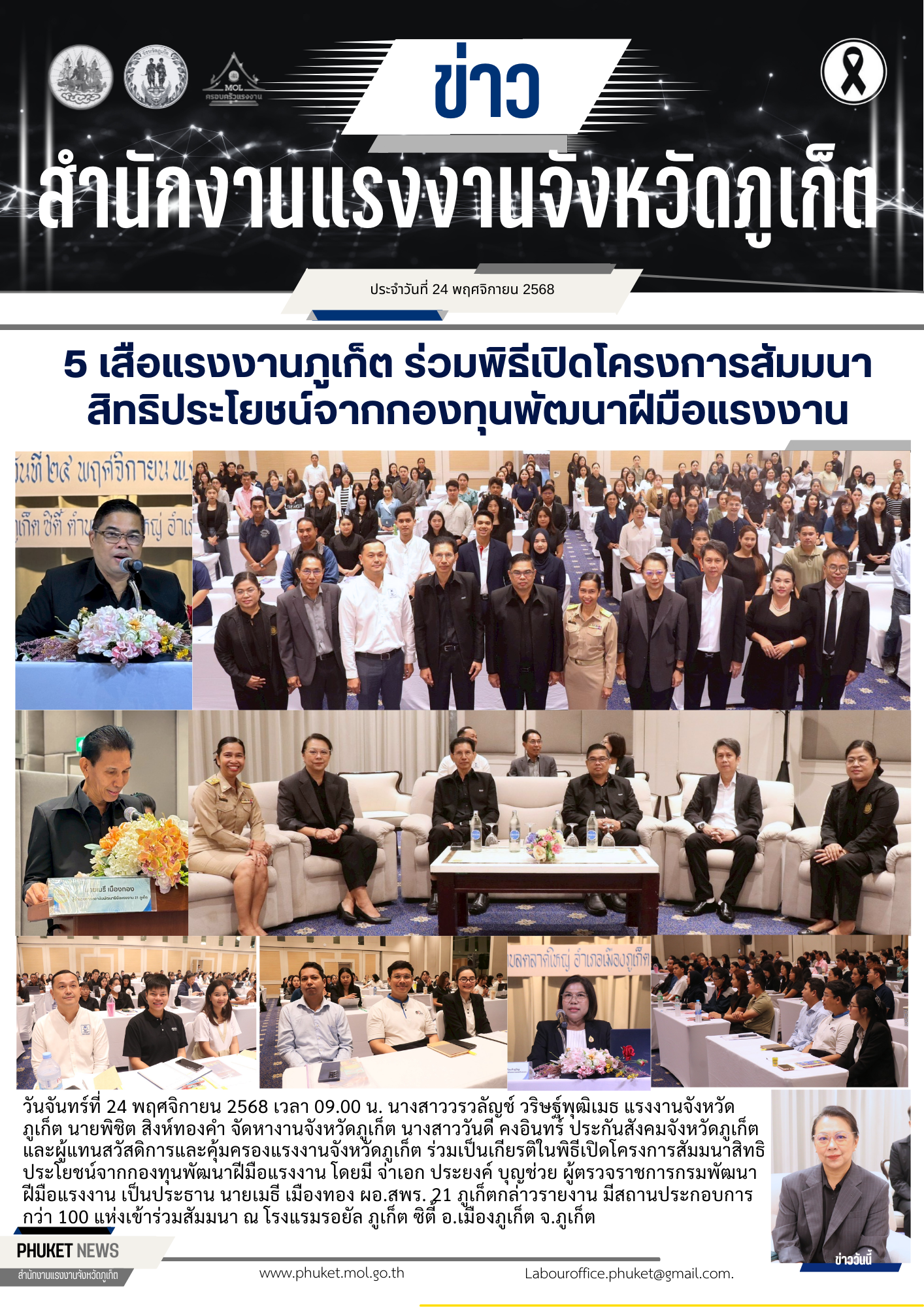 5 เสือแรงงานภูเก็ต ร่วมพิธีเปิดโครงการสัมมนา สิทธิประโยชน์จากกองทุนพัฒนาฝีมือแรงงาน