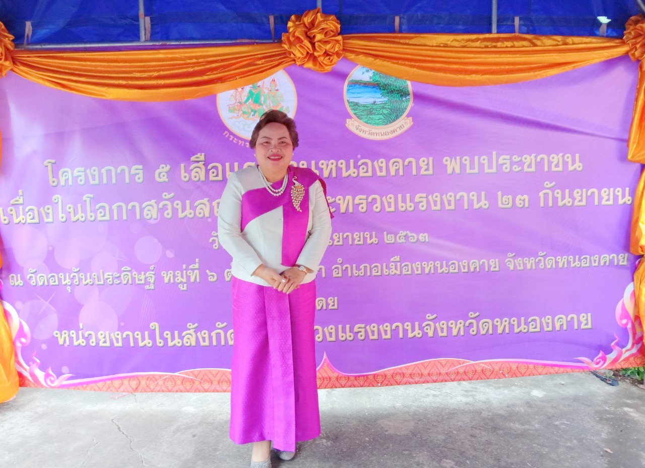 นางวรรณกานต์ ขาวลาภ แรงงานจังหวัดหนองคาย กล่าวว่า หน่วยงานสังกัดกระทรวงแรงงานจังหวัดหนองคาย ประกอบด้วย แรงงานจังหวัดหนองคาย จัดหางานจังหวัดหนองคาย ผอ.สำนักงานพัฒนาฝีมือแรงงานหนองคาย สวัสดิการและคุ้มครองแรงงานจังหวัดหนองคาย และสำนักงานประกันสังคมจังหวัดหนองคาย มีภารกิจในการดูแล ส่งเสริม คุ้มครอง และพัฒนากลุ่มผู้ใช้แรงงาน เพื่อให้แรงงานมีศักยภาพสูง และมีคุณภาพชีวิตที่ดี ประกอบกับเป็นวันคล้ายวันสถาปนากระทรวงแรงงาน กระทรวงแรงงานได้สั่งการให้จัดทำโครงการ 5 เสือแรงงานหนองคายพบประชาชน เนื่องในโอกาสวันสถาปนากระทรวงแรงงาน ครบรอบ 27 ปี ในวันที่ 23 กันยายน โดยมีวัตถุประสงค์เพื่อประชาสัมพันธ์ภารกิจหน้าที่ของหน่วยงานในสังกัดกระทรวงแรงงาน และเพื่อให้บริการด้านแรงงานให้แก่ประชาชนในพื้นที่จังหวัดหนองคาย กลุ่มเป้าหมายได้แก่ อาสาสมัครแรงงานระดับตำบล หัวหน้าส่วนราชการสังกัดกระทรวงแรงงานจังหวัดหนองคาย เจ้าหน้าที่หน่วยงานในสังกัดกระทรวงแรงงานจังหวัดหนองคาย และประชาชนในพื้นที่จังหวัดหนองคาย จำนวน 103 คน