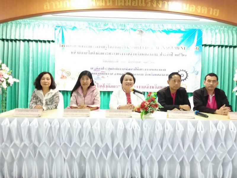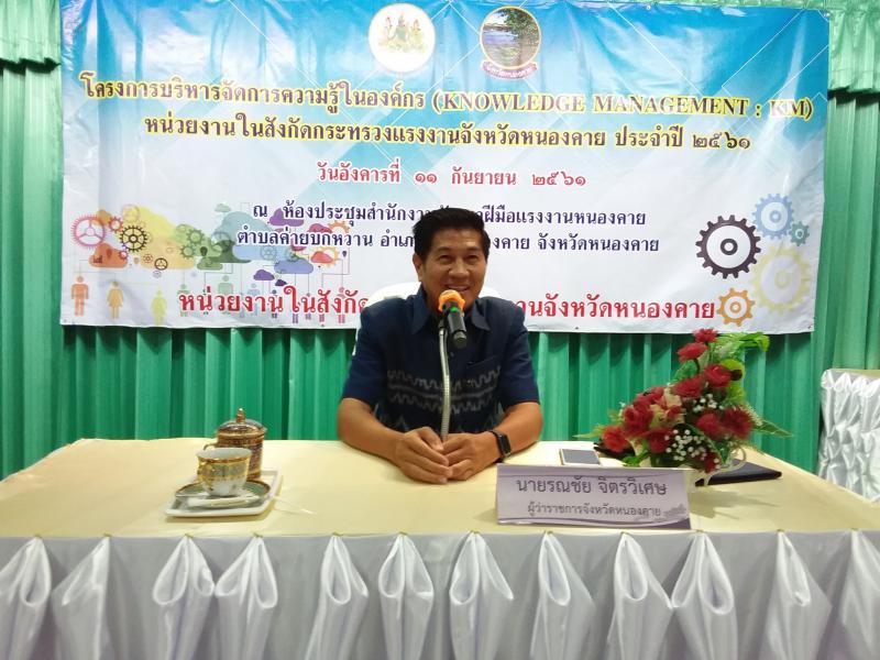 วันที่ 11 กันยายน 2561 5 เสือแรงงานหนองคาย ร่วมกันจัดโครงการบริหารจัดการความรู้ในองค์กร (KNOWLEDGE MANAGEMENT : KM) หน่วยงานในสังกัดกระทรวงแรงงานจังหวัดหนองคาย ประจำปี 2561 เพื่อ 1.ส่งเสริมนโยบายการพัฒนาบุคลากรด้านการจัดการความรู้ในองค์กรให้มีความสอดคล้องกับนโยบายกระทรวงแรงงานอย่างทั่วถึง ต่อเนื่องและยั่งยืน 2.กระตุ้นให้บุคลากรที่มาเข้ามามีส่วนร่วมในการแลกเปลี่ยนเรียนรู้ด้านวิธีคิด ประสบการณ์ที่เป็นประโยชน์ต่อการปฏิบัติงานให้มีประสิทธิภาพยิ่งขึ้น 3.สร้างเสริมให้เกิดวัฒนธรรมในการทำงานเป็นทีม ตลอดจนมีการแลกเปลี่ยนเรียนรู้ประสบการณ์ร่วมกันของบุคลากรในสังกัดกระทรวงแรงงานจังหวัดหนองคาย และมีการมอบเกียรติบัตรให้กับผู้ปฏิบัติงานดีเด่นของหน่วยงานในสังกัดกระทรวงแรงงานจังหวัดหนองคาย จำนวน 15 คน โดยมีนายรณชัย จิตรวิเศษ ผู้ว่าราชการจังหวัดหนองคาย เป็นประธานในพิธีเปิดการจัดโครงการดังกล่าว