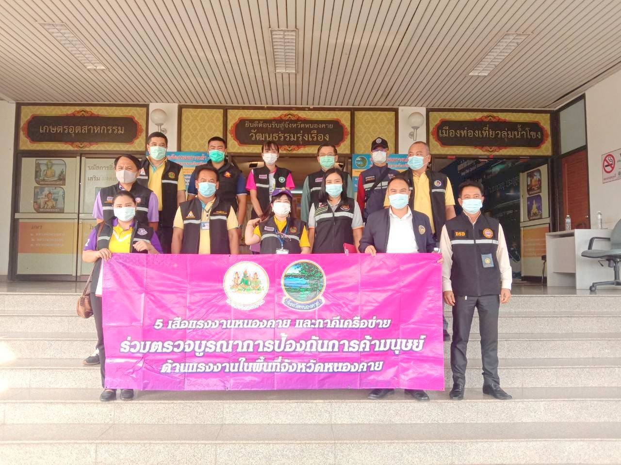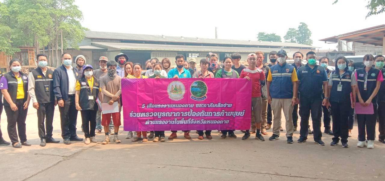 วันที่ 17 มีนาคม 2564 สำนักงานแรงงานจังหวัดหนองคาย ร่วมกับหน่วยงานภาคีเครือข่าย ได้แก่ หน่วยงานสังกัดกระทรวงแรงงานจังหวัดหนองคาย กอ.รมน.จังหวัดหนองคาย ตำรวจภูธรจังหวัดหนองคาย ที่ทำการปกครองจังหวัดหนองคาย สำนักงานสาธารณสุขจังหวัดหนองคาย สำนักงานอุตสาหกรรมจังหวัดหนองคาย และตรวจคนเข้าเมืองจังหวัดหนองคายได้ตรวจบูรณาการป้องกันการค้ามนุษย์ด้านแรงงาน และตรวจบูรณาการตามมาตรการป้องกันการแพร่ระบาดของโรคติดเชื้อไวรัสโคโรนา 2019 ในสถานประกอบการที่มีการจ้างแรงงานต่างด้าว ในพื้นที่จังหวัดหนองคาย โดยเข้าตรวจสถานประกอบการ จำนวน 6 แห่ง ลูกจ้างรวมทั้งสิ้น 103 คน (สัญชาติไทย 59 คน , ลาว 17 คน และกัมพูชา 27 คน)