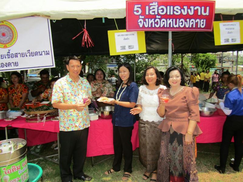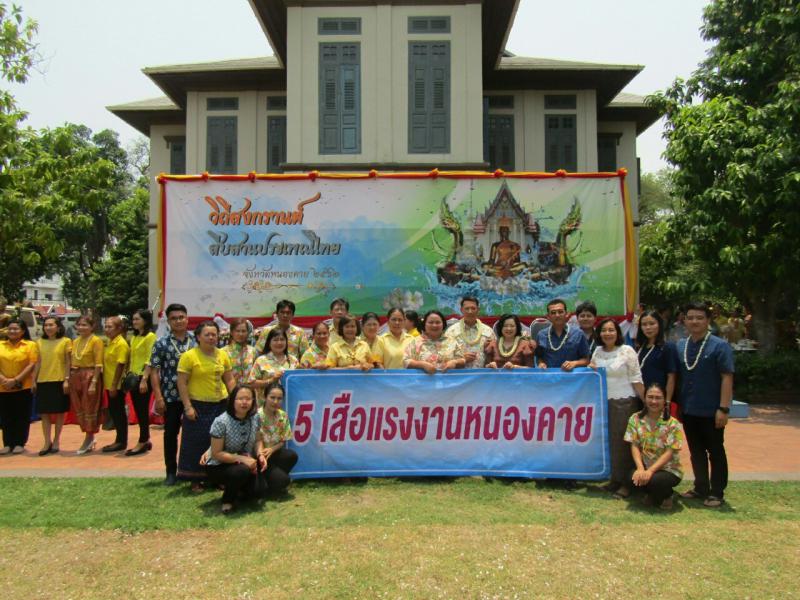 เมื่อวันที่ 22 เมษายน 2562 เวลา 11.00 น. นางวรรณกานต์ ขาวลาภ แรงงานจังหวัดหนองคาย นายธนพงศ์ อรชร สวัสดิการและคุ้มครองแรงงานจังหวัดหนองคาย นางสาวรังสิมา ปรีชาชาติ และเจ้าหน้าที่หน่วยงานสังกัดกระทรวงแรงงานจังหวัดหนองคาย ร่วมรดน้ำดำหัวผู้บริหารจังหวัดหนองคาย “วิถีสงกรานต์ สืบสานประเพณีไทย จังหวัดหนองคาย 2562” และออกบู๊ทส้มตำ 5 เสือแรงงานในงานนี้ด้วย