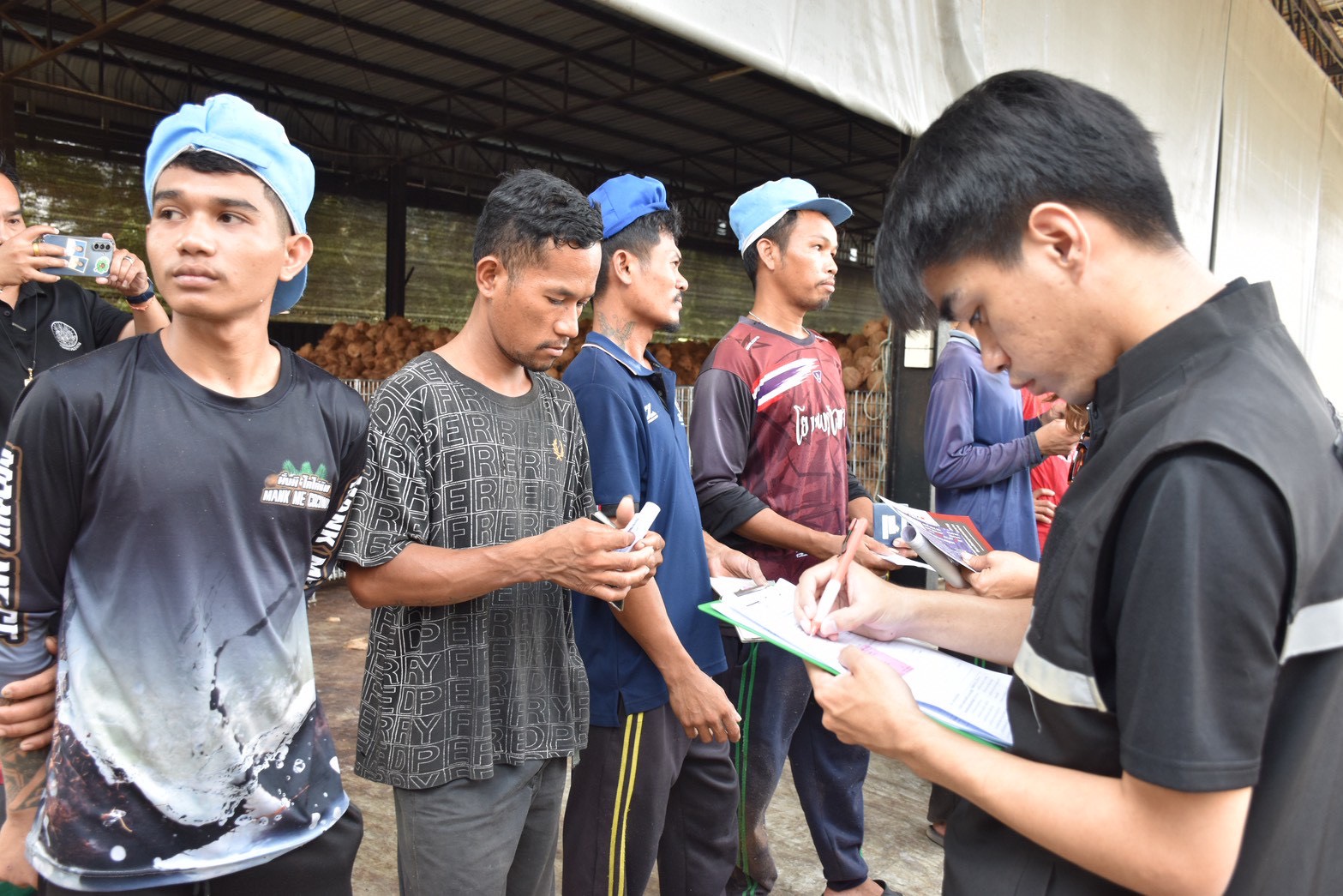 วันอังคารที่ 21 เมษายน 2569 เวลา 08.30 น. นางรภัสสา พานิกุล แรงงานจังหวัดสมุทรสงคราม พร้อมด้วย นายอรัชพร ดุษฎี นักวิชาการแรงงานปฏิบัติการ บัณฑิตแรงงาน หน่วยงานสังกัดกระทรวงแรงงานจังหวัดสมุทรสงคราม ตรวจคนเข้าเมืองจังหวัดสมุทรสงคราม และสำนักงานพัฒนาสังคมและความมั่นคงของมนุษย์จังหวัดสมุทรสงคราม ลงพื้นที่ตรวจสถานประกอบการกลุ่มเสี่ยง ภายใต้โครงการยกระดับการขับเคลื่อนกลไกเชิงนโยบายในการป้องกันและแก้ไขปัญหาการค้ามนุษย์ด้านแรงงานไปสู่การปฏิบัติ ตามแผนปฏิบัติการป้องกันการบังคับใช้แรงงานหรือบริการและการค้ามนุษย์ด้านแรงงาน จังหวัดสมุทรสงคราม ประจำปีงบประมาณ พ.ศ. 2569 ในพื้นที่อำเภอเมืองสมุทรสงคราม และอำเภออัมพวา จำนวน 4 แห่ง แรงงานรวม 61 คน ประกอบด้วยแรงงานสัญชาติไทย 8 คน สัญชาติเมียนมา 29 คน และสัญชาติกัมพูชา 24 คน
