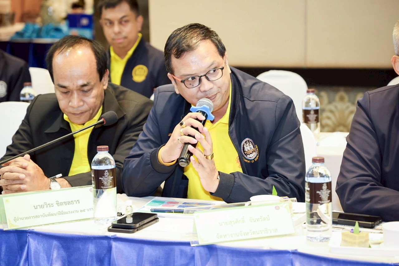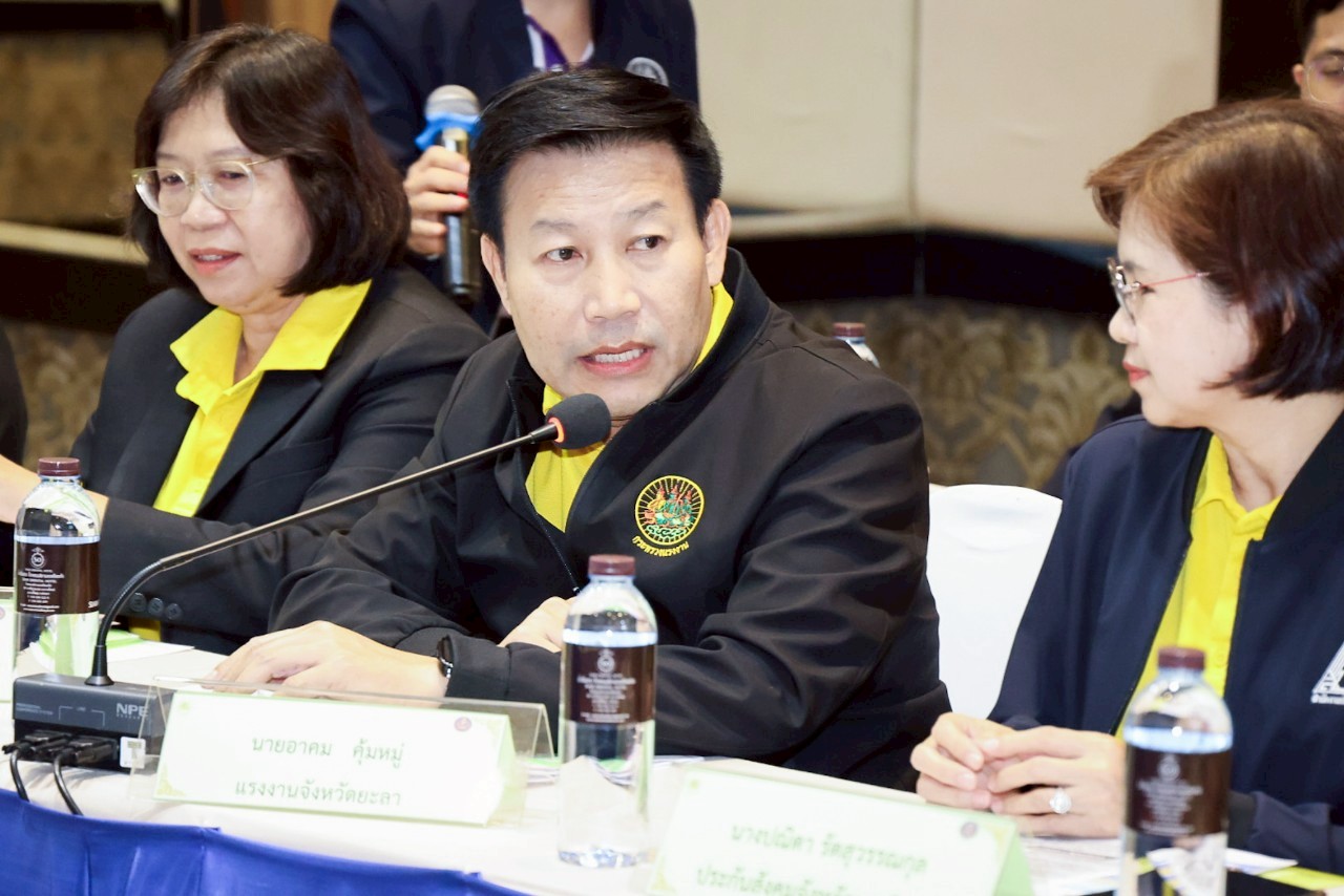 วันที่ 18 มิถุนายน 2568 เวลา 14.30 น. นายพิพัฒน์ รัชกิจประการ รัฐมนตรีว่าการกระทรวงแรงงาน เป็นประธานการประชุมมอบนโยบายที่มีความสำคัญต่อการขับเคลื่อนการบริหารจัดการแรงงานต่างด้าวให้กับหัวหน้าส่วนราชการสังกัดกระทรวงแรงงานในพื้นที่ 4 จังหวัดชายแดนภาคใต้ ประกอบด้วย จังหวัดสงขลา ปัตตานี ยะลา และนราธิวาส โดยมี นาวาอากาศเอก อธิคุณ คงมี คณะที่ปรึกษารัฐมนตรีด้านการบริหารจัดการแรงงานผิดกฎหมาย นายสมาสภ์ ปัทมะสุคนธ์ รองปลัดกระทรวงแรงงาน นายพิเชษฐ์ ทองพันธ์ ผู้ตรวจราชการกระทรวงแรงงาน พร้อมด้วยผู้บริหาร หัวหน้าส่วนราชการกระทรวงแรงงานจังหวัดสงขลา ปัตตานี ยะลา และนราธิวาส เข้าร่วม ณ ห้องจุฑารัตน์ ชั้น 3 โรงแรมสยามออเรียนทัล อำเภอหาดใหญ่ จังหวัดสงขลา