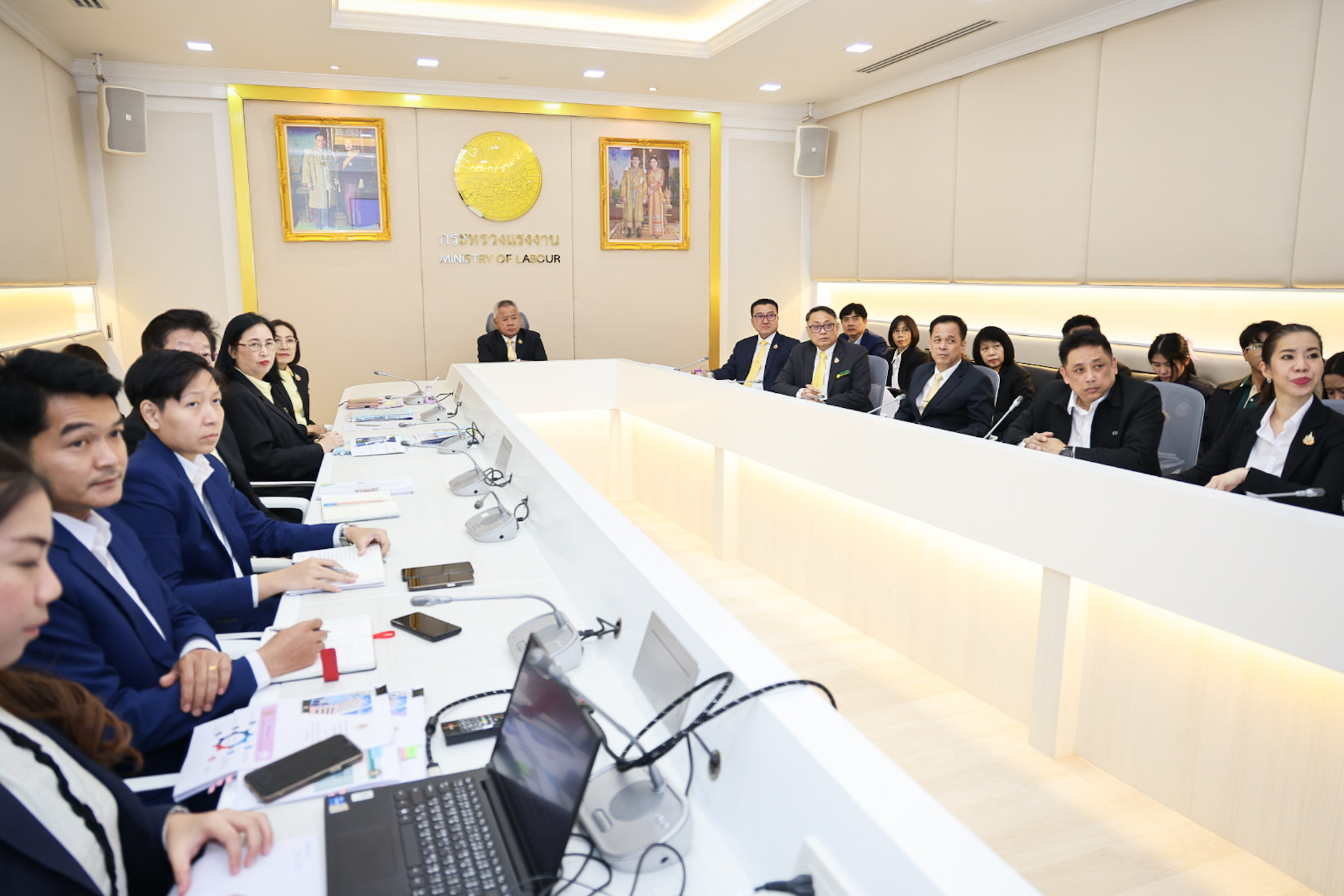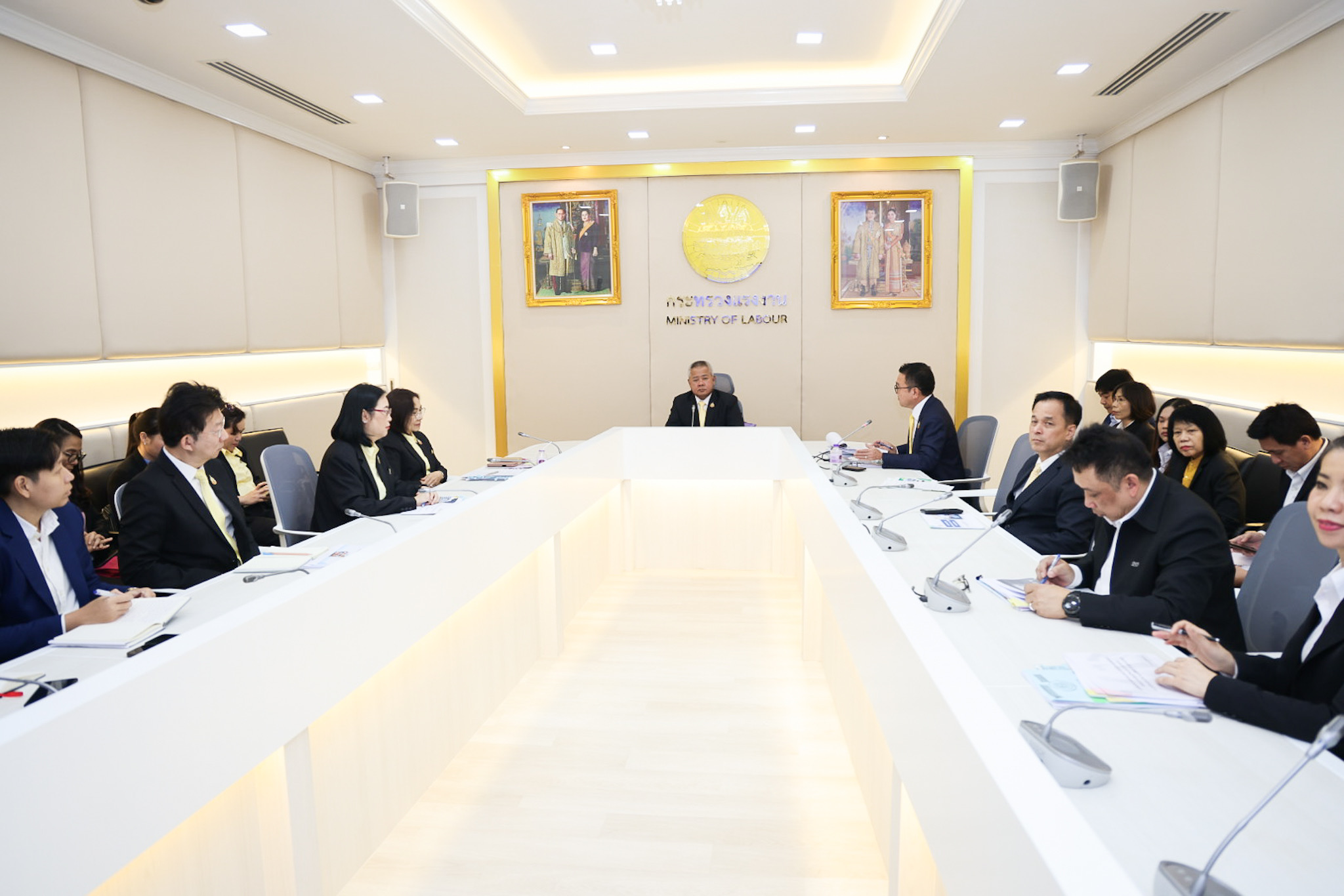 วันที่ 4 กรกฎาคม 2568 นายบุญสงค์ ทัพชัยยุทธ์ ปลัดกระทรวงแรงงาน เป็นประธานการประชุมเพื่อนำเสนอวิดีทัศน์งบประมาณของกระทรวงแรงงาน เพื่อเตรียมความพร้อมก่อนเสนอต่อคณะกรรมาธิการวิสามัญพิจารณาร่างพระราชบัญญัติงบประมาณรายจ่ายประจำปีงบประมาณ พ.ศ.2569 สภาผู้แทนราษฎร และสมาชิกวุฒิสภา โดยมี นายสันติ นันตสุวรรณ รองปลัดกระทรวงแรงงาน เรือเอก สาโรจน์ คมคาย อธิบดีกรมสวัสดิการและคุ้มครองแรงงาน นางมารศรี ใจรังษี เลขาธิการสำนักงานประกันสังคม นายสิบหมื่นชัย โพธิสินธุ์ รองอธิบดีกรมการจัดหางาน และเจ้าหน้าที่หน่วยงานที่เกี่ยวข้องเข้าร่วมประชุม ณ ห้องประชุมปลัดกระทรวงแรงงาน ชั้น 7 อาคารกระทรวงแรงงาน โดยที่ประชุมได้ร่วมกันพิจารณาการนำเสนอวิดีทัศน์ งบประมาณของกระทรวงแรงงานต่อคณะกรรมาธิการฯ สภาผู้แทนราษฎร และสมาชิกวุฒิสภา เพื่อให้เป็นไปด้วยความเรียบร้อย มีประสิทธิภาพ และสอดคล้องกับการขับเคลื่อนภารกิจของกระทรวงแรงงาน