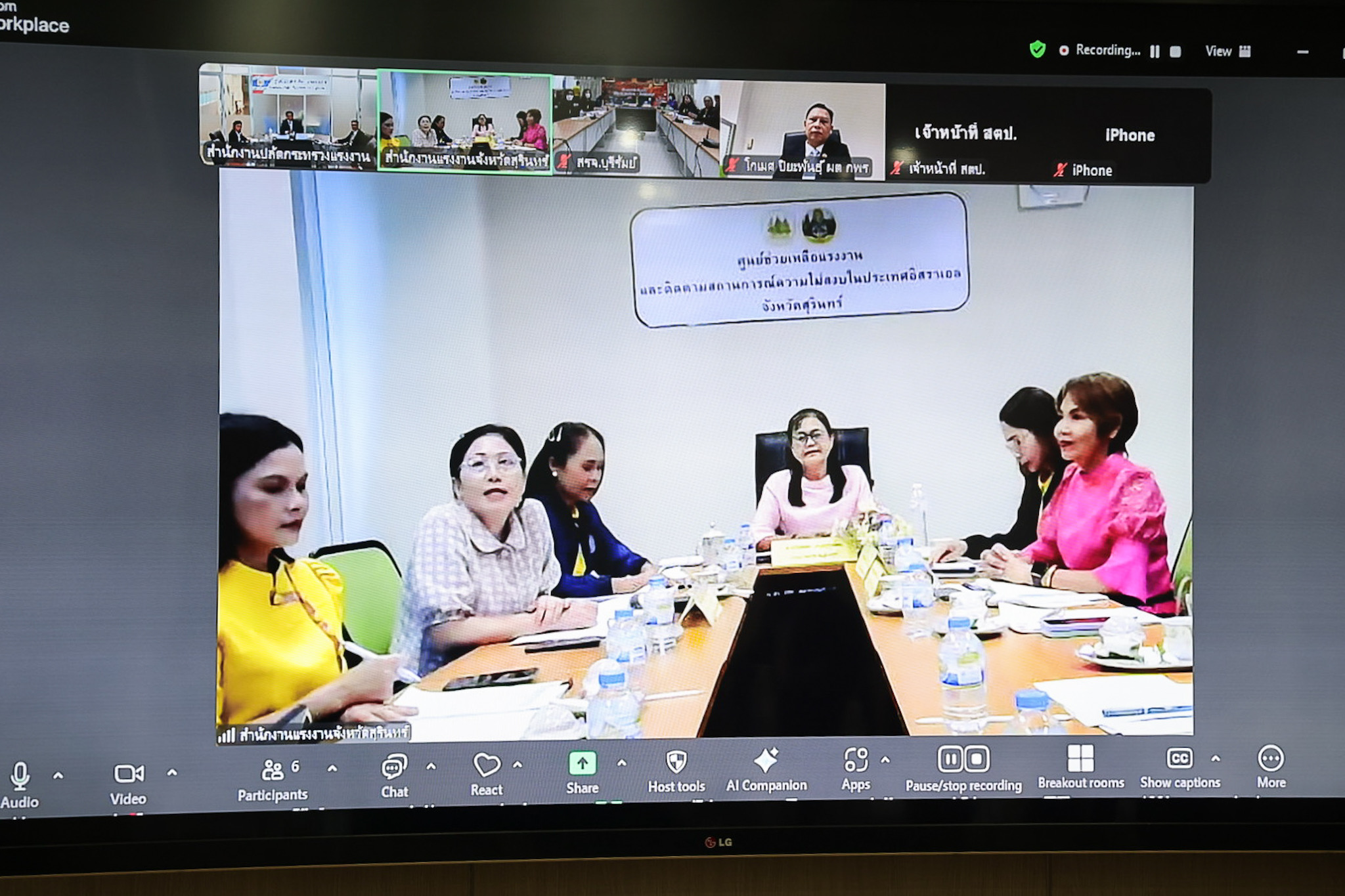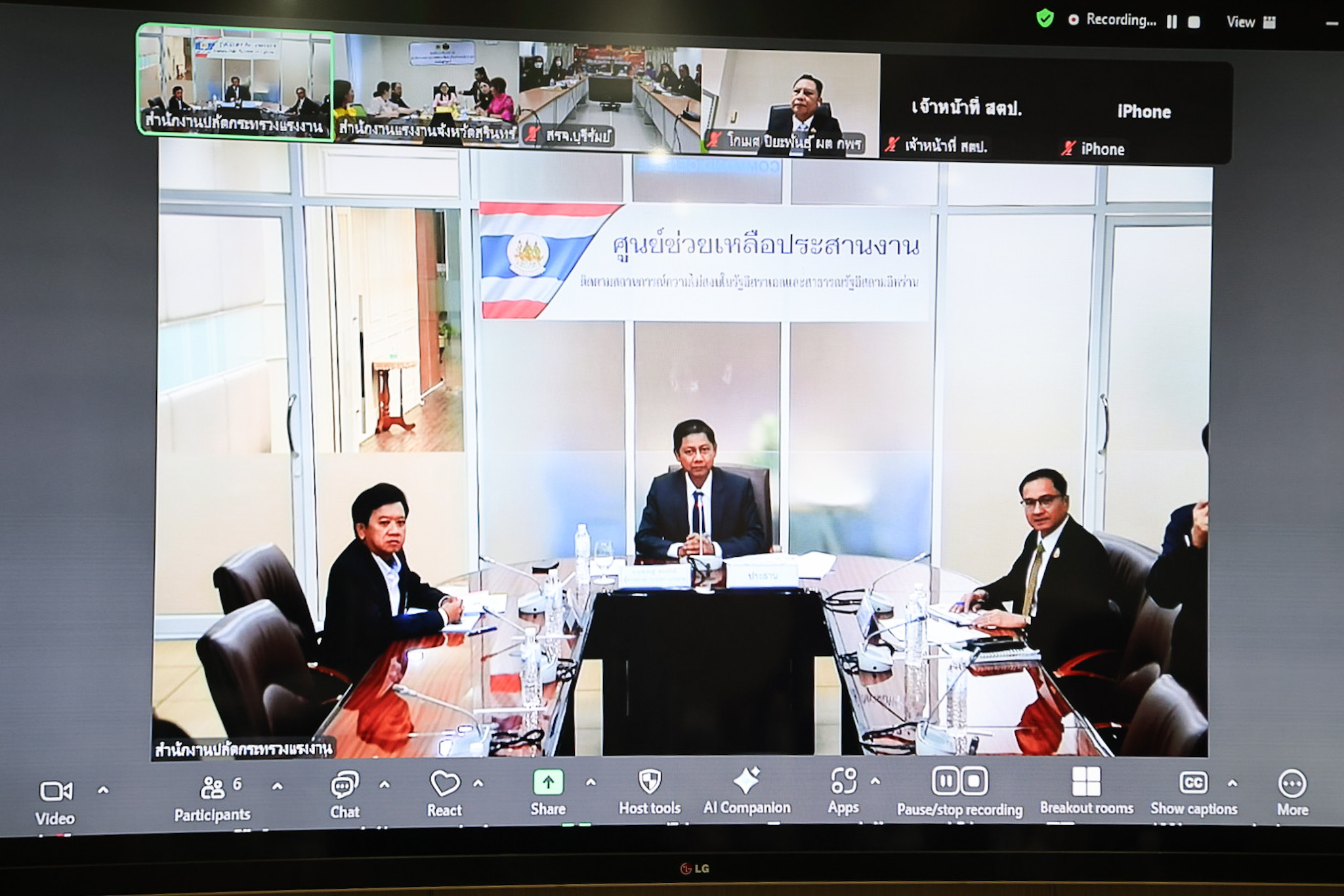 วันที่ 15 กรกฎาคม 2568 เวลา 09.30 น. นายบุญสงค์ ทัพชัยยุทธ์ ปลัดกระทรวงแรงงาน มอบหมายให้ นายพิเชษฐ์ ทองพันธ์ ผู้ตรวจราชการกระทรวงแรงงาน ตรวจติดตามและประเมินผลการปฏิบัติงานตามแผนการตรวจราชการของผู้ตรวจราชการกระทรวงแรงงาน ประจำปีงบประมาณ พ.ศ. 2568 รอบที่ 3 (Monitoring/Evaluation) เขตตรวจราชการที่ 13 จังหวัดบุรีรัมย์และจังหวัดสุรินทร์ ผ่านสื่ออิเล็กทรอนิกส์ (ระบบ Zoom Meeting) โดยมี นายขัตติยะ แพนเดช หัวหน้าผู้ตรวจราชการกรม กรมการจัดหางาน นายธุวานนท์ ดวงจักร์ ผู้ตรวจราชการกรม กรมสวัสดิการและคุ้มครองแรงงาน ร่วมด้วย ณ ห้องประชุมแสงสิงแก้ว ชั้น 5 อาคารกระทรวงแรงงาน