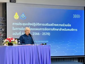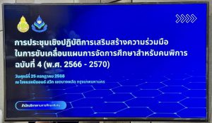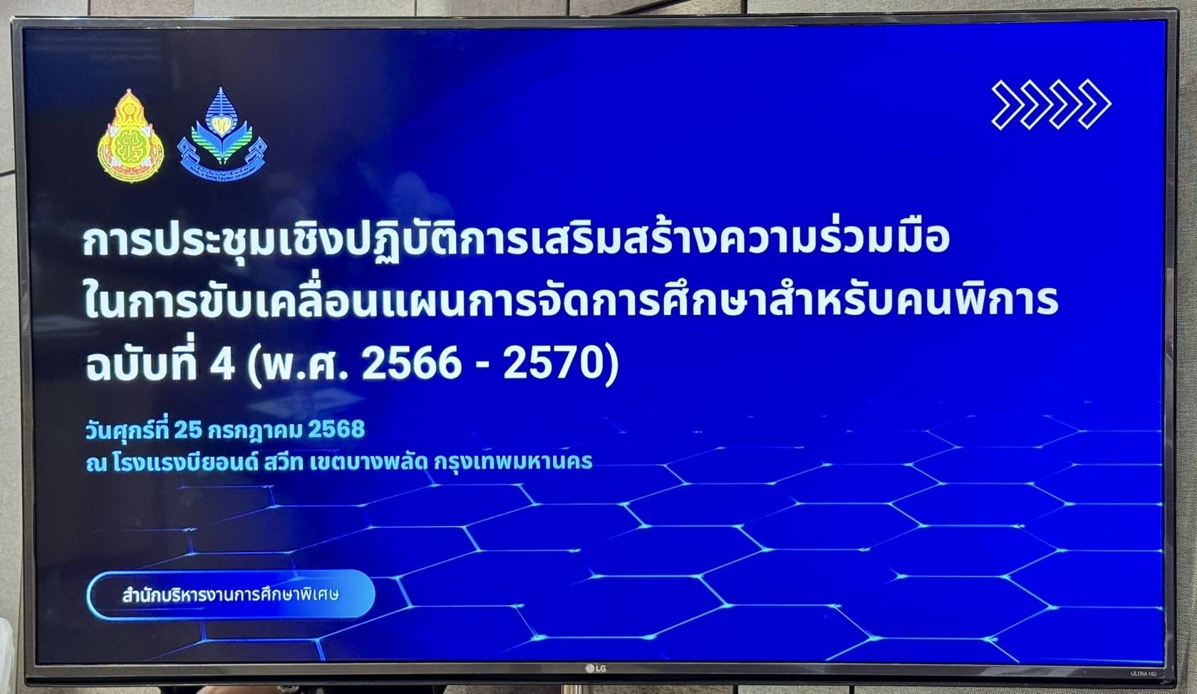 วันที่ 25 กรกฎาคม 2568 เวลา 09.30 น. นายบุญสงค์ ทัพชัยยุทธ์ ปลัดกระทรวงแรงงาน มอบหมายให้ นางสาวกรจิรัฏฐ์ พงจันทร์ศธร ผู้ช่วยปลัดกระทรวงแรงงาน เข้าร่วมการประชุมเชิงปฏิบัติการเสริมสร้างความร่วมมือในการขับเคลื่อนแผนการจัดการศึกษาสำหรับคนพิการ ฉบับที่ 4 (พ.ศ. 2566 – 2570) แนวคิดหลัก (Key message) “ขับเคลื่อนประเทศไทยไปข้างหน้าสู่การศึกษาเพื่อทุกคนอย่างเท่าเทียม” Move Forward Thailand : A Journey to Education for All เพื่อใช้เป็นกรอบทิศทางในการขับเคลื่อนการจัดการศึกษาสำหรับคนพิการของหน่วยงานในทุกสังกัดและทุกระบบอย่างเป็นรูปธรรม โดยมี ศาสตราจารย์วิริยะ นามศิริพงศ์พันธุ์ ประธานกิตติมศักดิ์มูลนิธิสากลเพื่อคนพิการ เป็นประธานการประชุม ณ โรงแรมบียอนด์สวีท กรุงเทพฯ
