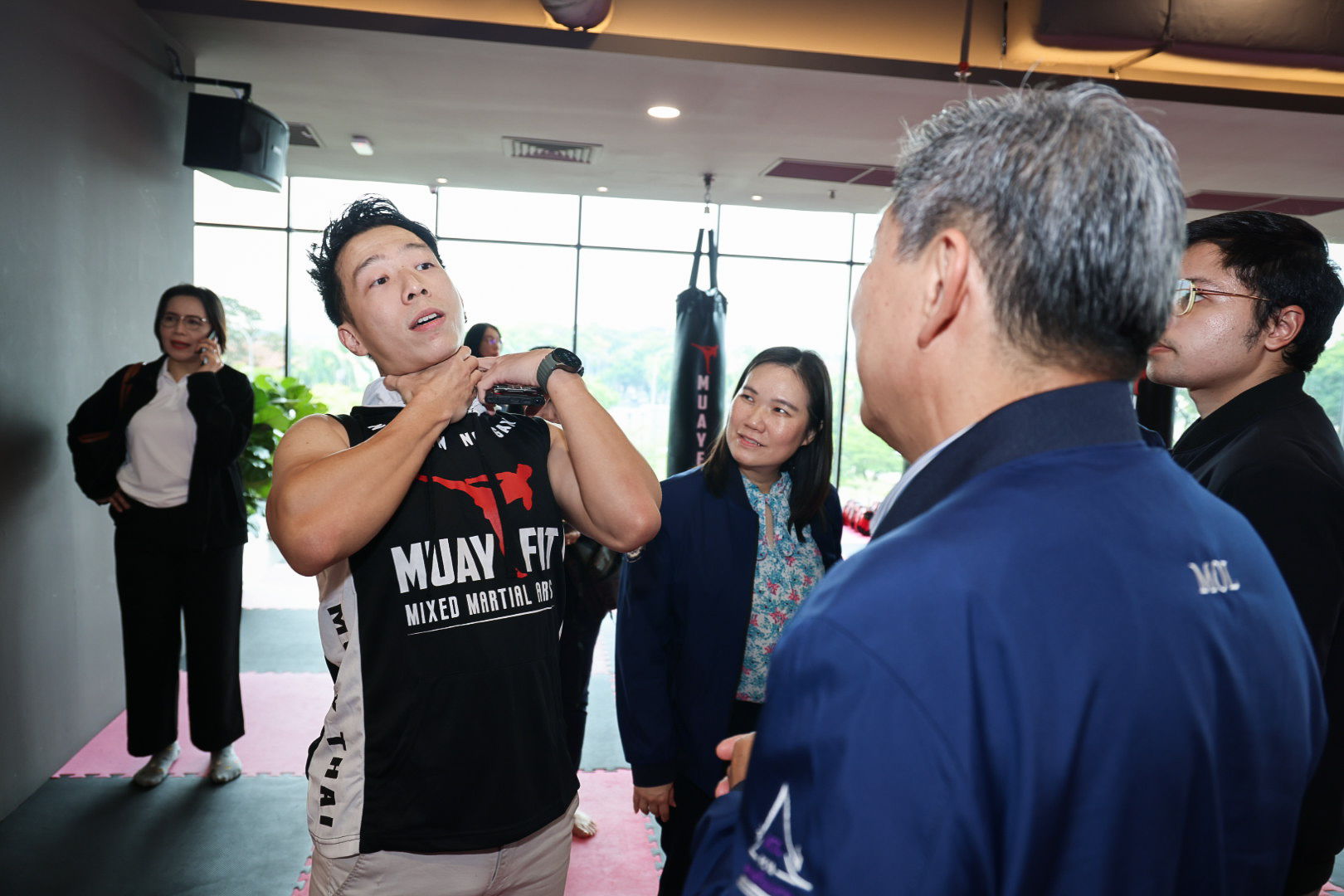 วันที่ 22 กรกฎาคม 2568 เวลา 17.00 น.ตามเวลาท้องถิ่นประเทศมาเลเซีย นายบุญสงค์ ทัพชัยยุทธ์ ปลัดกระทรวงแรงงาน มอบหมายให้ นายศักดินาถ สนธิศักดิ์โยธิน ผู้ช่วยปลัดกระทรวงแรงงาน พร้อมด้วย นายโกเมศ ปิยะพันธุ์ ผู้ตรวจราชการกรม กรมพัฒนาฝีมือแรงงาน นางสาวธารินี ลิ่มจุฬารัตน์ อัครราชทูตที่ปรึกษา (ฝ่ายแรงงาน) สำนักงานแรงงานในประเทศมาเลเซีย และคณะ ลงพื้นที่ เยี่ยมสถานประกอบการและพบปะเยี่ยมแรงงานไทย จำนวน 7 คน ซึ่งประกอบอาชีพเป็นครูมวยไทย ณ MuayFit (Top 10 MMA Gym in Asia) สาขา JAYA One, Petaling Jaya ประเทศมาเลเซีย