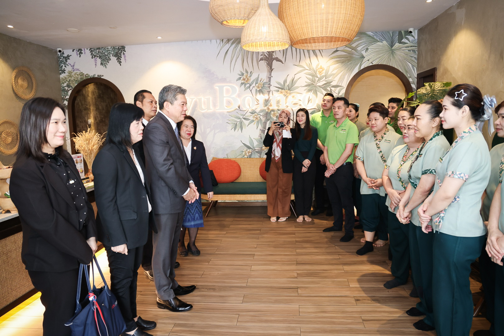 วันที่ 23 กรกฎาคม 2568 เวลา 10.00 น. ตามเวลาท้องถิ่นประเทศมาเลเซีย นายบุญสงค์ ทัพชัยยุทธ์ ปลัดกระทรวงแรงงาน มอบหมายให้ นายศักดินาถ สนธิศักดิ์โยธิน ผู้ช่วยปลัดกระทรวงแรงงาน พร้อมด้วย นายโกเมศ ปิยะพันธุ์ ผู้ตรวจราชการ กรมพัฒนาฝีมือแรงงาน นางสาวธารินี ลิ่มจุฬารัตน์ อัครราชทูตที่ปรึกษา (ฝ่ายแรงงาน) สำนักงานแรงงานในประเทศมาเลเซีย และคณะ ลงพื้นที่ เยี่ยมสถานประกอบการและเยี่ยมแรงงานไทย จำนวน 25 คน ณ บริษัท Ayu Borneo (ร้านนวดสปา) ณ Puteri Puchong ประเทศมาเลเซีย โดยผู้ช่วยปลัดกระทรวงแรงงาน ได้แนะนำให้แรงงานไทย ดาว์โหลดแอพพลิเคชั่น SMART TOEA เปิดการติดตามตำแหน่ง เพื่อให้ทราบพิกัดของแรงงาน ซึ่งสามารถดาวน์โหลดแอปพลิเคชัน ได้ทั้งจาก App Store หรือ Play Store ด้วย
