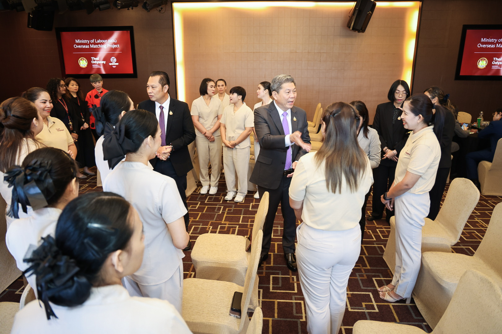 นายศักดินาถ สนธิศักดิ์โยธิน ผู้ช่วยปลัดกระทรวงแรงงาน เปิดเผยว่า งาน MOL Overseas Matching ประจำปี 2568 เพื่อขยายตลาดแรงงานไทยในประเทศมาเลเซียและเพิ่มศักยภาพแรงงานไทยในกลุ่มธรุกิจสปา ศูนย์สุขภาพและการนวด ในครั้งนี้ จัดขึ้นโดยสำนักงานแรงงานในประเทศมาเลเซีย โดยจะใช้เป็นกลไกในการขับเคลื่อนนโยบายกระทรวงแรงงานในการส่งเสริมการมีงานทำ พัฒนาทักษะฝีมือแรงงาน เพื่อรองรับตลาดแรงงานที่มีการเปลี่ยนแปลงในอนาคต โดยเป็นการจับคู่สถานประกอบการที่ต้องการแรงงาน กับบริษัทจัดหางานของไทยที่ส่งแรงงานไทยมาทำงานในต่างประเทศ งานครั้งนี้ เป็นการเปิดโอกาส ให้ผู้แทนภาครัฐประเทศไทยประกอบด้วย สำนักงานปลัดกระทรวงแรงงาน สำนักงานแรงงานไทยในประเทศมาเลเซีย และกรมการจัดหางาน ผู้แทนหน่วยงานเอกชนประเทศมาเลเซีย ได้แก่ บริษัท ไทยออดิสซี่ จำกัด บริษัท ฉี จำกัด และสมาคมกลุ่มธุรกิจสปา ศูนย์สุขภาพและการนวด ประเทศมาเลเซีย และ ผู้แทนบริษัทจัดหางานไทย ได้แลกเปลี่ยนข้อมูลด้านแรงงาน รวมทั้งความต้องการที่สามารถต่อยอดความร่วมมือระหว่างกัน รวมทั้ง สร้างความเชื่อมั่นให้นายจ้างว่าการจ้างแรงงานไทยผ่านระบบของรัฐนั้น มีความปลอดภัย โปร่งใส และมีคุณภาพ ด้วย