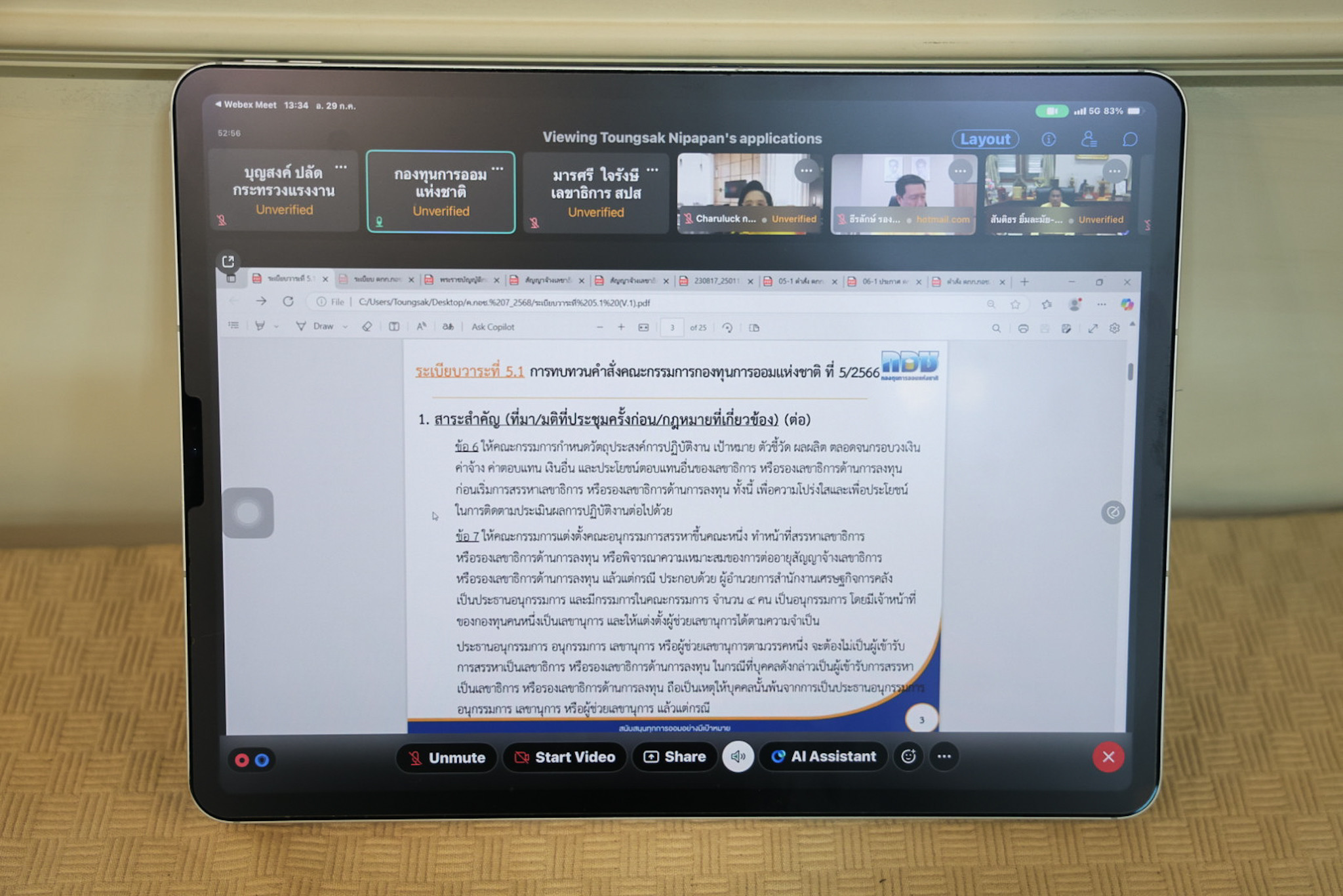 สำหรับการประชุมดังกล่าวที่ประชุมได้พิจารณาการทบทวนคำสั่งคณะกรรมการกองทุนการออมแห่งชาติ ที่ 5/2566 เรื่อง แต่งตั้งคณะอนุกรรมการสรรหาเลขาธิการคณะกรรมการกองทุนการออมแห่งชาติหรือรองเลขาธิการคณะกรรมการกองทุนการออมแห่งชาติ ด้านการลงทุน การเสนอแต่งตั้งที่ปรึกษาคณะอนุกรรมการกฎหมาย กองทุนการออมแห่งชาติ และ การทบทวนแผนปฏิบัติการ และแผนการใช้จ่ายงบประมาณประจำปี พ.ศ. 2568 รอบ 6 เดือน