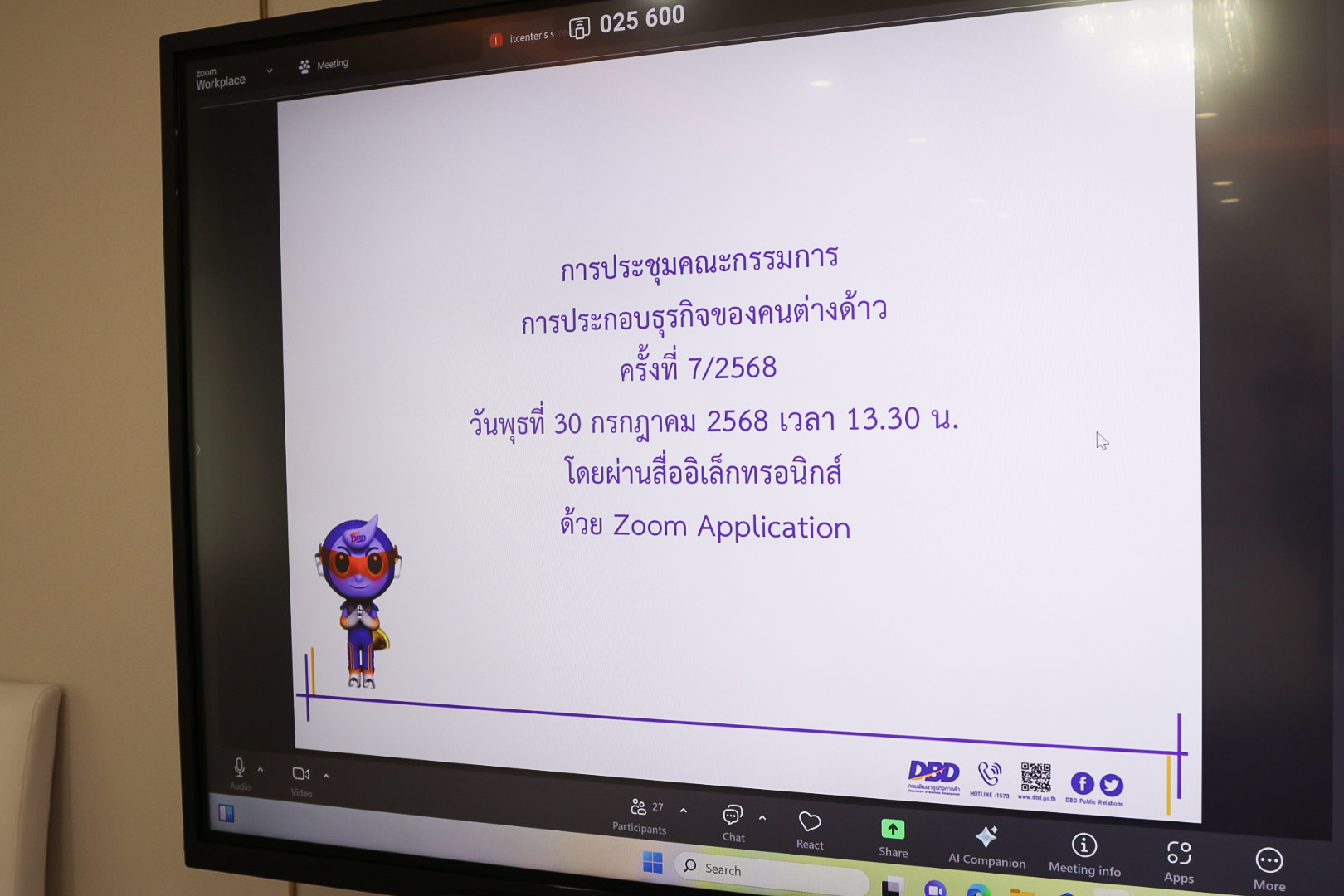 วันที่ 30 กรกฎาคม 2568 เวลา 13.30 น. นายบุญสงค์ ทัพชัยยุทธ์ ปลัดกระทรวงแรงงาน เข้าร่วมการประชุมคณะกรรมการการประกอบธุรกิจของคนต่างด้าว ครั้งที่ 7 ผ่านสื่ออิเล็กทรอนิกส์ โดยมีหน่วยงานที่เกี่ยวข้อง เข้าร่วมประชุมด้วย ณ ห้องประชุมปลัดกระทรวงแรงงาน ชั้น 7 อาคารกระทรวงแรงงาน