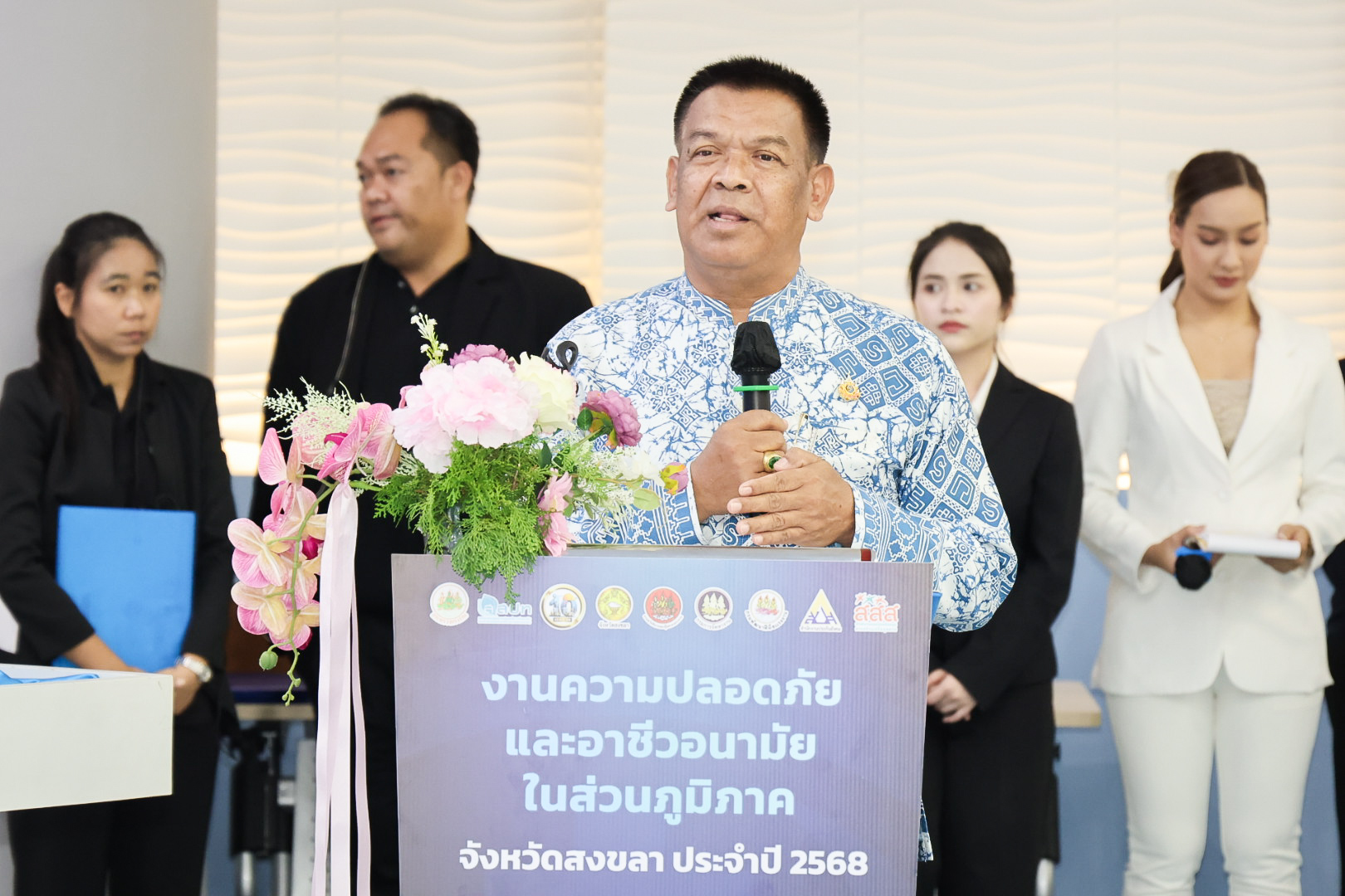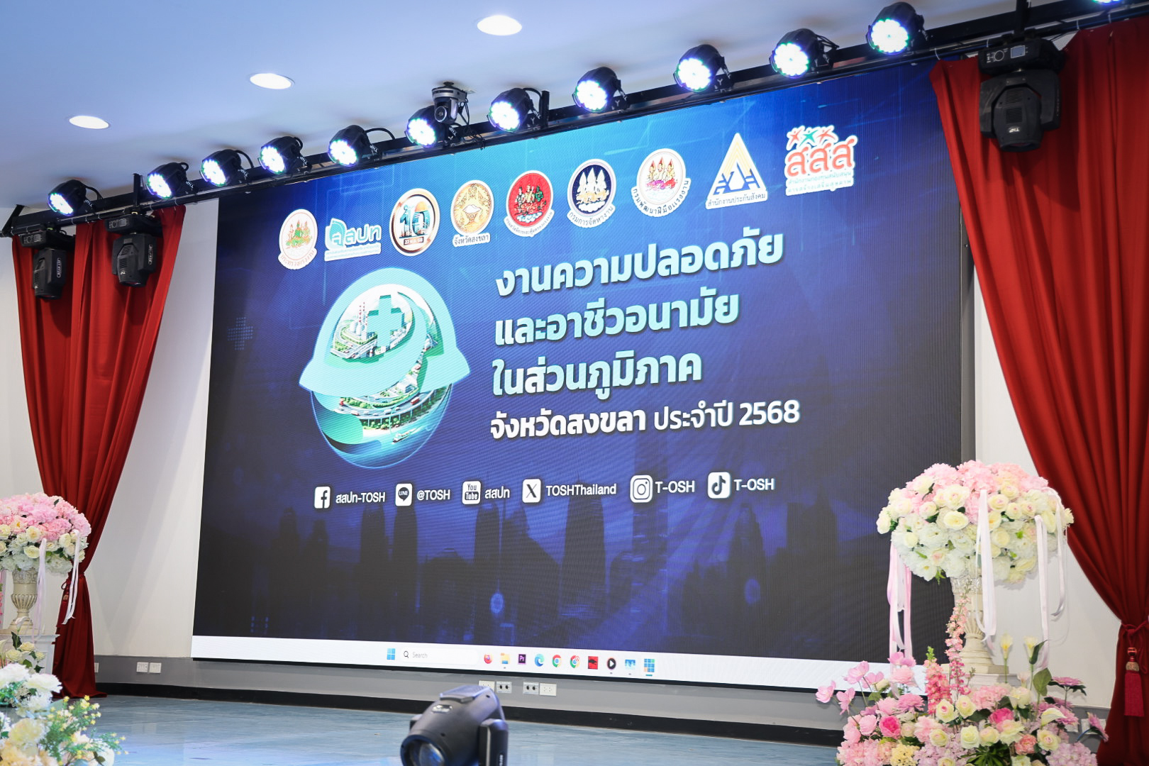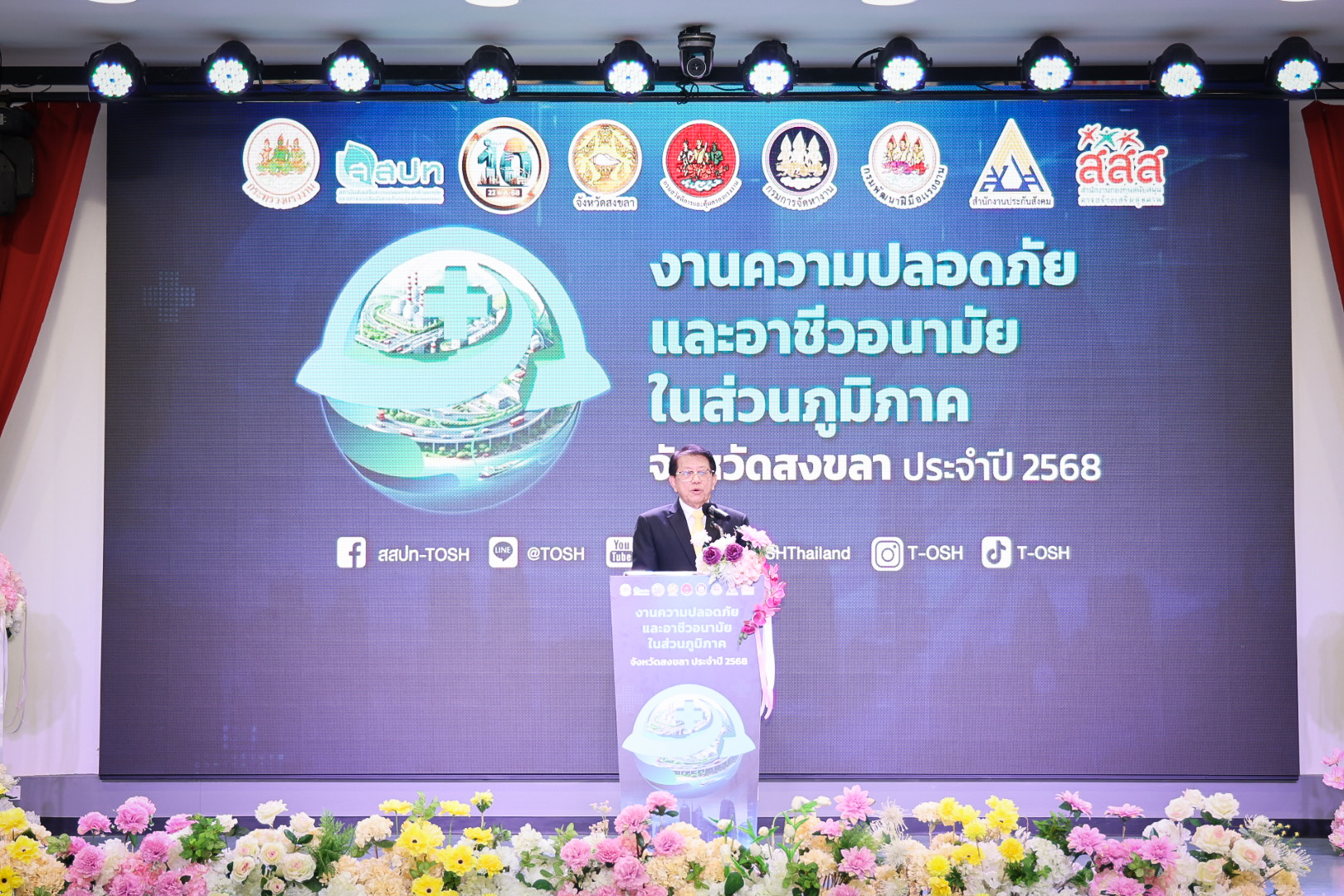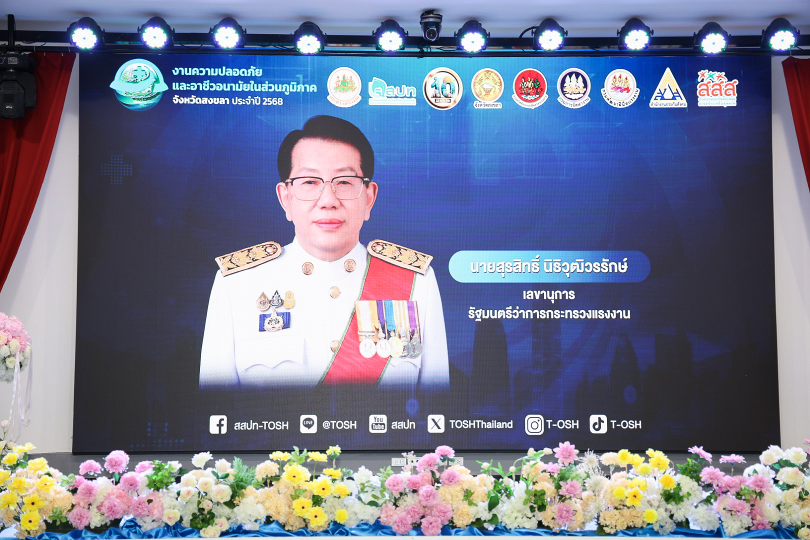 วันที่ 6 สิงหาคม 2568 เวลา 10.00 น. นายพงศ์กวิน จึงรุ่งเรืองกิจ รัฐมนตรีว่าการกระทรวงแรงงาน มอบหมายให้ นายสุรสิทธิ์ นิธิวุฒิวรรักษ์ เลขานุการรัฐมนตรีว่าการกระทรวงแรงงาน เป็นประธานในพิธีเปิดงาน “ความปลอดภัยและอาชีวอนามัยในส่วนภูมิภาค จังหวัดสงขลา ประจำปี 2568” ณ มหาวิทยาลัยเทคโนโลยีราชมงคลศรีวิชัย วิทยาเขตสงขลา จ.สงขลา เพื่อผลักดันให้เกิดวัฒนธรรมความปลอดภัยในพื้นที่ภาคใต้ ซึ่งยังเผชิญความเสี่ยงในหลายมิติ โดยมี นายจิรวัตร์ มณีโชติ รองผู้ว่าราชการจังหวัดสงขลา นายนันทชัย ปัญญาสุรฤทธิ์ ผู้อำนวยการสถาบันส่งเสริมความปลอดภัย อาชีวอนามัย และสภาพแวดล้อมในการทำงาน หรือ สสปท. พร้อมด้วยหัวหน้าส่วนราชการสังกัดกระทรวงแรงงานจังหวัดสงขลา ร่วมให้การต้อนรับ