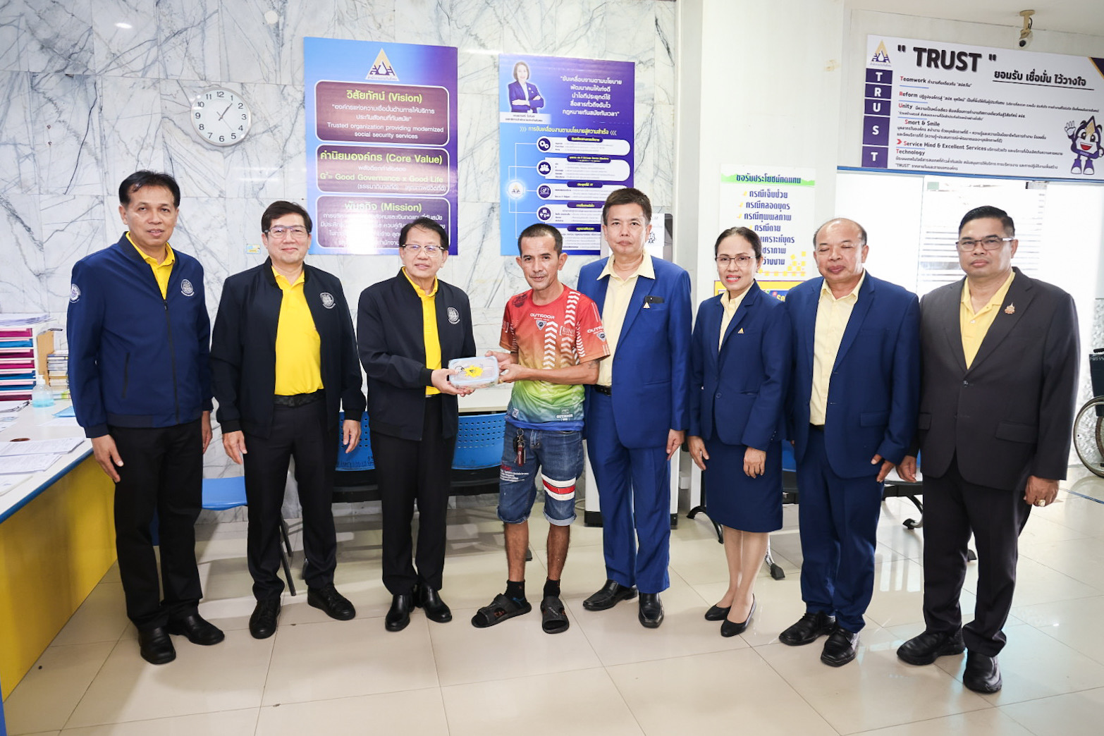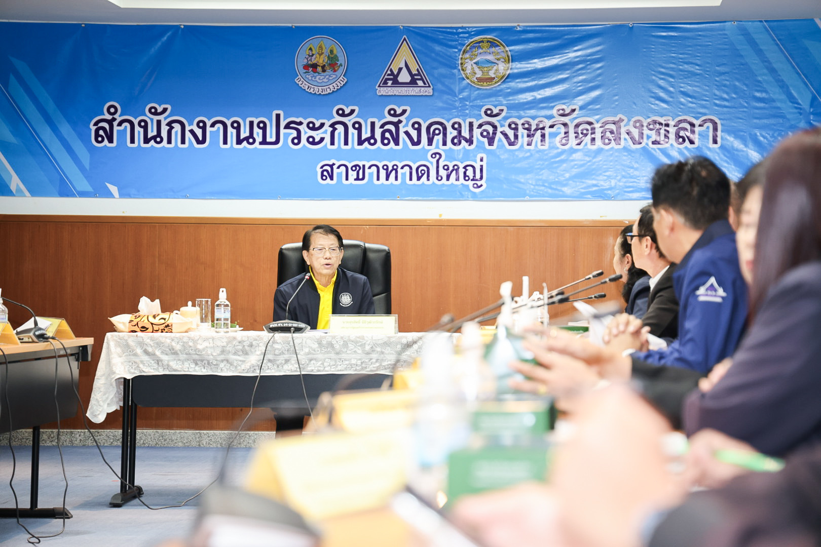 ในการนี้ก่อนเริ่มการประชุม เลขานุการรัฐมนตรีว่าการกระทรวงแรงงาน ได้มอบของที่ระลึกให้แก่ผู้ที่มาใช้บริการสำนักงานประกันสังคมจังหวัดสงขลา สาขาหาดใหญ่ อีกด้วย