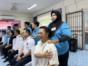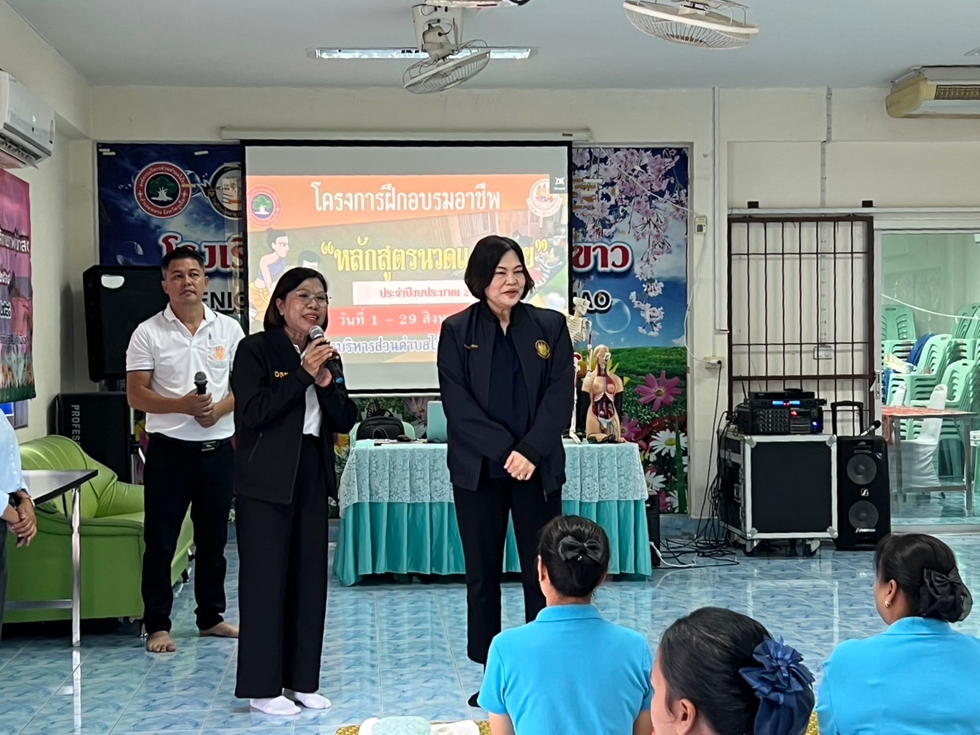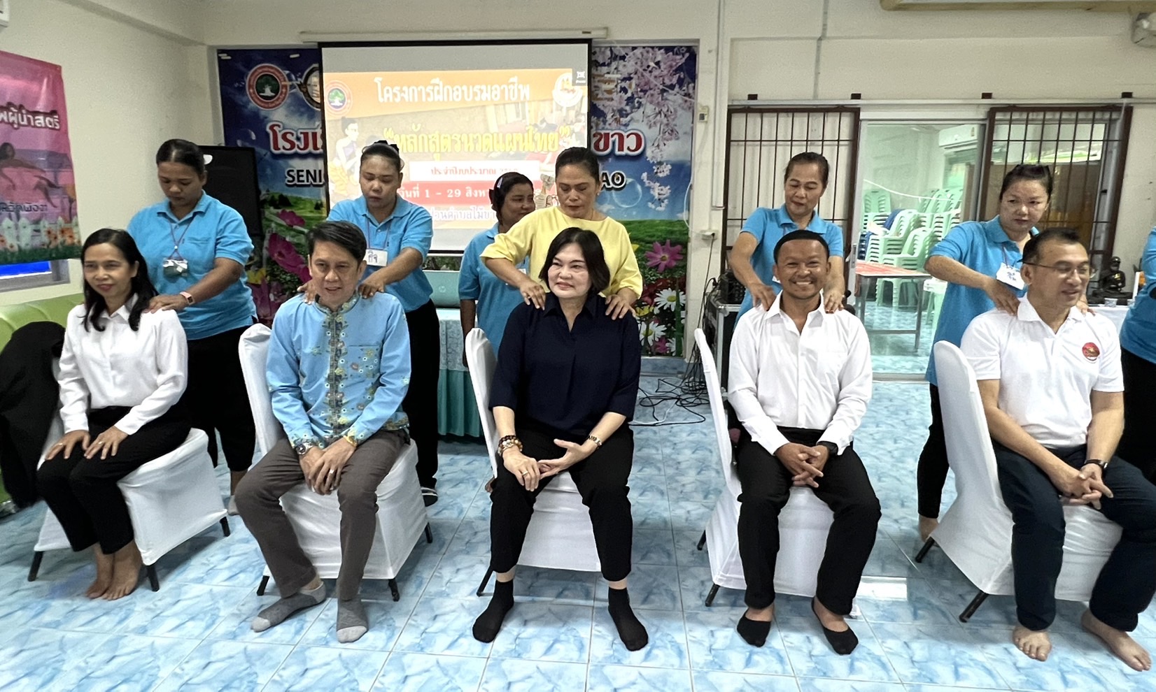 วันที่ 15 สิงหาคม 2568 นายบุญสงค์ ทัพชัยยุทธ์ ปลัดกระทรวงแรงงาน มอบหมายให้ นางสาวบุณยวีร์ ไขว้พันธุ์ หัวหน้าผู้ตรวจราชการกระทรวงแรงงาน ตรวจเยี่ยมการฝึกอบรมและให้โอวาทแก่ผู้เข้ารับการฝึกในโครงการฝึกอบรมบูรณาการร่วมภาครัฐและเอกชน การฝึกอบรมยกระดับฝีมือแรงงาน หลักสูตรนวดไทยเพื่อสุขภาพ จำนวน 150 ชั่วโมง ฝึกอบรมระหว่าง 1 – 29 สิงหาคม 2568 โดยบูรณาการร่วมกับ องค์การบริหารส่วนตำบลไม้ขาว จัดฝึกอบรมให้กับแรงงานนวดในพื้นที่ตำบลไม้ขาว จำนวนผู้ฝึกอบรม 20 คน ณ ศูนย์ผู้สูงอายุตำบลไม้ขาว อำเภอถลาง จังหวัดภูเก็ต ซึ่งเป็นโครงการที่ทางสถาบันพัฒนาฝีมือแรงงาน 21 ภูเก็ต