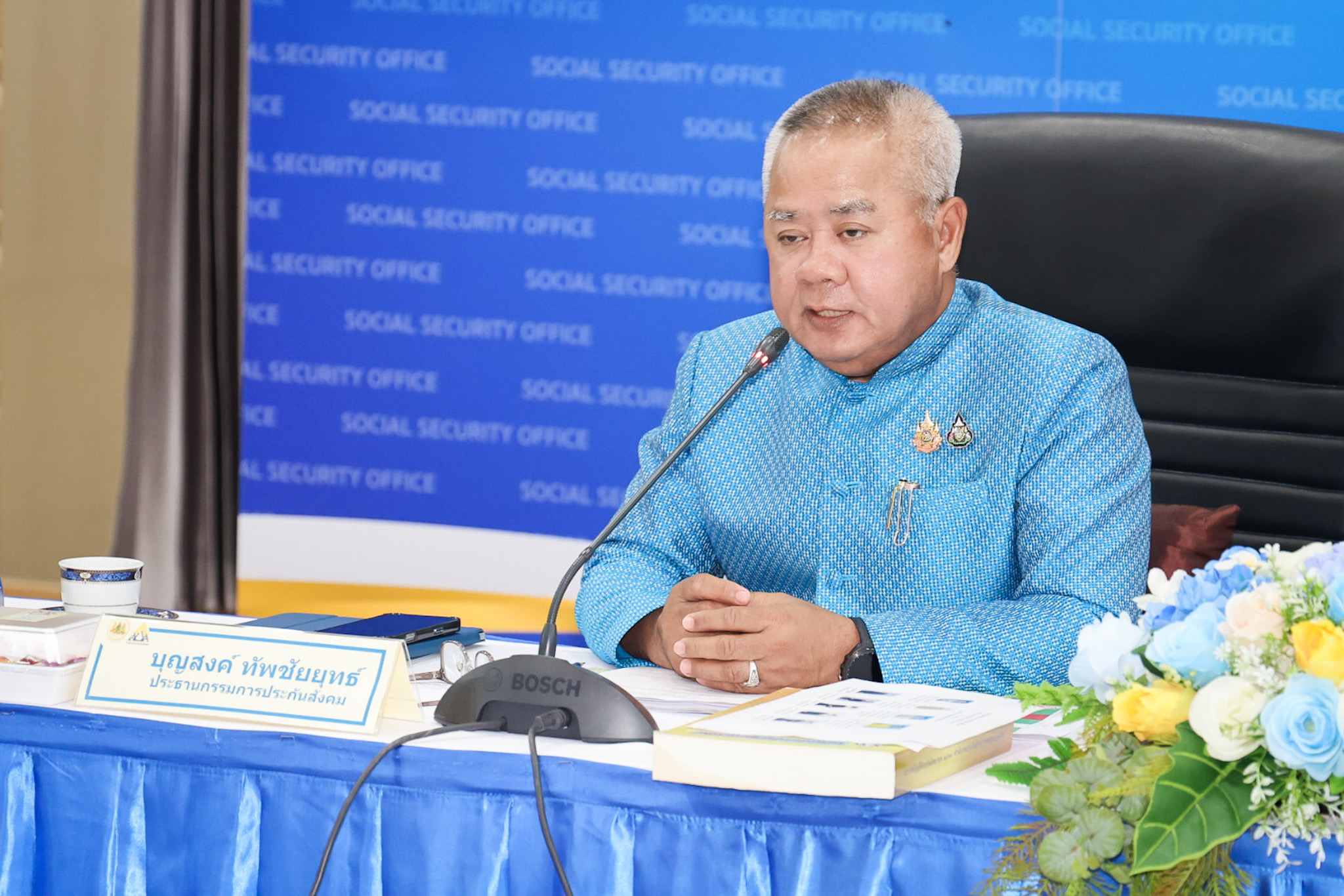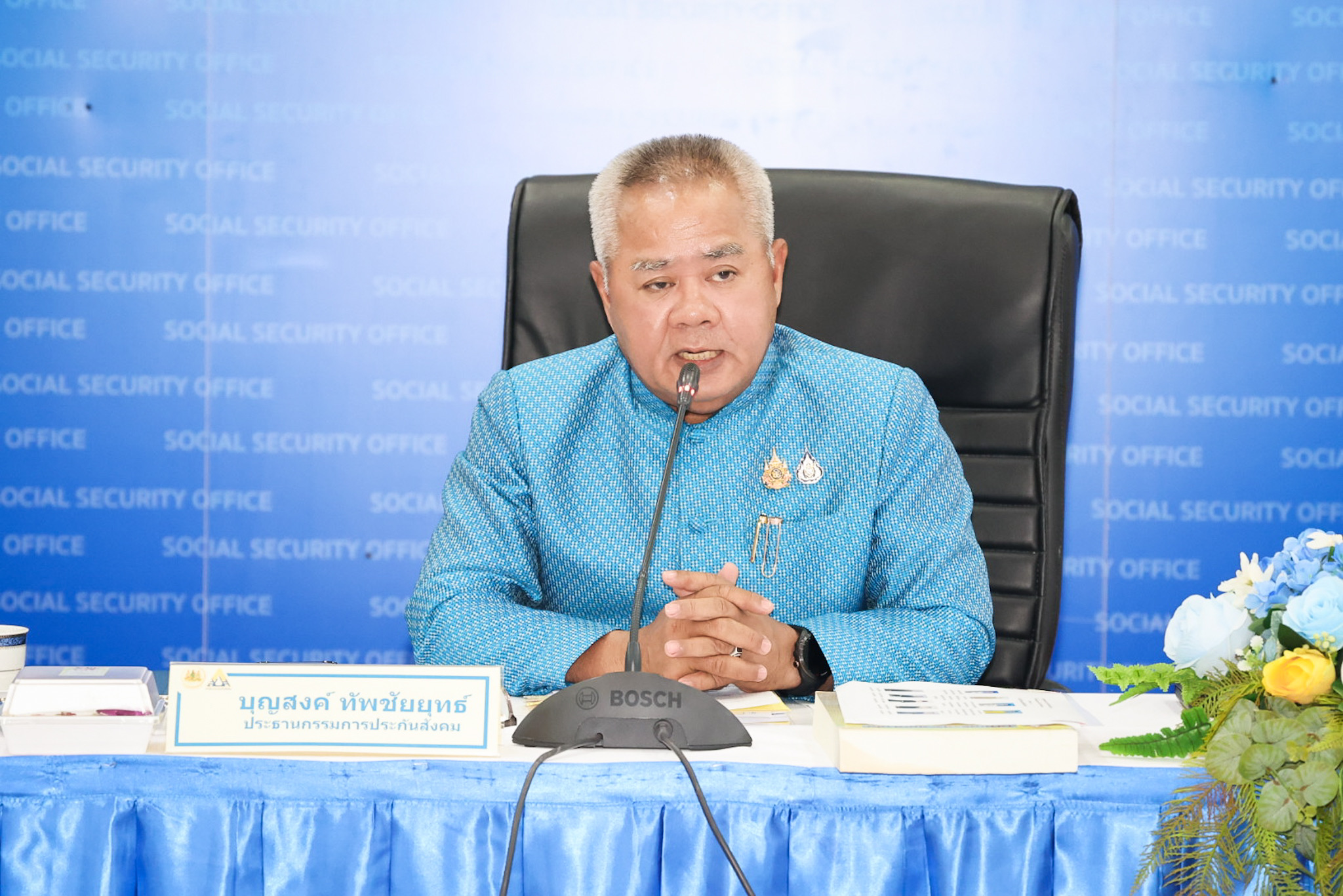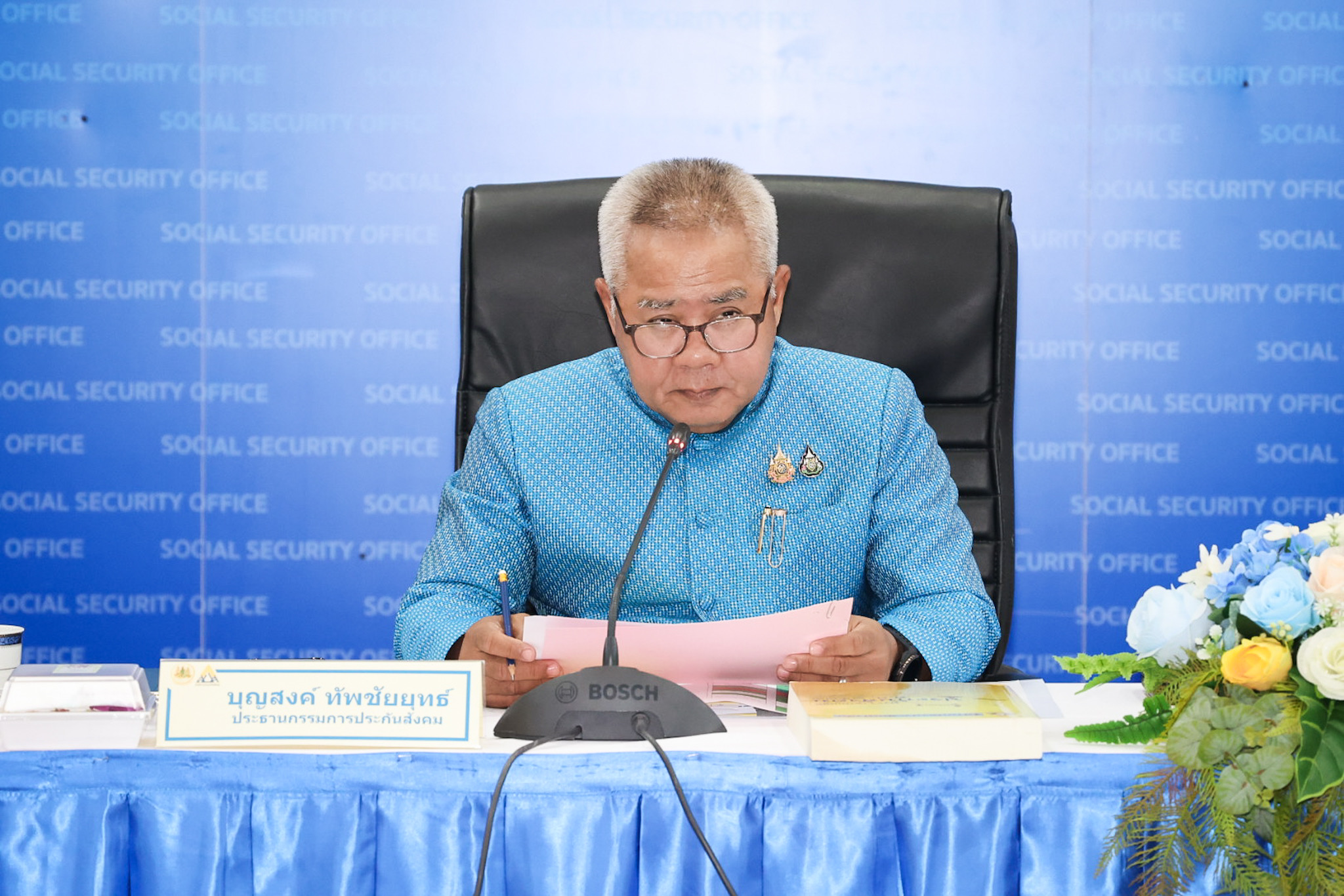 วันที่ 19 สิงหาคม 2568 เวลา 14.00 น. นายบุญสงค์ ทัพชัยยุทธ์ ปลัดกระทรวงแรงงาน เป็นประธานการประชุมคณะกรรมการประกันสังคม (วาระพิเศษ) ชุดที่ 14 ครั้งที่ 18/2568 ณ ห้องประชุมสมเกียรติ ฉายะศรีวงศ์ ชั้น 4 อาคารอเนกประสงค์ สำนักงานประกันสังคม และด้วยวิธีการประชุมผ่านสื่ออิเล็กทรอนิกส์