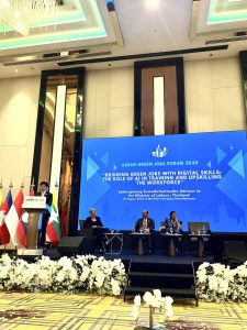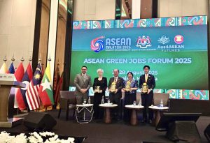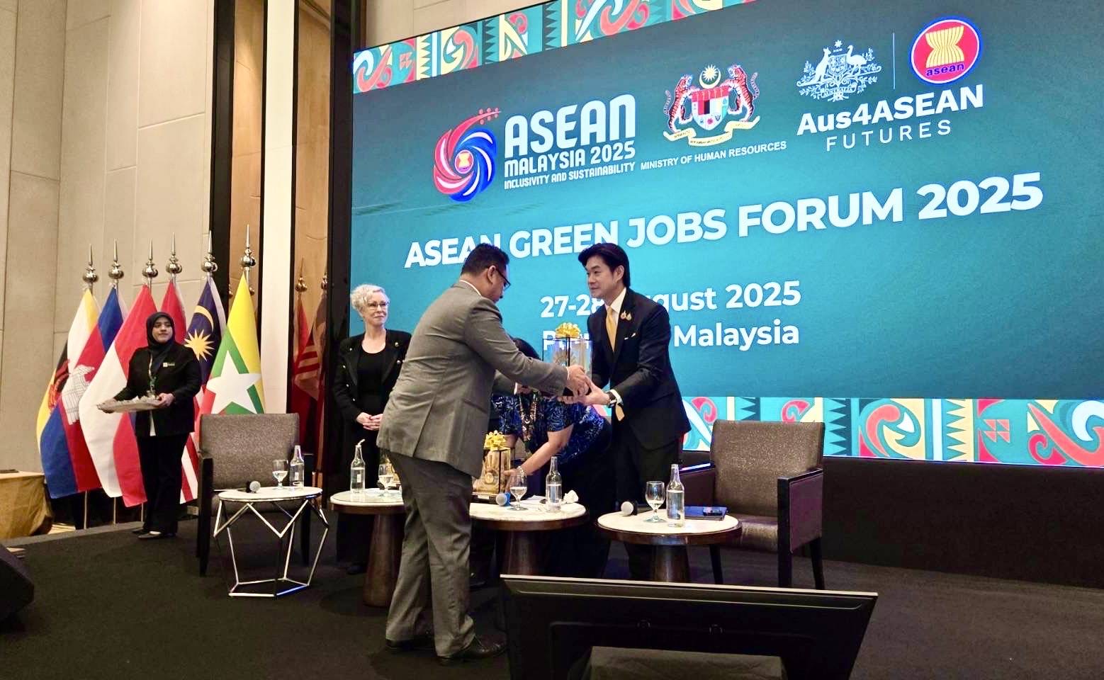 สำหรับการประชุมด้านงานสีเขียวอาเซียน (ASEAN Green Jobs Forum 2025: AGJF 2025) จัดขึ้นโดย กระทรวงทรัพยากรมนุษย์ ประเทศมาเลเซีย โดยได้รับความร่วมมือจากสำนักเลขาธิการอาเซียน และรัฐบาลประเทศออสเตรเลียในโครงการ Australia for ASEAN Futures (Aus4ASEAN Futures) เพื่อดำเนินโครงการการยกระดับการเปลี่ยนผ่านที่เป็นธรรมและครอบคลุมของอาเซียนสู่การจ้างงานสีเขียว (Advancing ASEAN’s Just and Inclusive Transition to Green Jobs) ซึ่งกำหนดเป้าหมายที่จะสร้างอาเซียนให้เป็นผู้นำระดับโลกในด้านการพัฒนาเศรษฐกิจที่ยั่งยืนและครอบคลุม ด้วยการส่งเสริมความร่วมมือระดับภูมิภาค การแก้ไขปัญหาช่องว่างด้านทักษะสีเขียว และการสร้างนโยบายที่เอื้อต่อการเติบโตของงานสีเขียว โดยการดำเนินการดังกล่าวจะช่วยผลักดันให้เกิดความเป็นกลางทางคาร์บอน ความยืดหยุ่นต่อสภาพภูมิอากาศ ความยืดหยุ่นของภูมิภาค และการเติบโตที่เสมอภาคทั่วทั้งภูมิภาค
