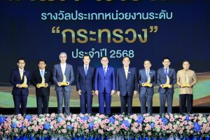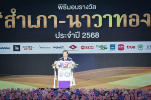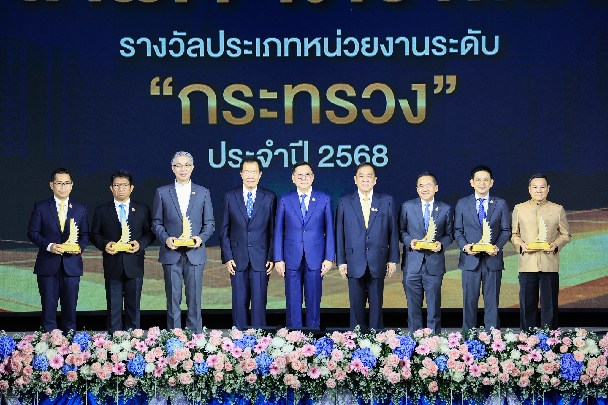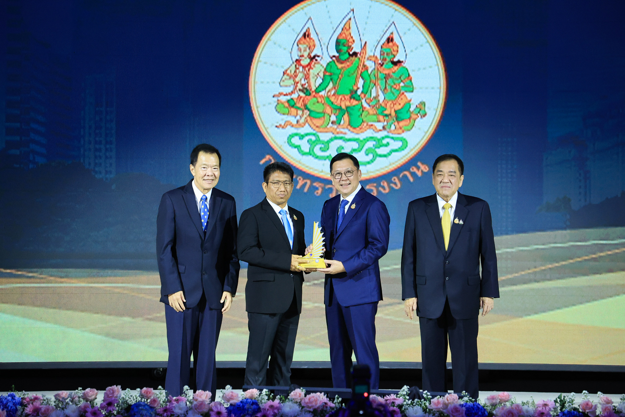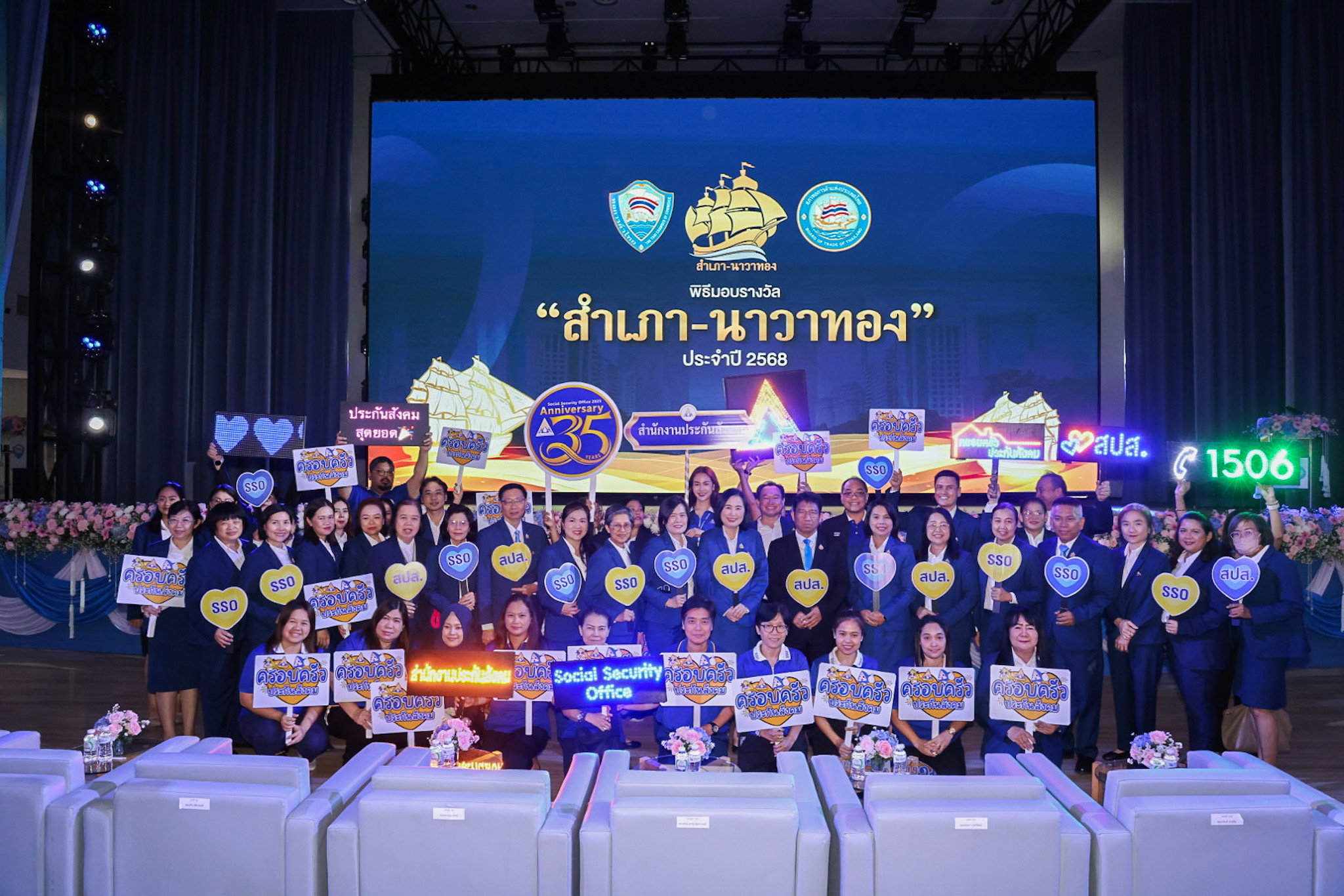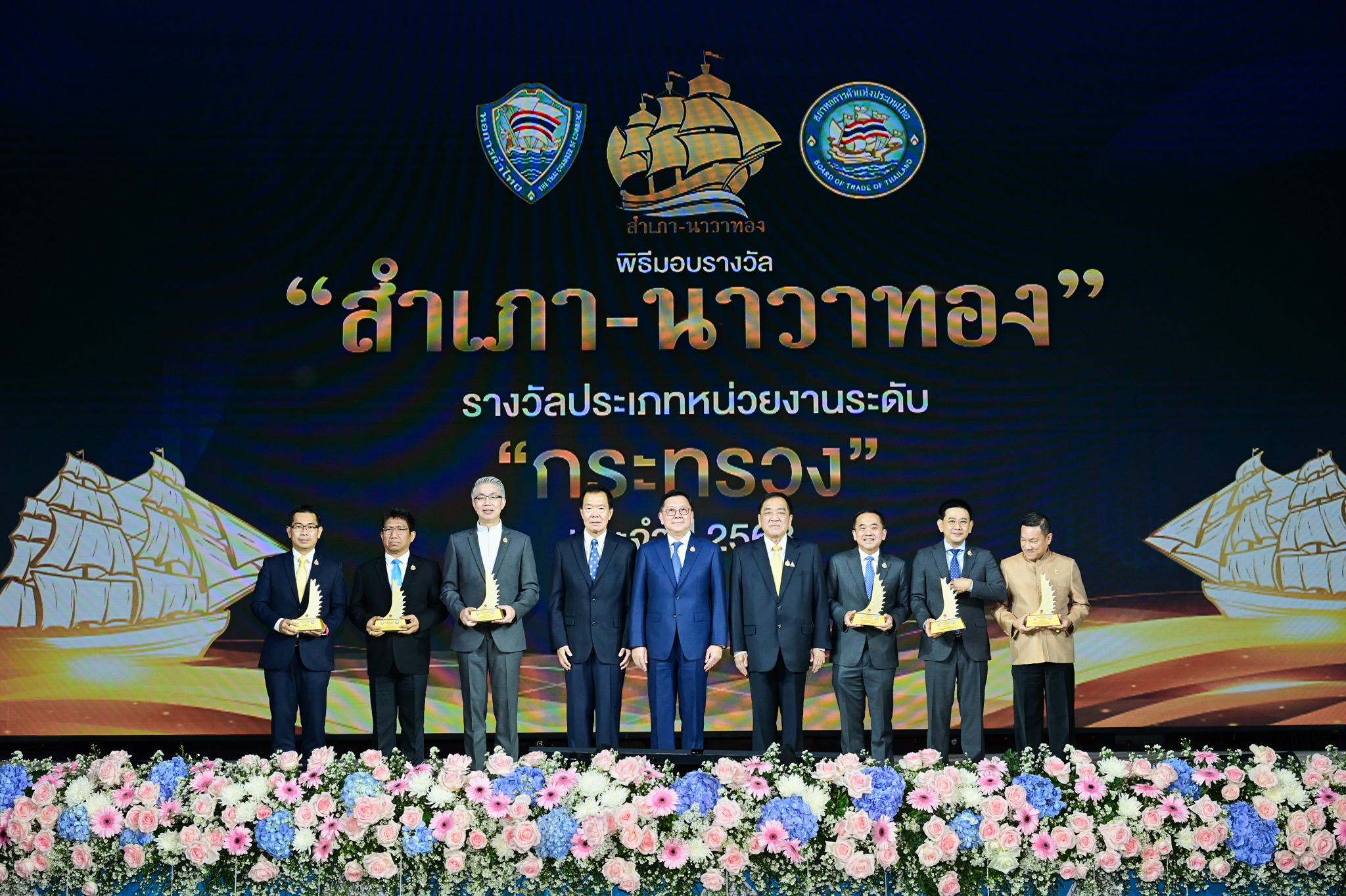 วันที่ 27 สิงหาคม 2568 เวลา 14.30 น. ว่าที่ร้อยตรี สมศักดิ์ พรหมดำ ผู้ตรวจราชการกระทรวงแรงงาน เป็นผู้แทนกระทรวงแรงงานรับมอบรางวัลสุดยอดหน่วยงานภาครัฐระดับกระทรวง ด้านการอำนวยความสะดวกภาคธุรกิจ รางวัล “สำเภา – นาวาทอง”ประจำปี 2568 โดยมี นายจตุพร บุรุษพัฒน์ รัฐมนตรีว่าการกระทรวงพาณิชย์ เป็นประธานมอบรางวัล ร่วมเป็นเกียรติในงาน ข้าราชการ และเจ้าหน้าที่สำนักงานปลัดกระทรวงแรงงาน ร่วมแสดงความยินดี ในการนี้ สำนักงานประกันสังคม กรมการจัดหางาน และกรมพัฒนาฝีมือแรงงาน ยังได้ร่วมรับมอบรางวัลสุดยอดหน่วยงานภาครัฐระดับกรมด้วย ณ หอประชุมใหญ่ อาคาร 15 มหาวิทยาลัยหอการค้าไทย ถนนวิภาวดี เขตดินแดง กรุงเทพมหานคร