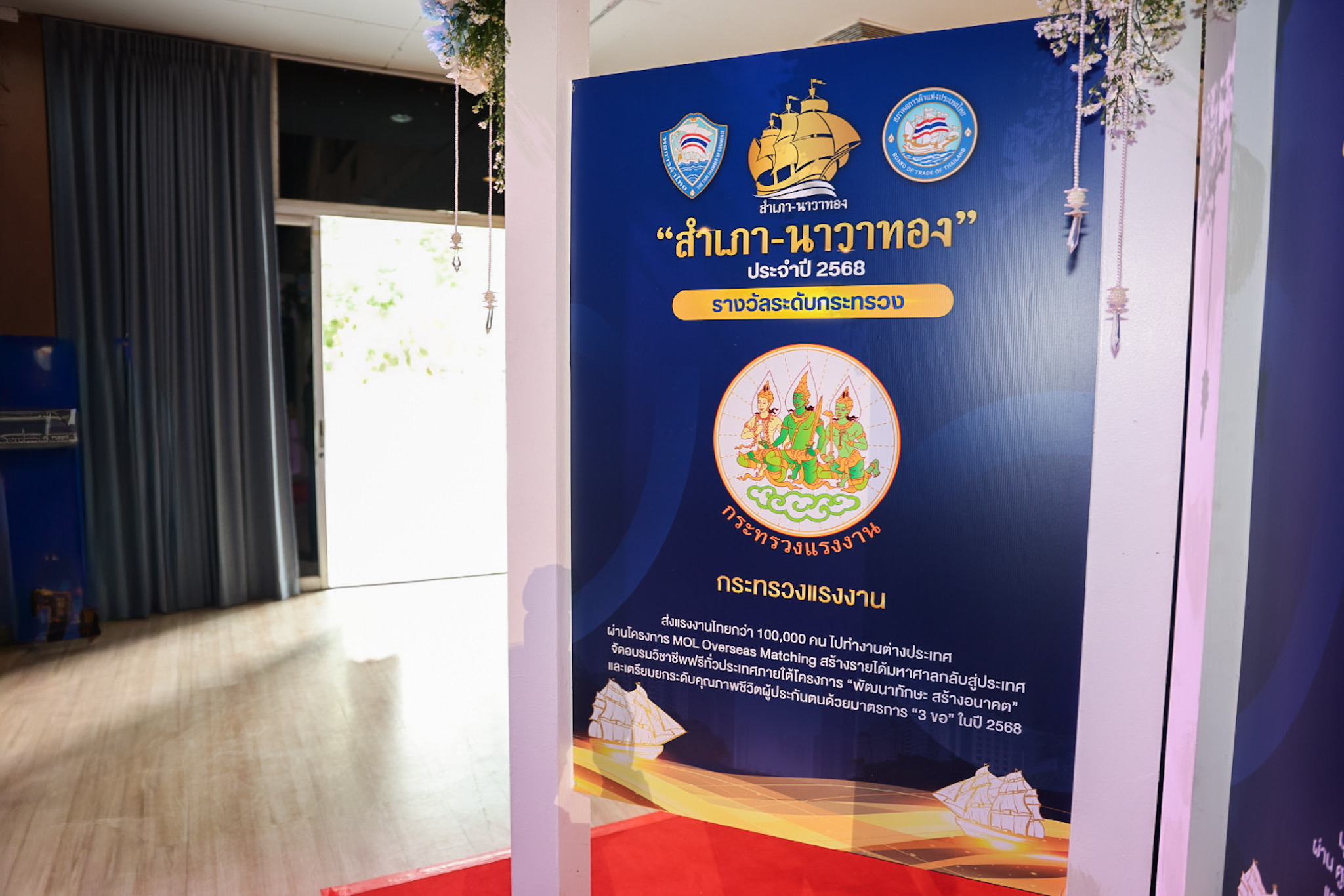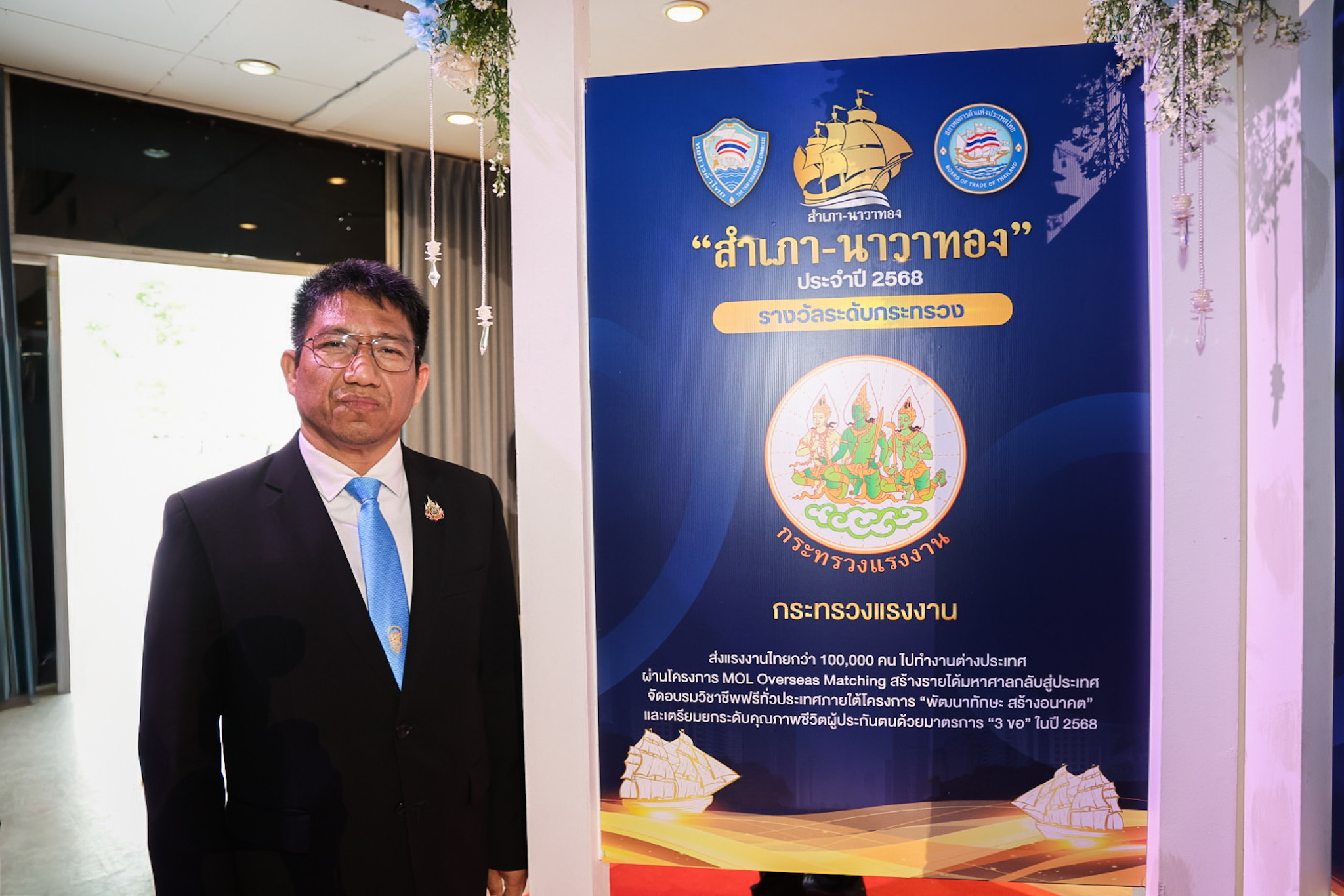 ว่าที่ร้อยตรี สมศักดิ์ พรหมดำ ผู้ตรวจราชการกระทรวงแรงงาน กล่าวว่า การมอบรางวัลสุดยอดหน่วยงานภาครัฐด้านการอำนวยความสะดวกภาคธุรกิจ รางวัล “สำเภา – นาวาทอง”ประจำปี 2568 ในครั้งนี้ จัดขึ้นโดยหอการค้าไทยและสภาหอการค้าแห่งประเทศไทย เป็นการคัดเลือกส่วนราชการที่ปรับปรุงกระบวนงานอย่างมีประสิทธิภาพ และลดอุปสรรคในการดำเนินธุรกิจอย่างเห็นผลเพื่อรับรางวัล เชิดชูเกียรติและประชาสัมพันธ์หน่วยงานที่ได้รับรางวัล และสร้างความร่วมมือและกระบวนการปรับปรุงแก้ไขกฎหมายกับหน่วยงานที่เกี่ยวข้อง โดยโล่รางวัลแบ่งเป็นรางวัลหน่วยงานระดับกระทรวง รางวัลหน่วยงานระดับกรม รางวัลหน่วยงานเพิ่มประสิทธิภาพกระบวนงาน(สำนัก/กอง) และรางวัลระดับภูมิภาค ซึ่งในส่วนของกระทรวงแรงงาน คณะกรรมการตัดสินรางวัลฯ ได้มีมติมอบรางวัลหน่วยงานระดับกระทรวงให้กระทรวงแรงงาน นอกจากนี้ ยังมีหน่วยงานในสังกัดกระทรวงแรงงาน ร่วมรับมอบรางวัลสุดยอดหน่วยงานภาครัฐระดับกรม ด้วย ได้แก่ กรมการจัดหางาน กรมพัฒนาฝีมือแรงงาน และสำนักงานประกันสังคม และรางวัลระดับกระบวนงาน 2 หน่วยงาน ได้แก่ กองพัฒนาระบบบริการจัดหางาน กรมการจัดหางาน และสำนักเสริมสร้างความมั่นคงแรงงานนอกระบบ สำนักงานประกันสังคม