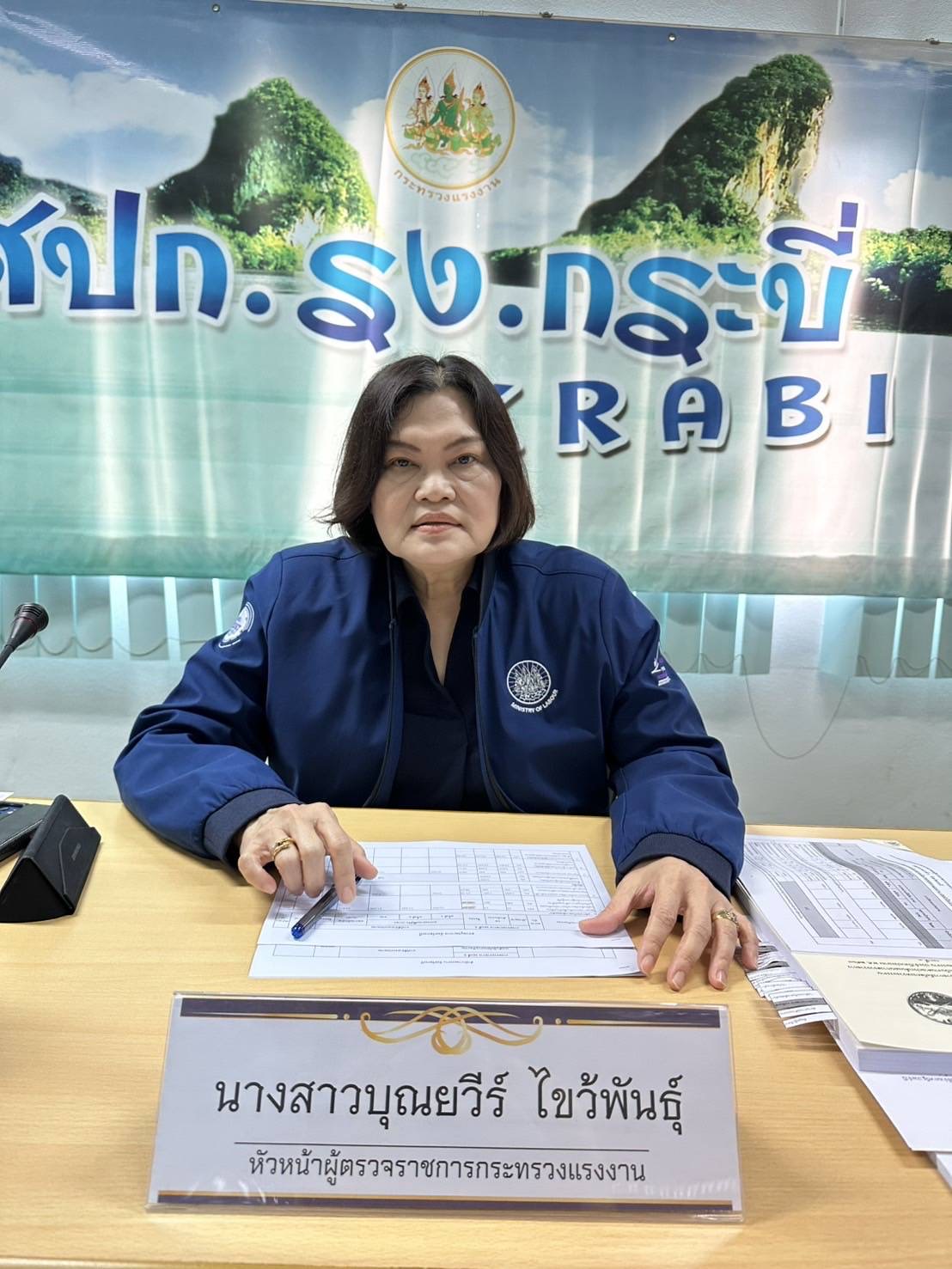 วันที่ 28 สิงหาคม 2568 นางสาวบุณยวีร์ ไขว้พันธุ์ หัวหน้าผู้ตรวจราชการกระทรวงแรงงาน เป็นประธานการประชุมหัวหน้าส่วนราชการสังกัดกระทรวงแรงงานจังหวัดกระบี่ พร้อมประชุมสำนักงานแรงงานจังหวัดกระบี่ ตามแผนการตรวจราชการกระทรวงแรงงาน ประจำปีงบประมาณ พ.ศ. 2568 รอบที่ 3 (Monitoring/Evaluation) ณ ห้องประชุมแรงงาน 4 จังหวัดกระบี่