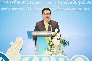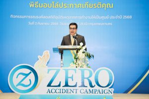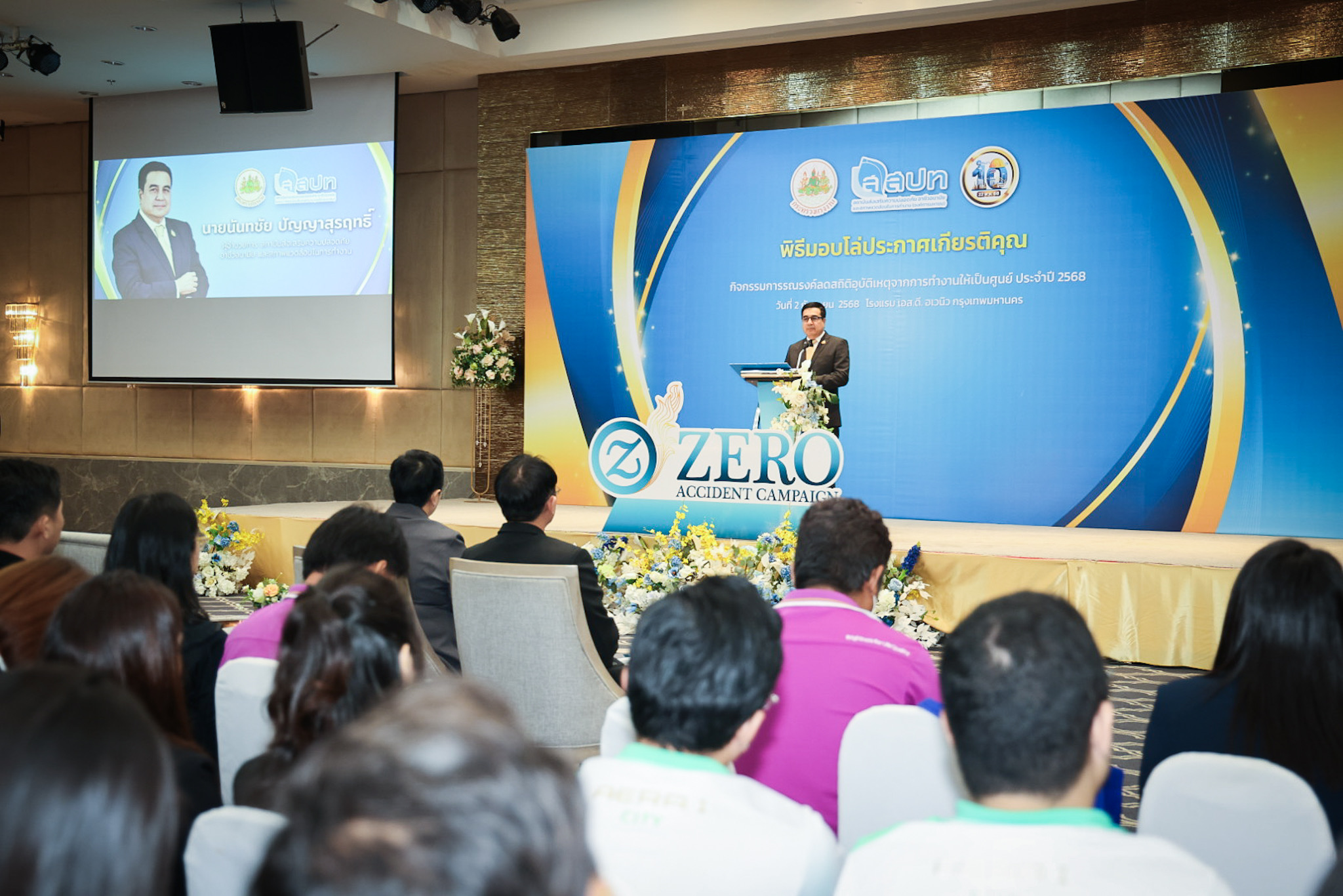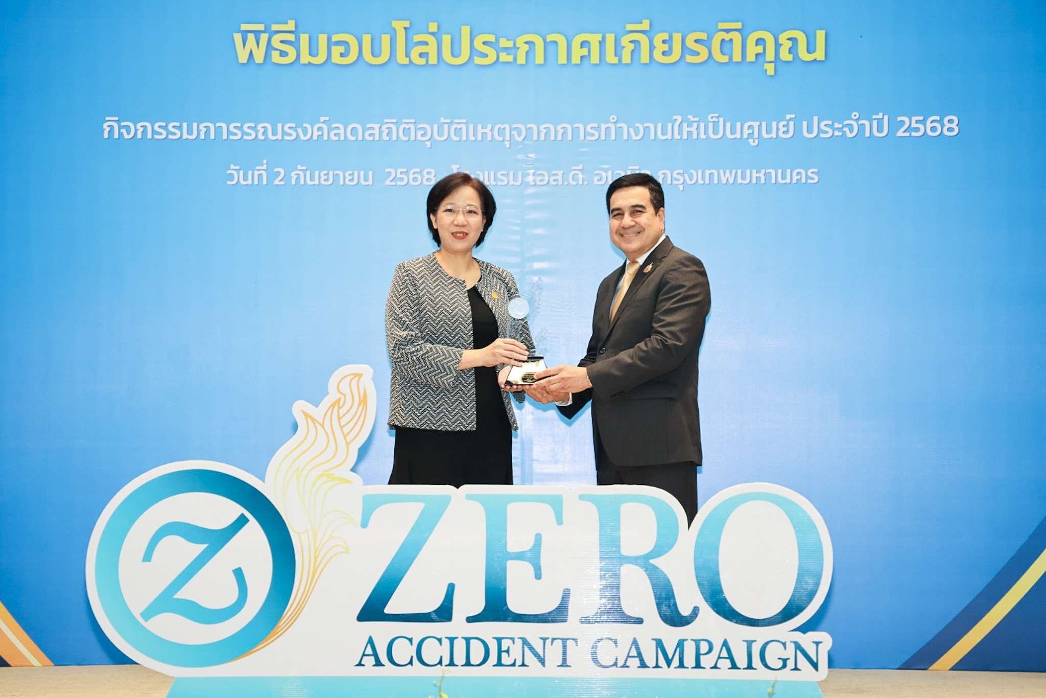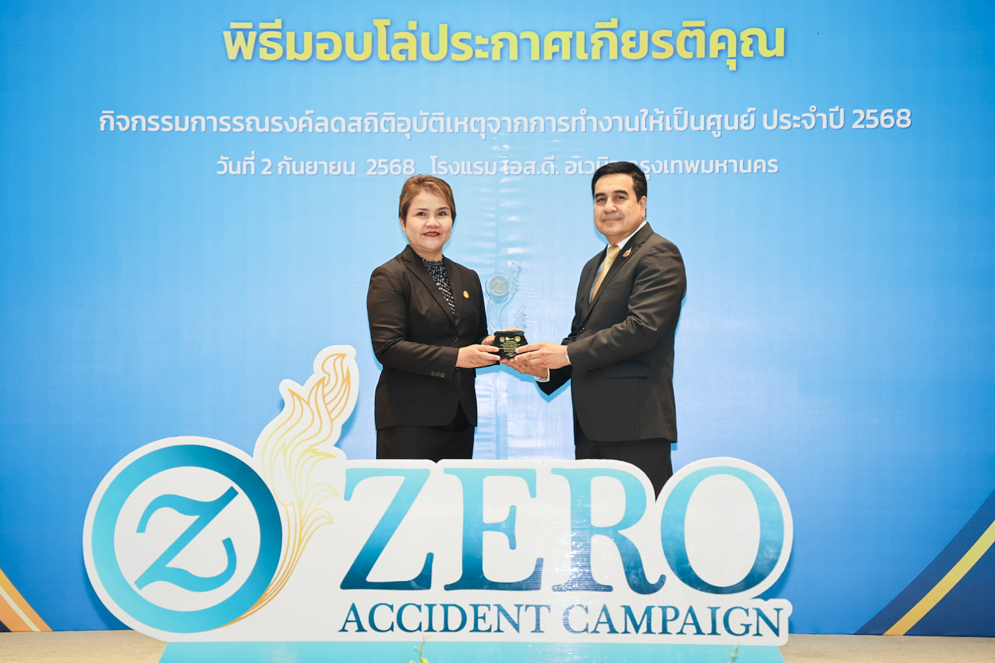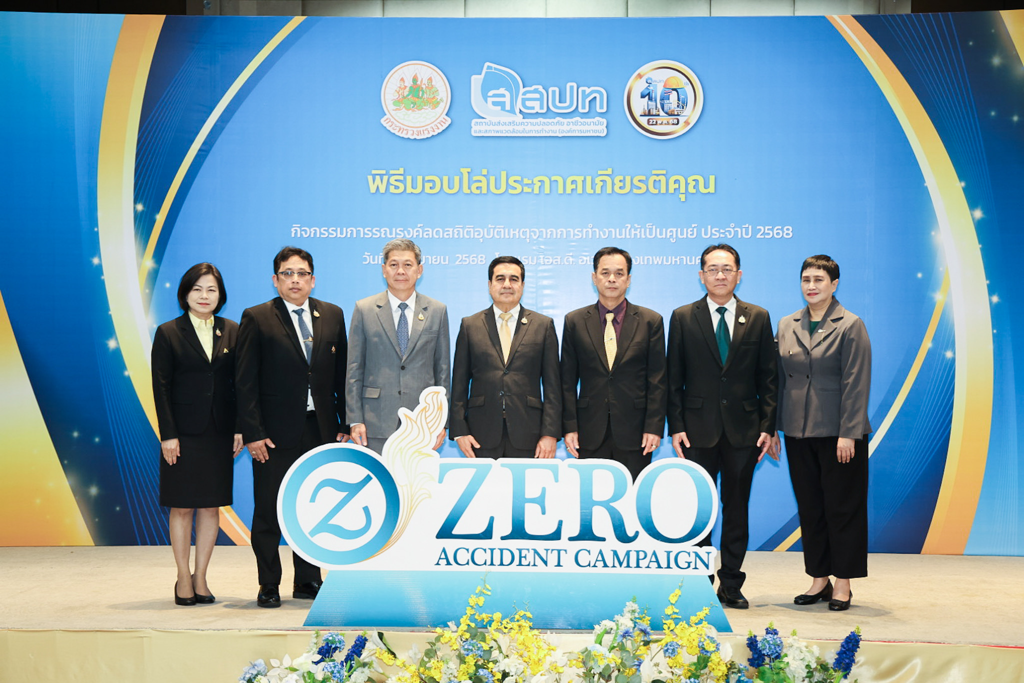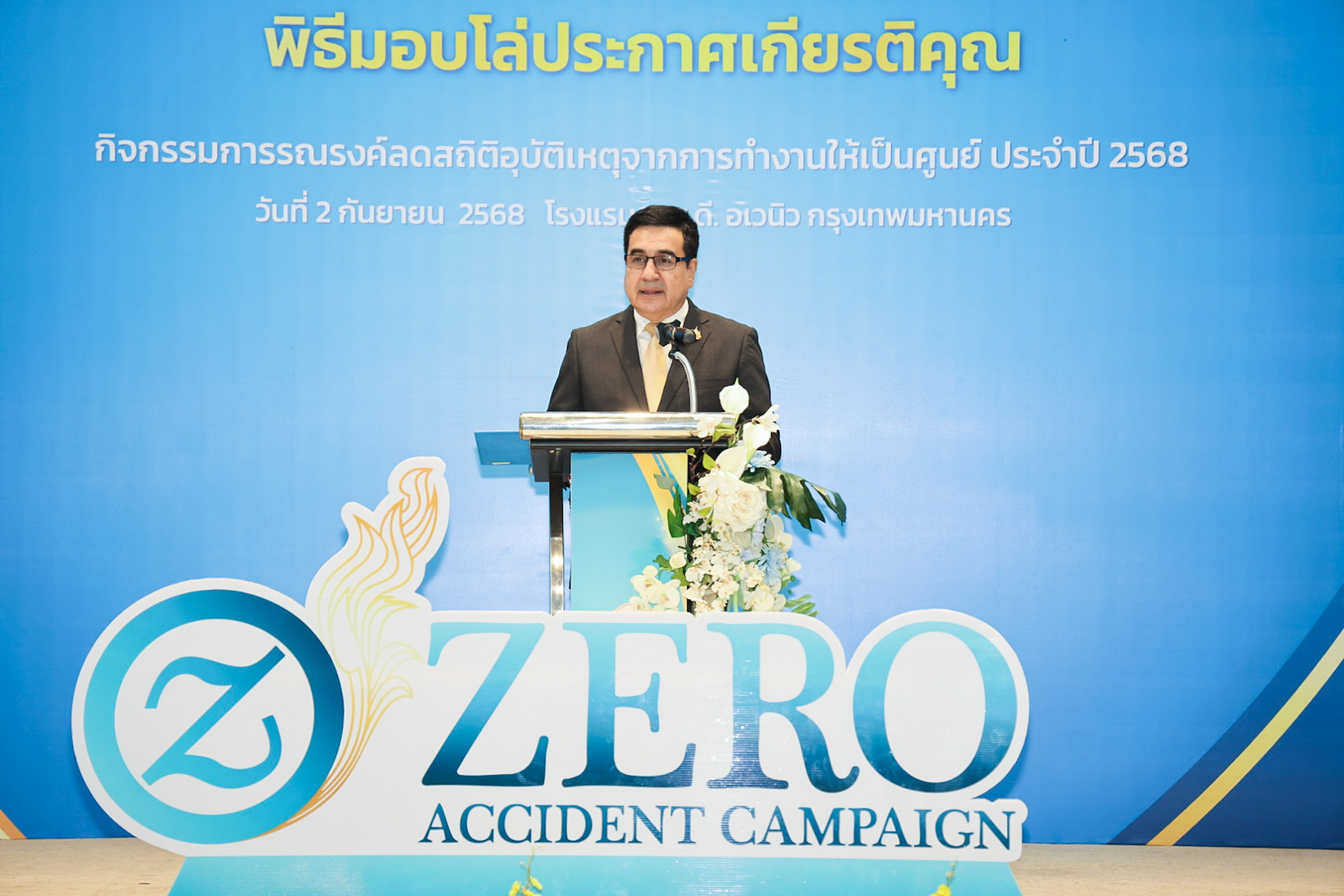 วันที่ 2 กันยายน 2568 เวลา 10.00 น. นายสมาสภ์ ปัทมะสุคนธ์ รองปลัดกระทรวงแรงงาน มอบหมายให้ นายศักดินาถ สนธิศักดิ์โยธิน ผู้ช่วยปลัดกระทรวงแรงงาน ร่วมเป็นเกียรติในพิธีมอบโล่ประกาศเกียรติคุณกิจกรรมรณรงค์ลดสถิติการประสบอันตรายจากการทำงานให้เป็นศูนย์ ประจำปี 2568 (Zero Accident Campaign 2025) โดยมี ดร.นันทชัย ปัญญาสุรฤทธิ์ ผู้อำนวยการ สถาบันส่งเสริมความปลอดภัย อาชีวอนามัย และสภาพแวดล้อมในการทำงาน (สสปท.) เป็นประธานในพิธี นายสิบหมื่นชัย โพธิสินธุ์ รองอธิบดีกรมการจัดหางาน นายเจษฎา จันทร์อุไร ผู้ตรวจราชการกรม กรมพัฒนาฝีมือแรงงาน และ นางวันทนา ณัฐพูลวัฒน์ ผู้ตรวจราชการกรม สำนักงานประกันสังคม เข้าร่วมด้วย ณ ห้องอมรินทร์ โรงแรม เอส ดี อเวนิว กรุงเทพมหานคร