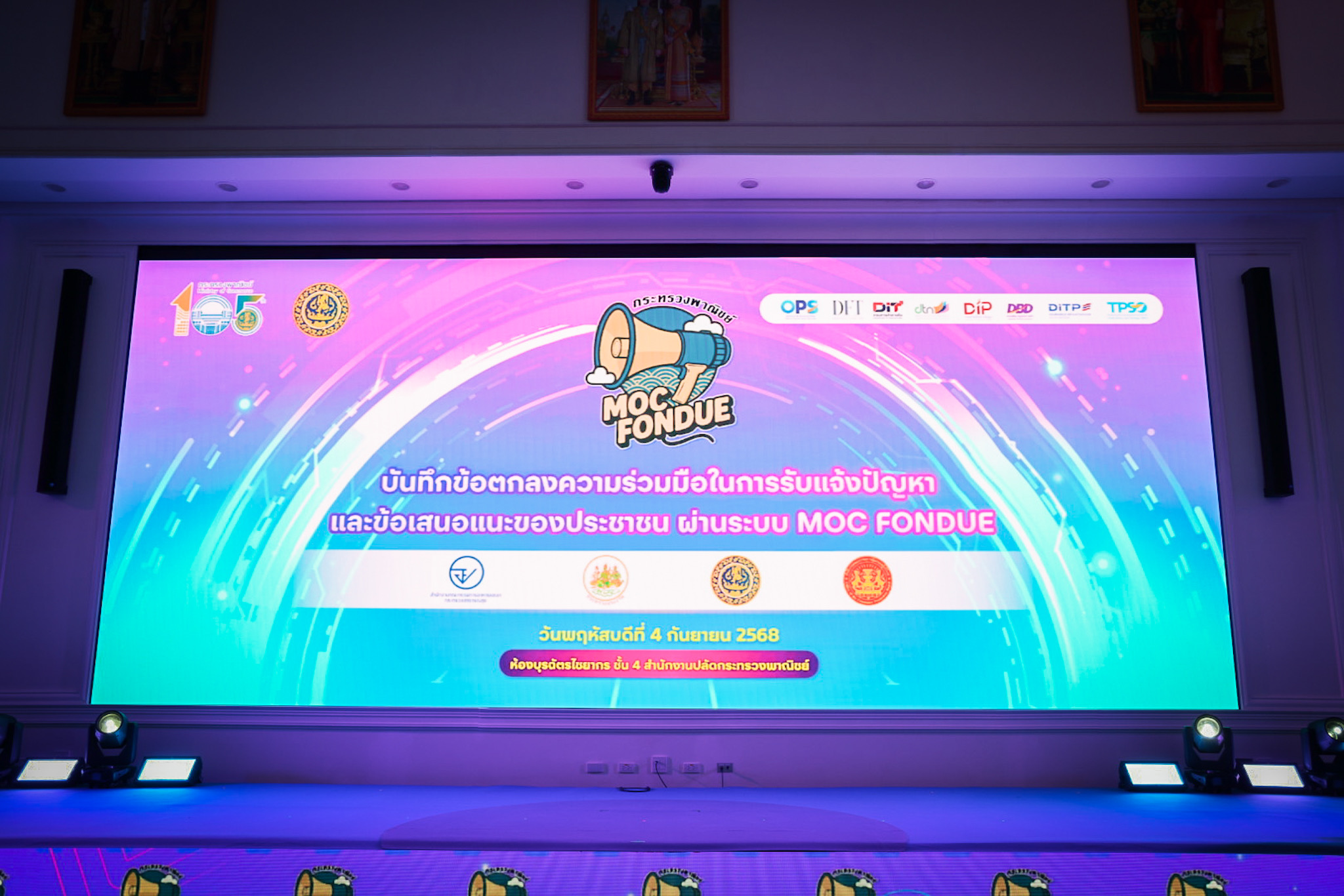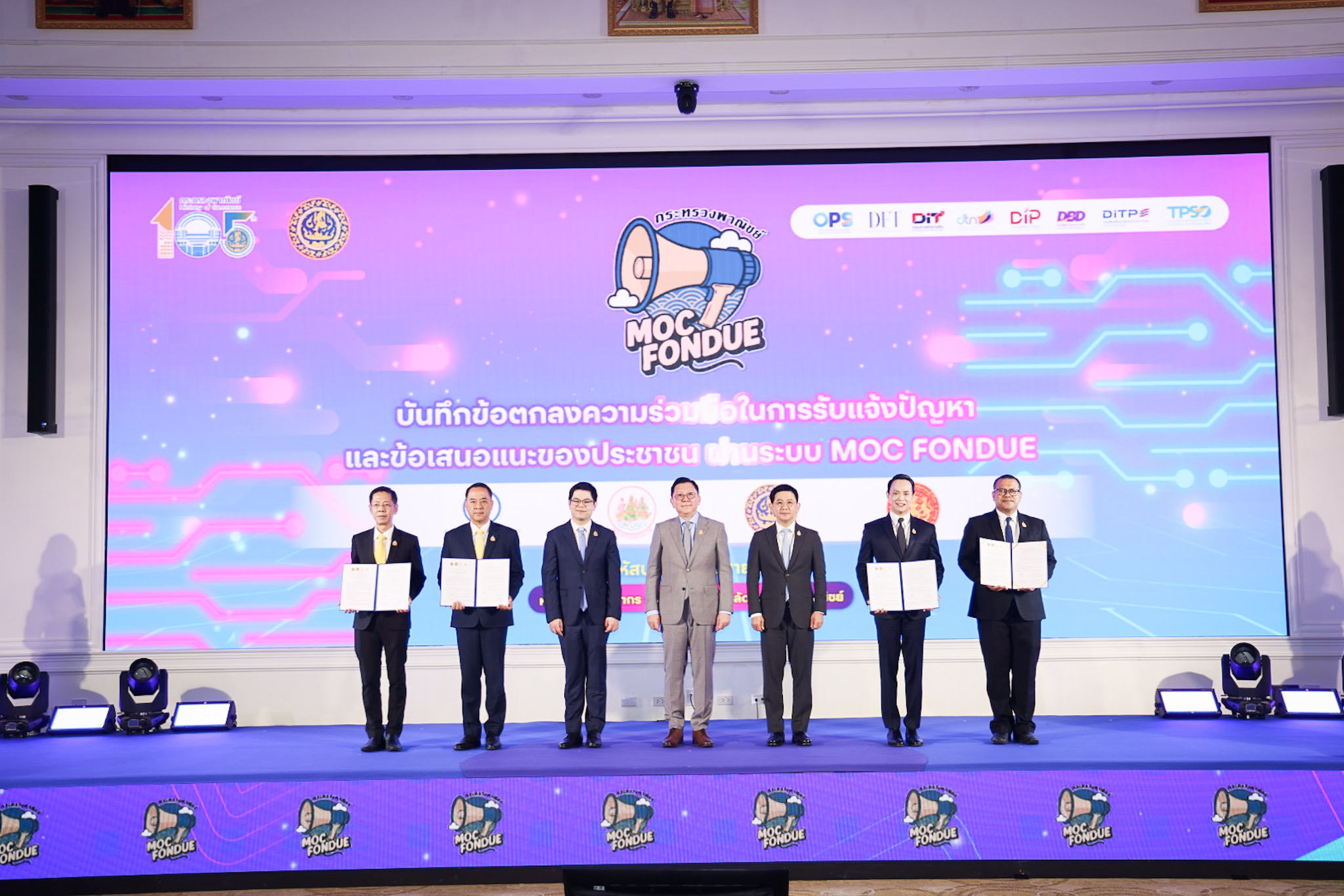 สำหรับบันทึกข้อตกลงความร่วมมือ (MOU) การใช้งานระบบรับแจ้งปัญหา ข้อเสนอแนะ กระทรวงพาณิชย์ (MOC Fondue) เพื่อประสานบูรณาการความร่วมมือในการแก้ไขปัญหาความเดือดร้อน รวมถึงข้อคิดเห็นเสนอแนะ