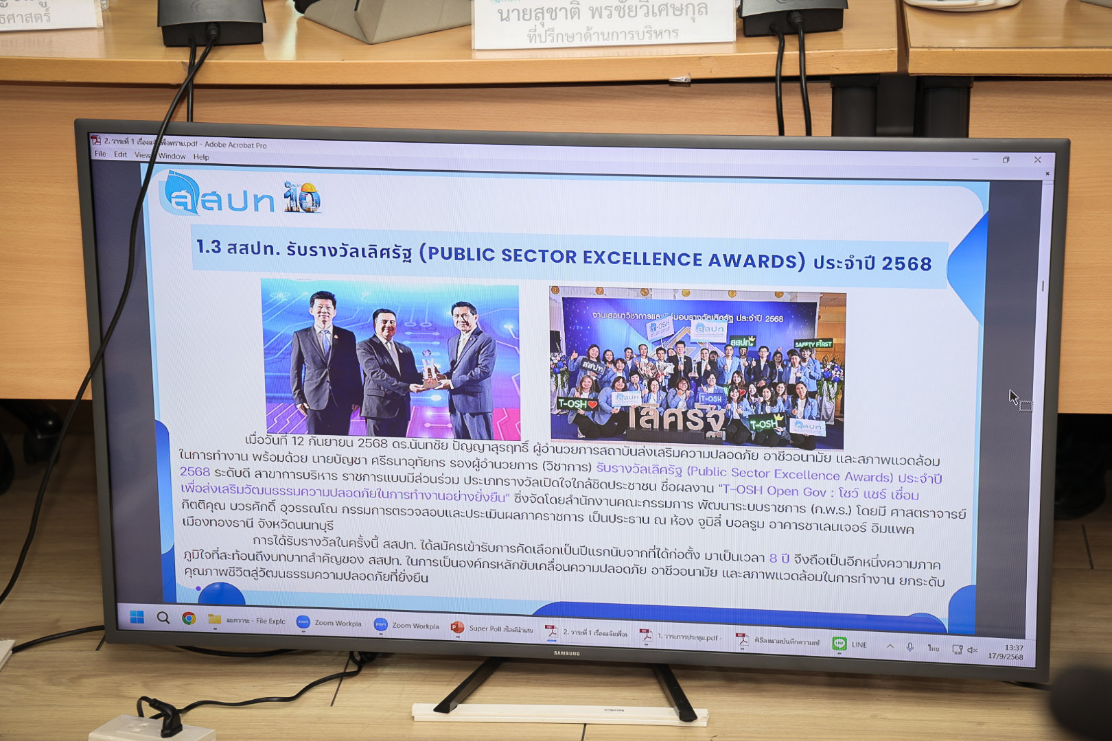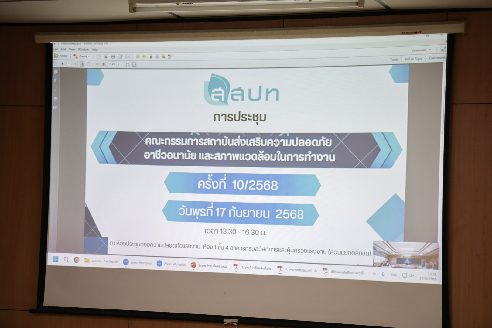 วันที่ 17 กันยายน 2568 เวลา 13.30 น. นายสมาสภ์ ปัทมะสุคนธ์ รองปลัดกระทรวงแรงงาน ร่วมการประชุมคณะกรรมการสถาบันส่งเสริมความปลอดภัย อาชีวอนามัย และสภาพแวดล้อมในการทำงาน ครั้งที่ 10/2568 โดยมี นายกำธร ชีพชัยอิสสระ ประธานกรรมการสถาบันส่งเสริมความปลอดภัย อาชีวอนามัย และสภาพแวดล้อมในการทำงาน (สสปท.) เป็นประธานการประชุม นางสาวบุปผา เรืองสุดเลขาธิการสำนักงานประกันสังคม เรือเอก สาโรจน์ คมคาย อธิบดีกรมสวัสดิการและคุ้มครองแรงงาน ดร.นันทชัย ปัญญาสุรฤทธิ์ ผู้อำนวยการ สถาบันส่งเสริมความปลอดภัย อาชีวอนามัย และสภาพแวดล้อมในการทำงาน (สสปท.) และหน่วยงานที่เกี่ยวข้อง เข้าร่วมด้วย ณ ห้องประชุมกองความปลอดภัยแรงงาน ห้อง 1 ชั้น 4 อาคารกรมสวัสดิการและคุ้มครองแรงงาน ส่วนแยกตลิ่งชัน