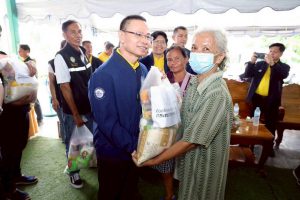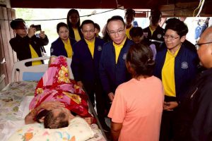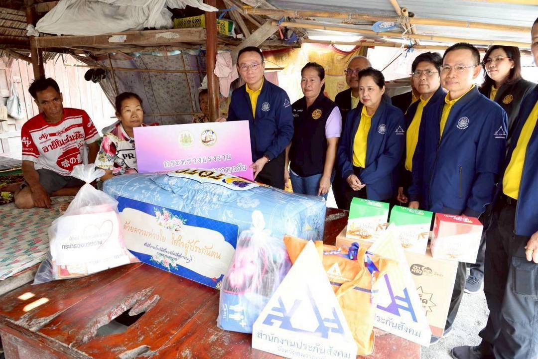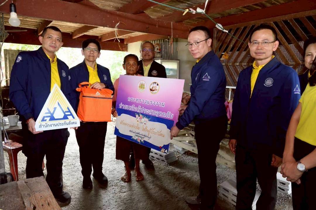 พร้อมตรวจเยี่ยมให้กำลังใจและมอบถุงยังชีพให้แก่ นายบุญสม สารแท่งทอง อายุ 67 ปี ผู้ประกันตนมาตรา 39 (ทุพพลภาพ) ณ หมู่ที่ 2 ตำบลเจดีย์ อำเภออู่ทอง จังหวัดสุพรรณบุรี และ นางพรรณี พิทักษ์วงศ์ อายุ 50 ปี ผู้พิการ ณ หมู่ที่ 1 ตำบลเจดีย์ อำเภออู่ทอง จังหวัดสุพรรณบุรี