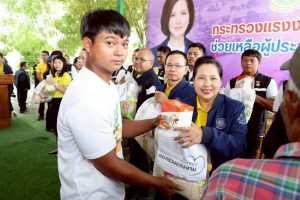 วันที่ 12 ตุลาคม 2568 เวลา 13.00 น. นางสาวตรีนุช เทียนทอง รัฐมนตรีว่าการกระทรวงแรงงาน มอบหมายให้ นายสมชาย มรกตศรีวรรณ หัวหน้าผู้ตรวจราชการกระทรวงแรงงาน พร้อมด้วย นายสนธยา กาลาศรี ผู้ตรวจราชการกรม กรมการจัดหางาน นายสมบัติ โพธิวัฒน์ ผู้ตรวจราชการกรม กรมพัฒนาฝีมือแรงงาน นางสาวสุวดี ทวีสุข ผู้ตรวจราชการกรม กรมสวัสดิการและคุ้มครองแรงงาน นางสาวมาลากาลัญ ห่อประทุม ผู้ตรวจราชการกรม สำนักงานประกันสังคม และหัวหน้าส่วนราชการสังกัดกระทรวงแรงงาน ลงพื้นที่เทศบาลตำบลเจดีย์ อำเภออู่ทอง จังหวัดสุพรรณบุรี มอบถุงยังชีพ ให้แก่ผู้ประสบอุทกภัย จำนวน 100 ชุด โดยมีหน่วยงานที่เกี่ยวข้องร่วมด้วย