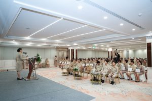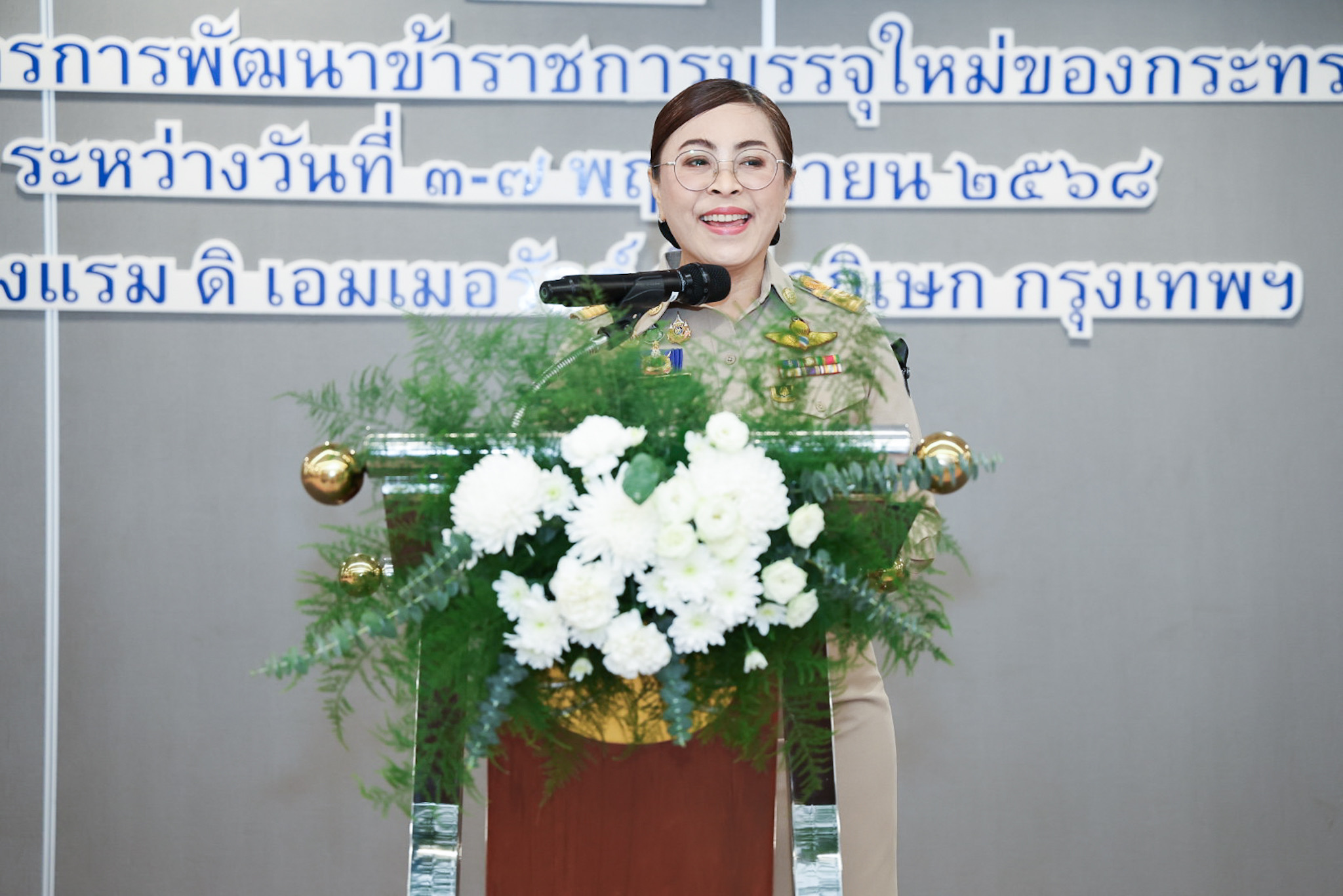 นางสาวบุปผา เรืองสุด เลขาธิการสำนักงานประกันสังคม รักษาราชการแทน รองปลัดกระทรวงแรงงาน กล่าวว่า การก้าวเข้าสู่เส้นทางข้าราชการนั้น ไม่ได้เป็นเรื่องของหน้าที่ต่อตนเองเพียงอย่างเดียว แต่คือภารกิจเพื่อสังคม ที่ต้องพึงกระทำด้วยจิตใจซื่อสัตย์ จงรักภักดีต่อประชาชน และมุ่งมั่นนำ “ความเป็นธรรม” และ “คุณภาพชีวิตที่ดี” มาสู่พี่น้องแรงงาน ข้าราชการบรรจุใหม่ทุกคนที่ผ่านการฝึกอบรมหลักสูตรในนี้ จะได้นำความรู้ทั้งด้านวิชาการ ทักษะที่จำเป็น รวมถึงแนวคิดที่ได้รับจากการอบรมในครั้งนี้ไปใช้ในการปฏิบัติงาน เพื่อที่จะได้เติบโตเป็นข้าราชการที่มีคุณภาพ เป็นความภาคภูมิใจของกระทรวงแรงงาน และเป็นกำลังสำคัญในการพัฒนาระบบแรงงานของประเทศไทยต่อไปในอนาคต