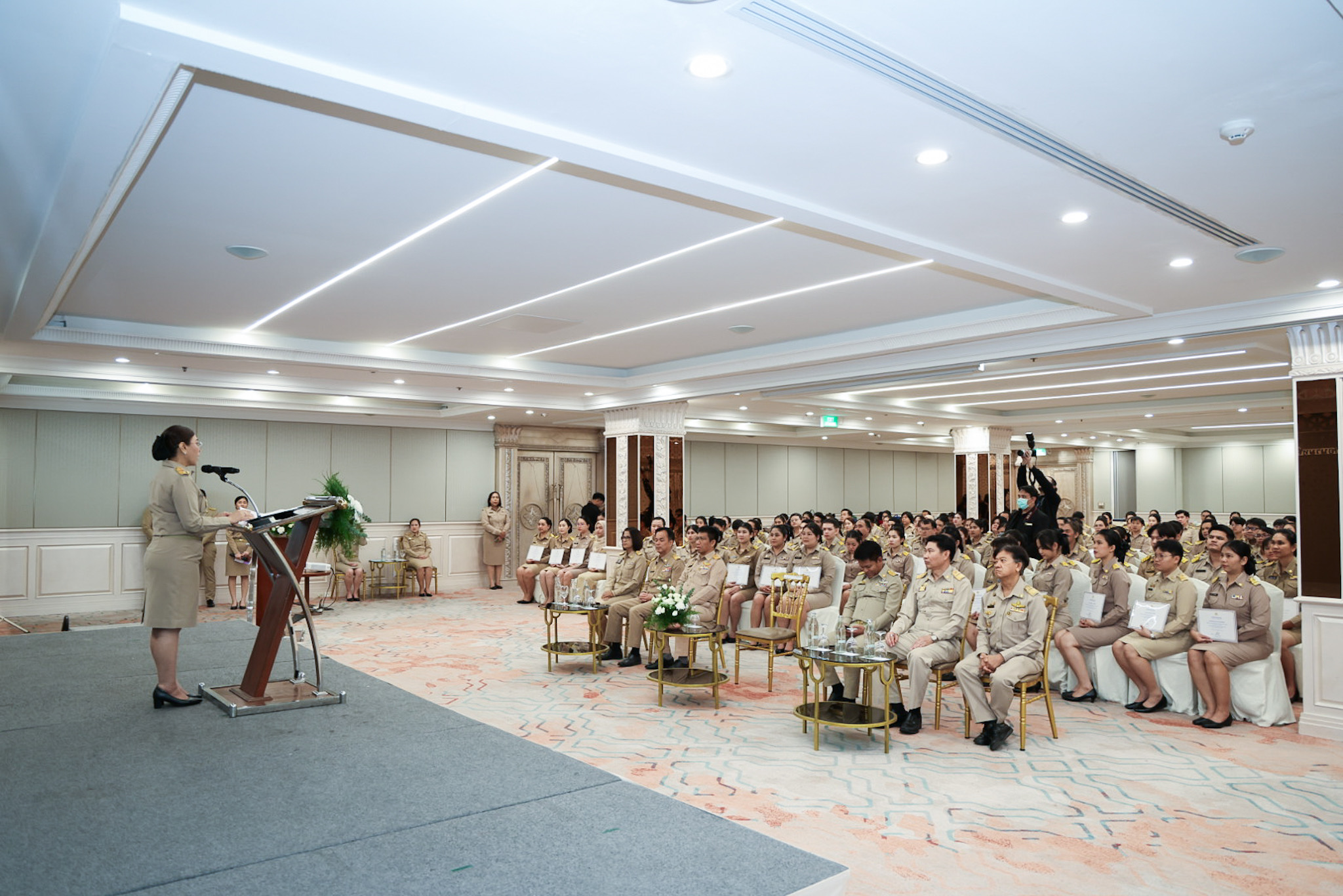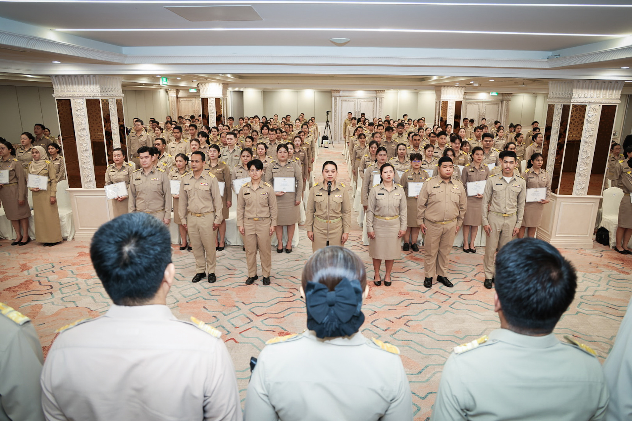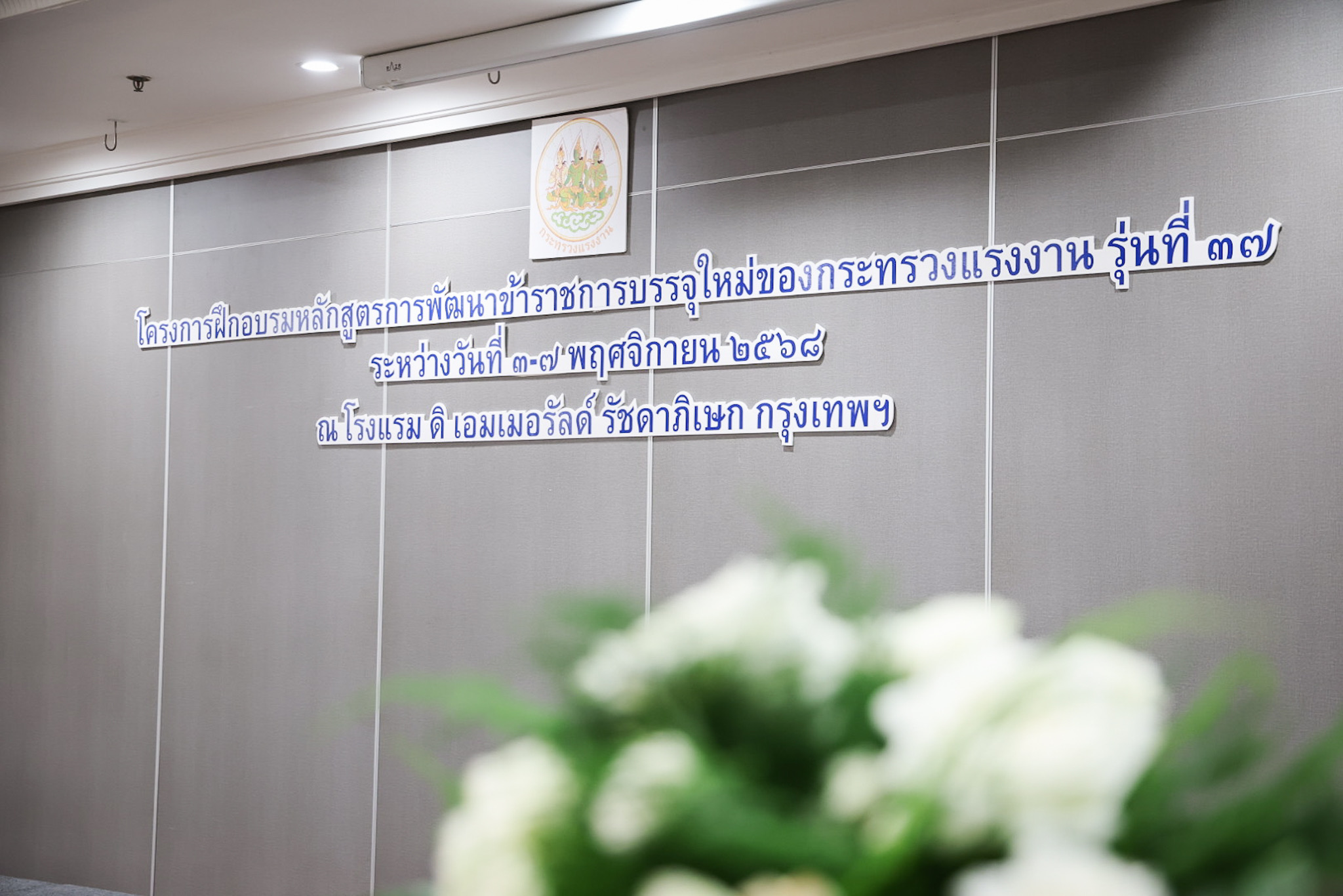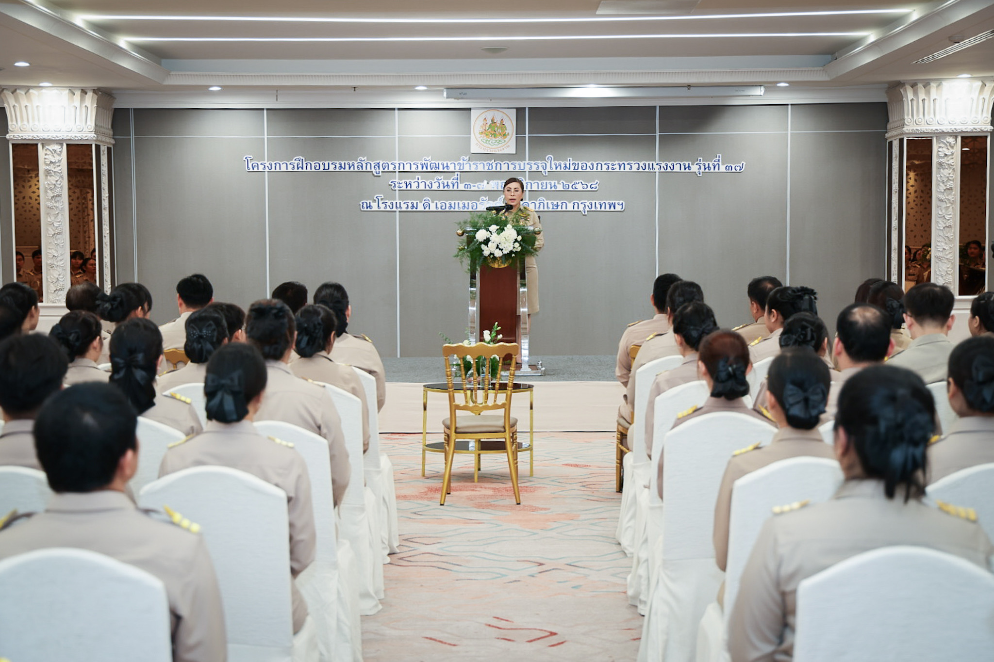 วันที่ 7 พฤศจิกายน 2568 เวลา 14.00 น. พันตำรวจโท วรรณพงษ์ คชรักษ์ ปลัดกระทรวงแรงงาน มอบหมายให้ นางสาวบุปผา เรืองสุด เลขาธิการสำนักงานประกันสังคม รักษาราชการแทน รองปลัดกระทรวงแรงงาน เป็นประธานพิธีมอบประกาศนียบัตรให้กับผู้ผ่านการฝึกอบรมและปิดโครงการฝึกอบรมหลักสูตรการพัฒนาข้าราชการบรรจุใหม่ของกระทรวงแรงงาน รุ่นที่ 37 โดยมี ว่าที่ร้อยตรี สมศักดิ์ พรหมดำ ผู้ตรวจราชการกระทรวงแรงงาน นายสิบหมื่นชัย โพธิสินธุ์ ผู้ตรวจราชการกระทรวงแรงงาน พร้อมด้วยผู้บริหารระดับสูงหน่วยงานในสังกัดกระทรวงแรงงาน เข้าร่วมด้วย ณ ห้องประชุมเพชรชมพู ชั้น 3 โรงแรมดิเอมเมอรัลด์